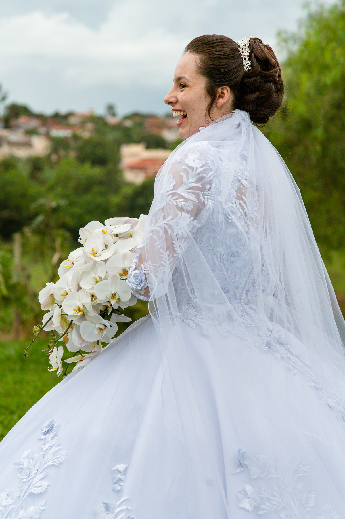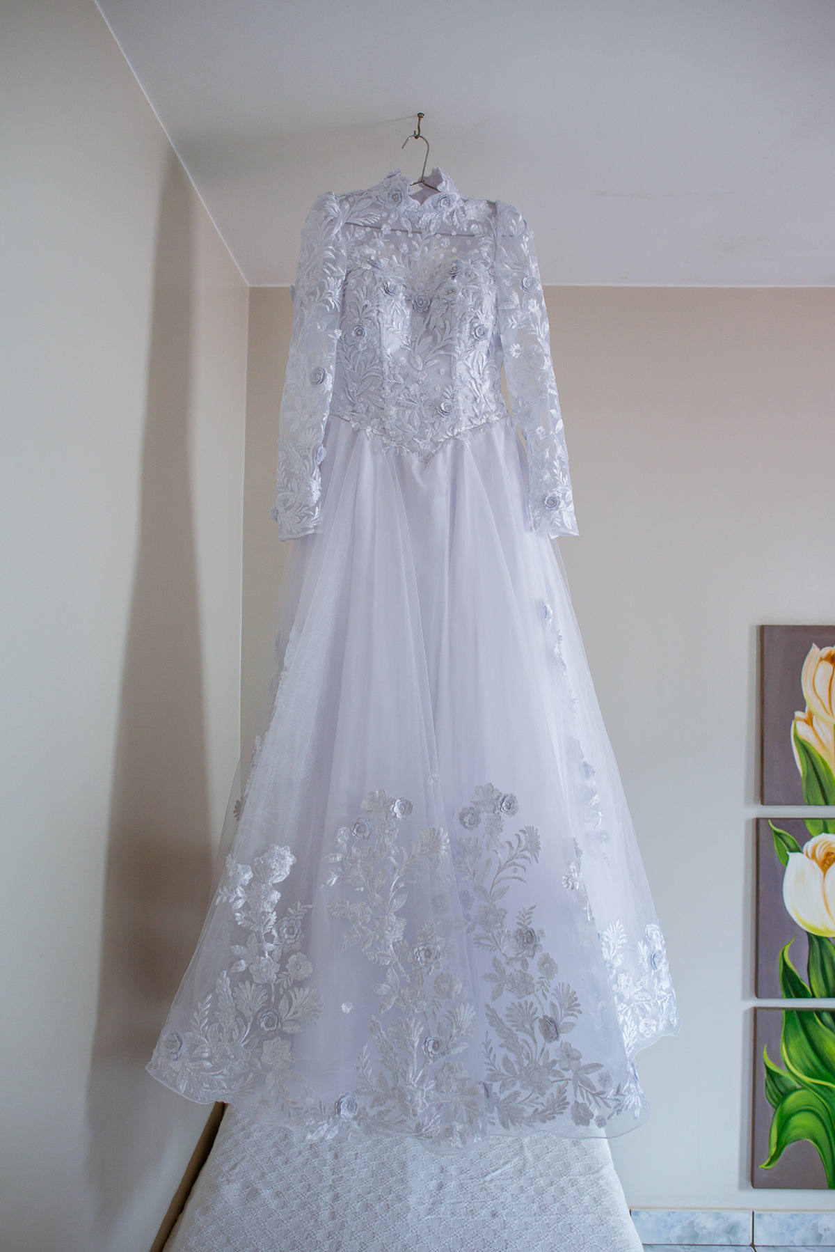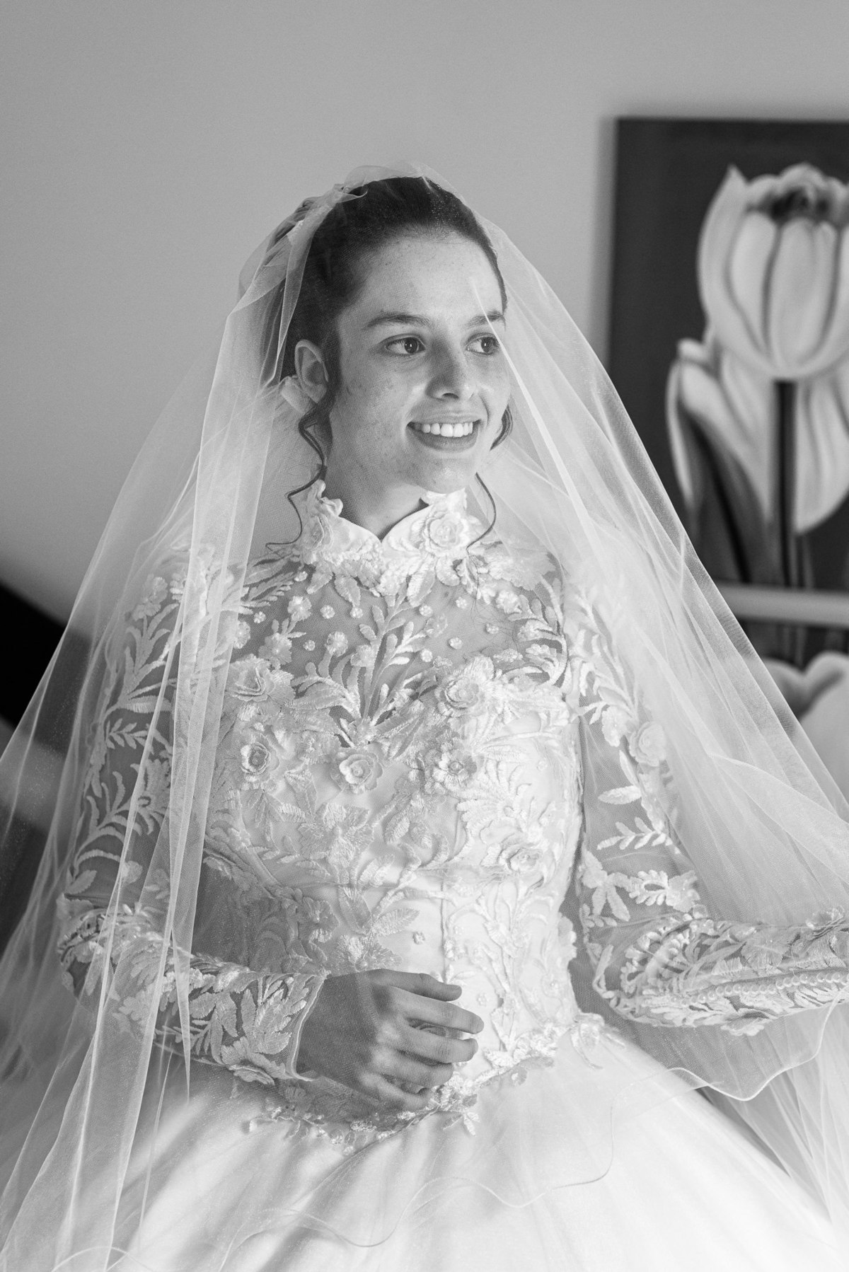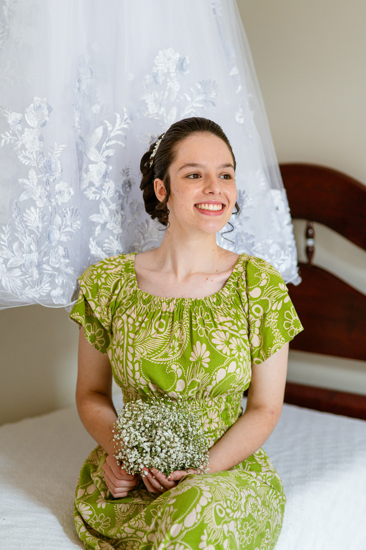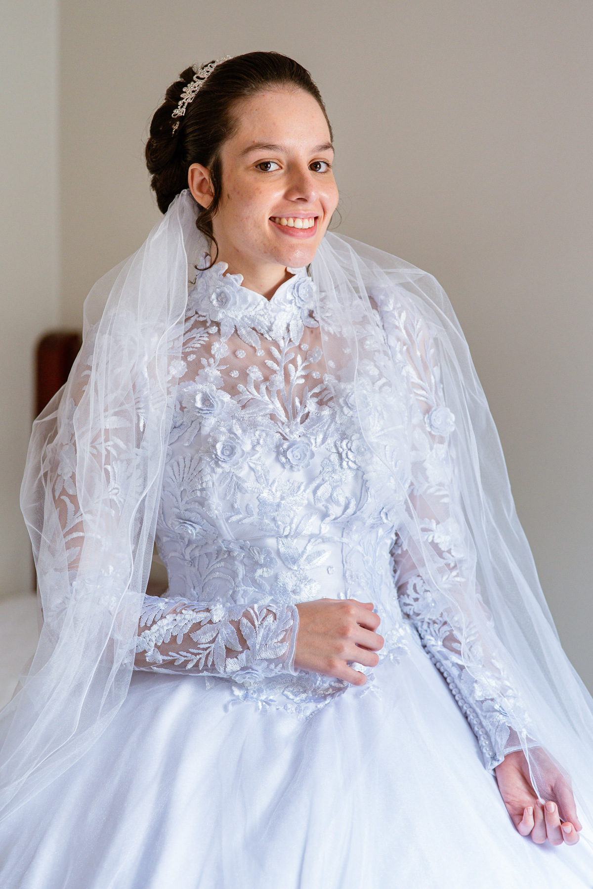Me lembro de que nesse mesmo dia, Eduarda entrou em contato comigo me perguntando se haveria problemas em ela realizar seu dia de noiva em casa. Prontamente, disse à ela que não teria problema algum e que eu sempre indico para que as noivas façam seu dia de acordo com seu sonho, onde esse lugar for. Assim, alteramos o roteiro e partimos para a casa dela. O dia estava radiante e ao chegar lá encontramos uma noivinha muito feliz e animada com seu dia. Ela havia preparado todos os detalhes que gostaria que fotografássemos e também com as pessoas especiais que ela gostaria que participassem. Então, mais que depressa iniciamos o making of por lá. Ao adentrar pela casa, nos deparamos com um órgão digital lindíssimo bem na sala. Perguntei para ela o que seria aquele instrumento e quem sabia tocar. Nessa hora os olhinhos dela mais que brilharam. Ela nos contou que ensina os membros da Igreja que ela faz parte a tocarem e que aprendeu tudo desde muito pequena, ensinamentos vindos de sua mãe.