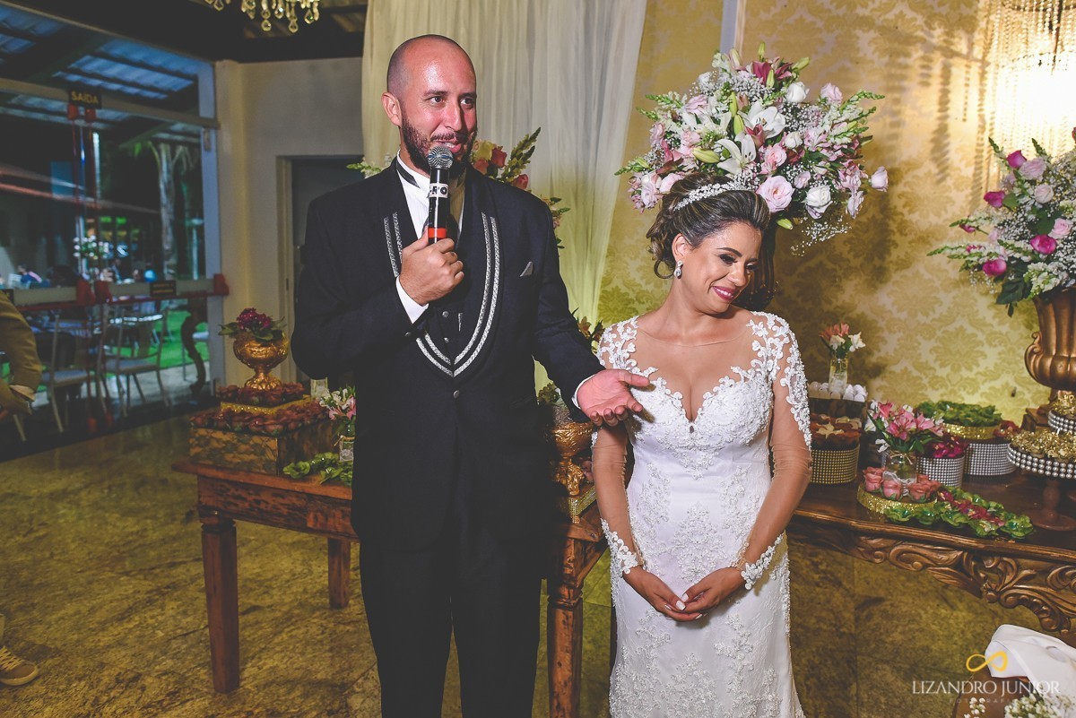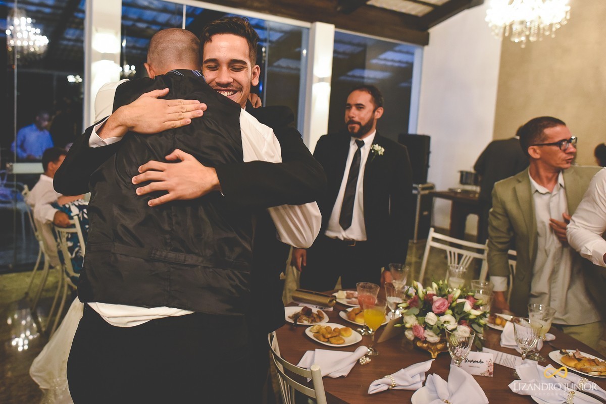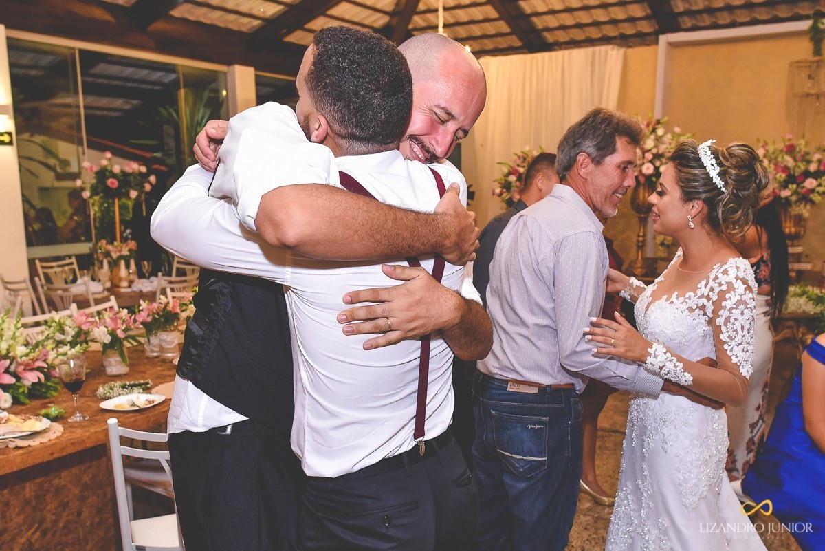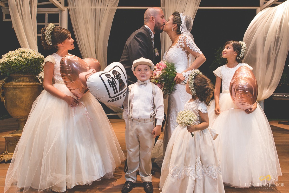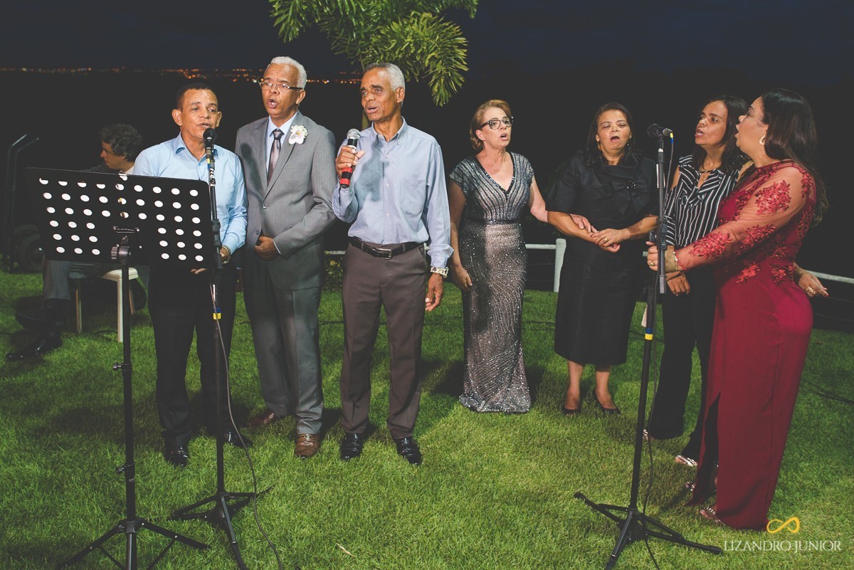 Depois de uma cerimônia linda, que contou com uma participação especial. Os pais da noiva, juntamente com os irmãos e tios se juntaram e cantaram uma música para os noivos. Mas não era simplesmente uma música. Era a mesma em que os pais cantaram quando casaram há muitos anos atrás. Foi incrível!