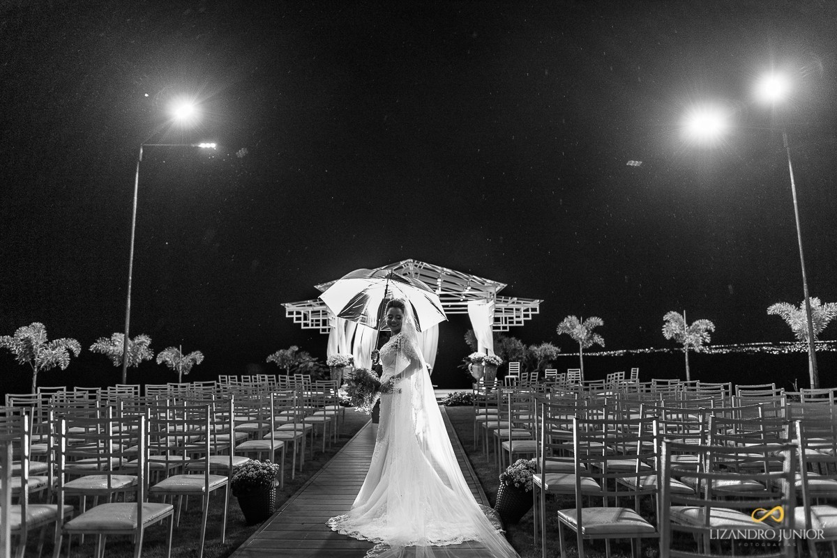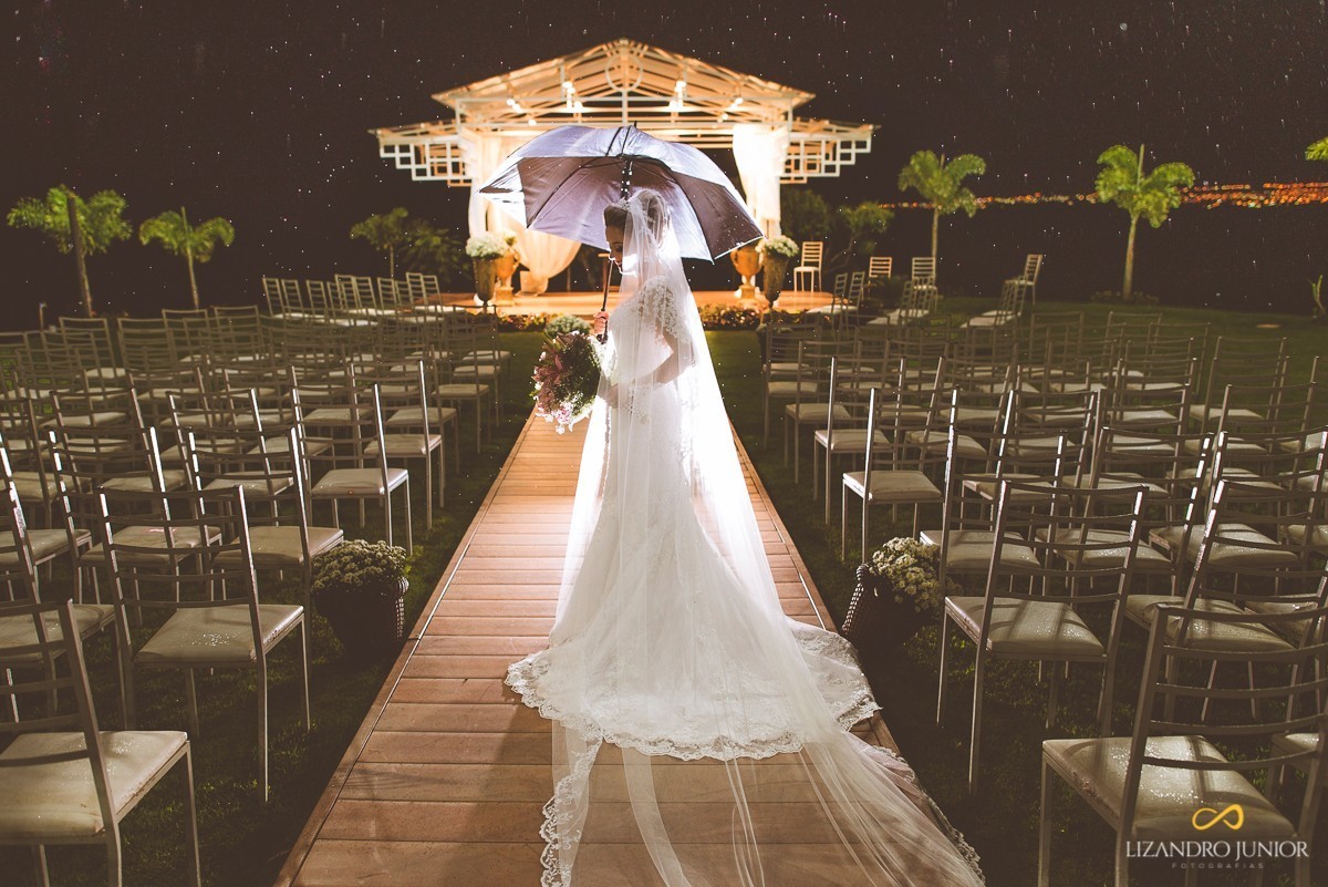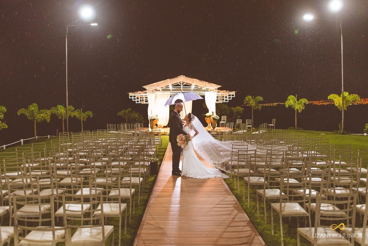 Eu, como um cristão já deveria crer que o poder de Deus é muito suficiente para impedir que a chuva "atrapalhasse" o evento. E depois de alguns casamentos em que a chuva poderia ser um problema e não foi, eu já estava acostumado a pedir ao Senhor que segurasse as nuvens com as mãos para nós. E assim foi. Terminado a cerimônia, quase que imediatamente alguns pingos caíram. No horizonte, era possível ver os raios e o sinal de grande chuva. Ficou só nisso! Alguns pingos e só. Foi Deus!