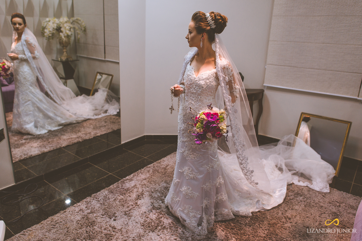 O coração da noiva palpitava. Dava para sentir o quanto ela estava emocionada. Seu noivo Afranio, se preparava também no Salvatore, há poucos metros da sua futura esposa. Ele, bem mais relaxado e calmo, sorria para todos os cantos. Parecia que a felicidade que ele sentia naquele momento explodiria no seu coração. É tão bom poder participar de momentos assim! Sentimos na pele os medos e ansiedades, e claro, a felicidade dos noivos. Somos profissionais, mas o nosso coração não congela. Ficamos firmes em nossos postos, mas muitas vezes as lágrimas vem junto com as dos noivos.