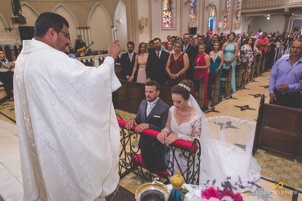 Após a tradicional troca de abraços, o pai da noiva gentilmente cedeu a mão de sua filha, entregando para seu noivo Afrânio. Após um beijo carinho e respeitoso na mão, o momento culminou em um beijo lindíssimo na testa da noiva. E assim, eles caminharam rumo ao altar para confirmar seus votos perante Deus. Após uma cerimônia impecável, os noivos fizeram sua saída e cumprimentaram os seus convidados. Felicidade era pouco para descrever os dois. E assim, encerro aqui minha pequena descrição do que foi esse dia lindo e inesquecível. Fiquem agora com as fotos e espero que gostem de todas.