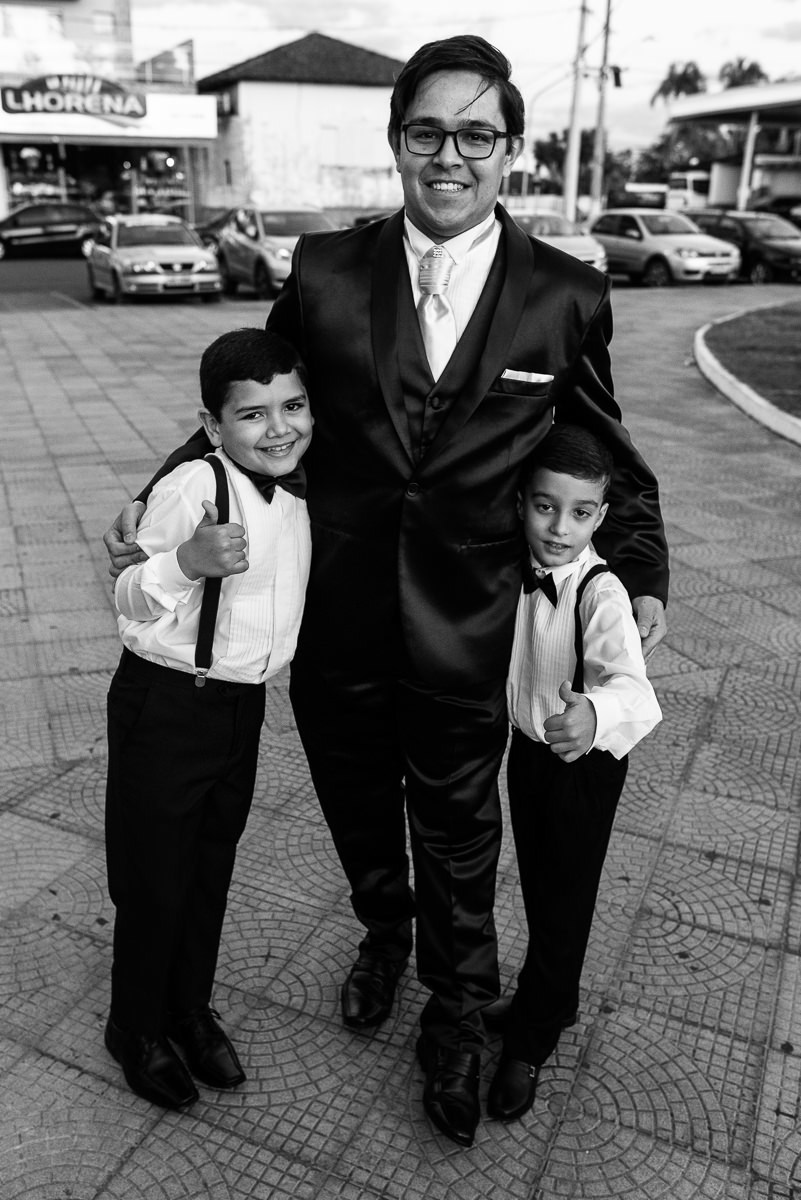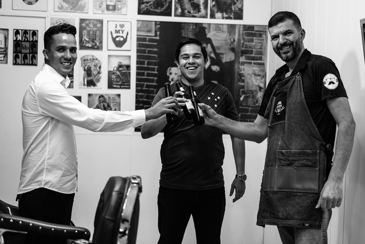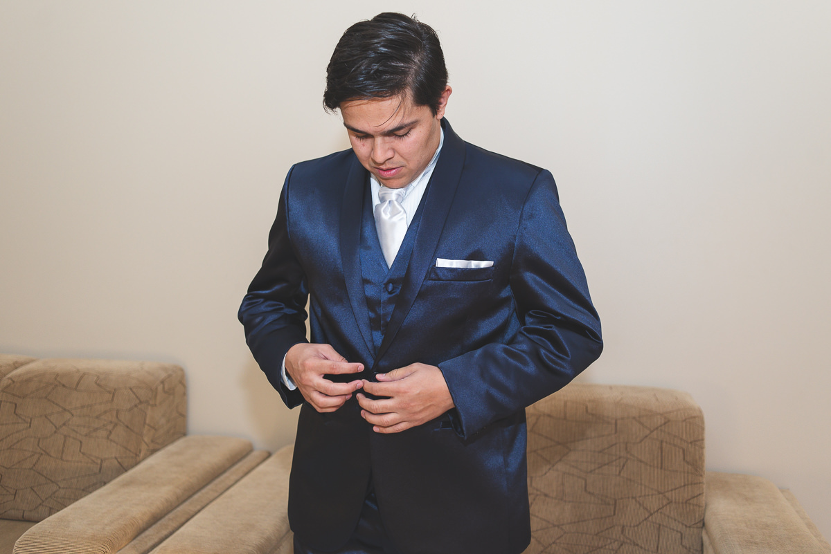 O noivo por sua vez, se arrumou em uma barbearia na cidade mesmo. Finalizou se vestindo em casa, com ajuda da seus pais e irmã. O coração batia cada vez mais depressa, e a ansiedade por ver sua noiva pronta era visivel em seu rosto. Uma hora antes do casamento, ele mesmo enviou uma mensagem pra Laís dizendo que já queria estar no altar rsrs.