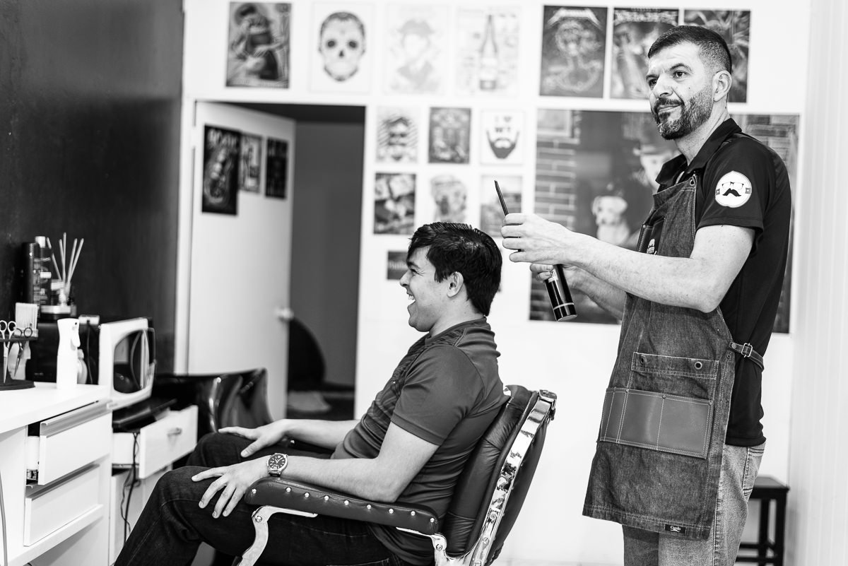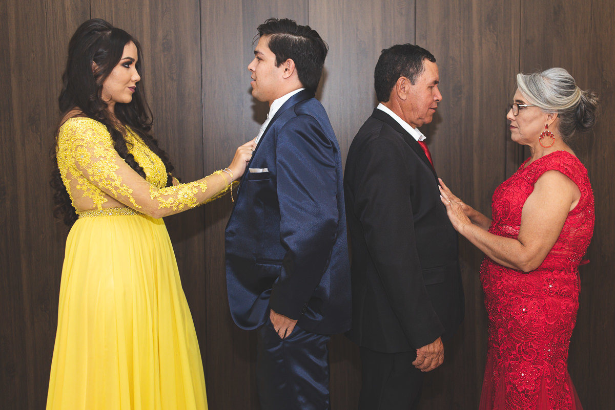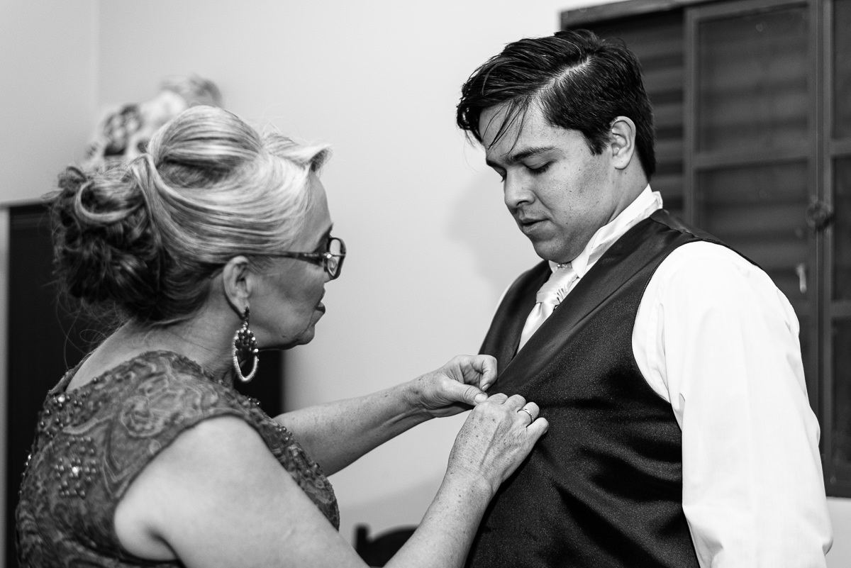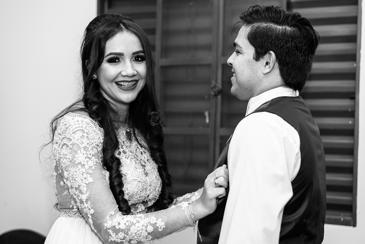 O noivo por sua vez, se arrumou em uma barbearia na cidade mesmo. Finalizou se vestindo em casa, com ajuda da seus pais e irmã. O coração batia cada vez mais depressa, e a ansiedade por ver sua noiva pronta era visivel em seu rosto. Uma hora antes do casamento, ele mesmo enviou uma mensagem pra Laís dizendo que já queria estar no altar rsrs.