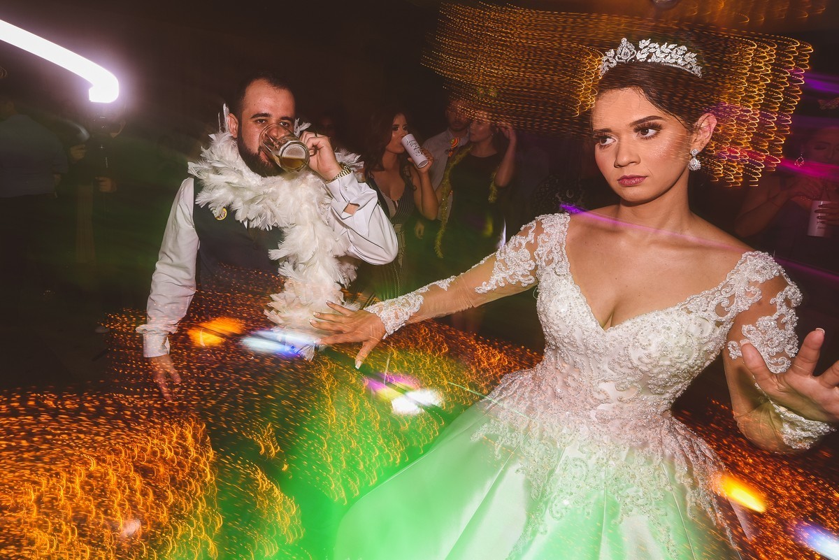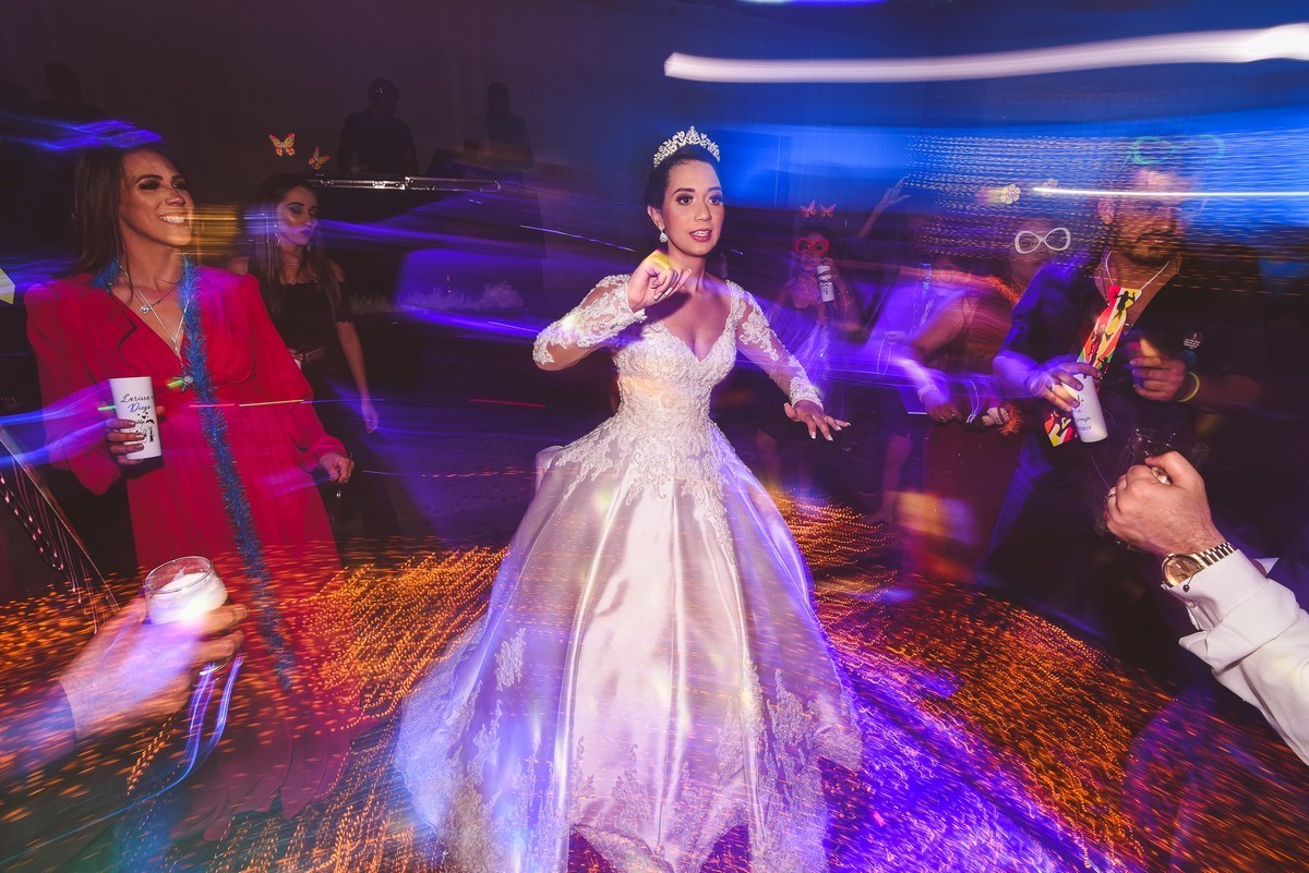 Depois de uma make poderosa, era hora de escolher a coroa e partir para o penteado. O vestido parecia daquelas princesas de filme. Especialmente separado pela equipe da Hermanas Noivas, Larissa brilhava os olhos a cada vez que olhava para seu vestido ali pendurado esperando o momento de embelezar a noiva. Depois de tudo pronto e ela vestida, realmente tive a certeza de que era um mega sonho se realizando ali. A emoção tomou conta da sala.