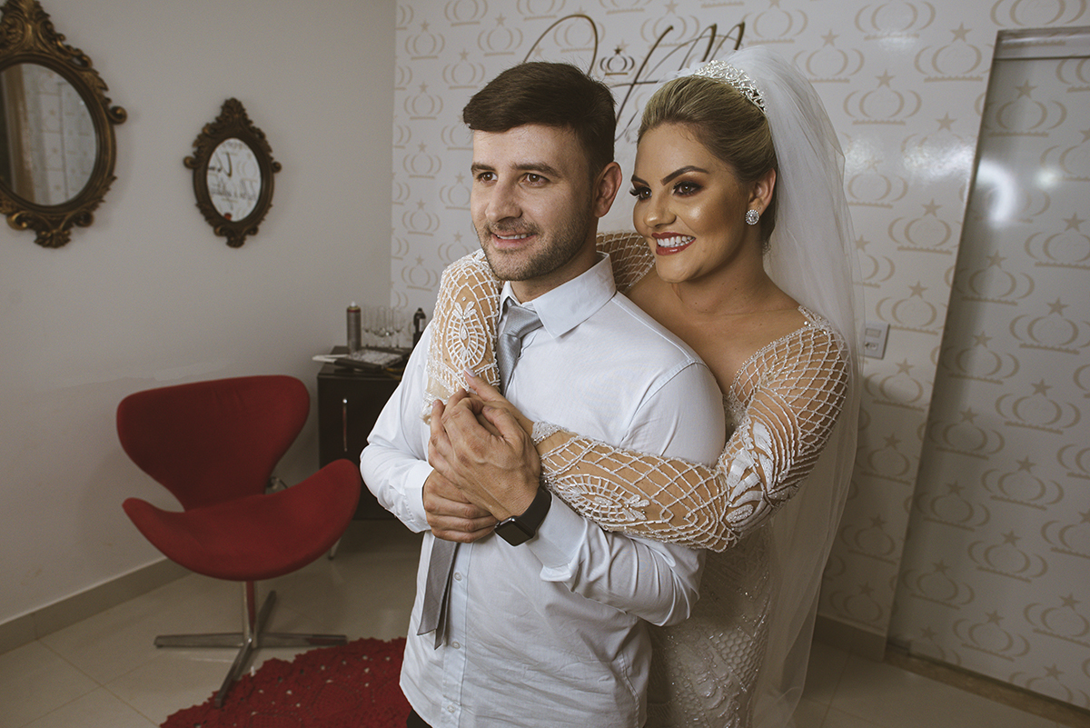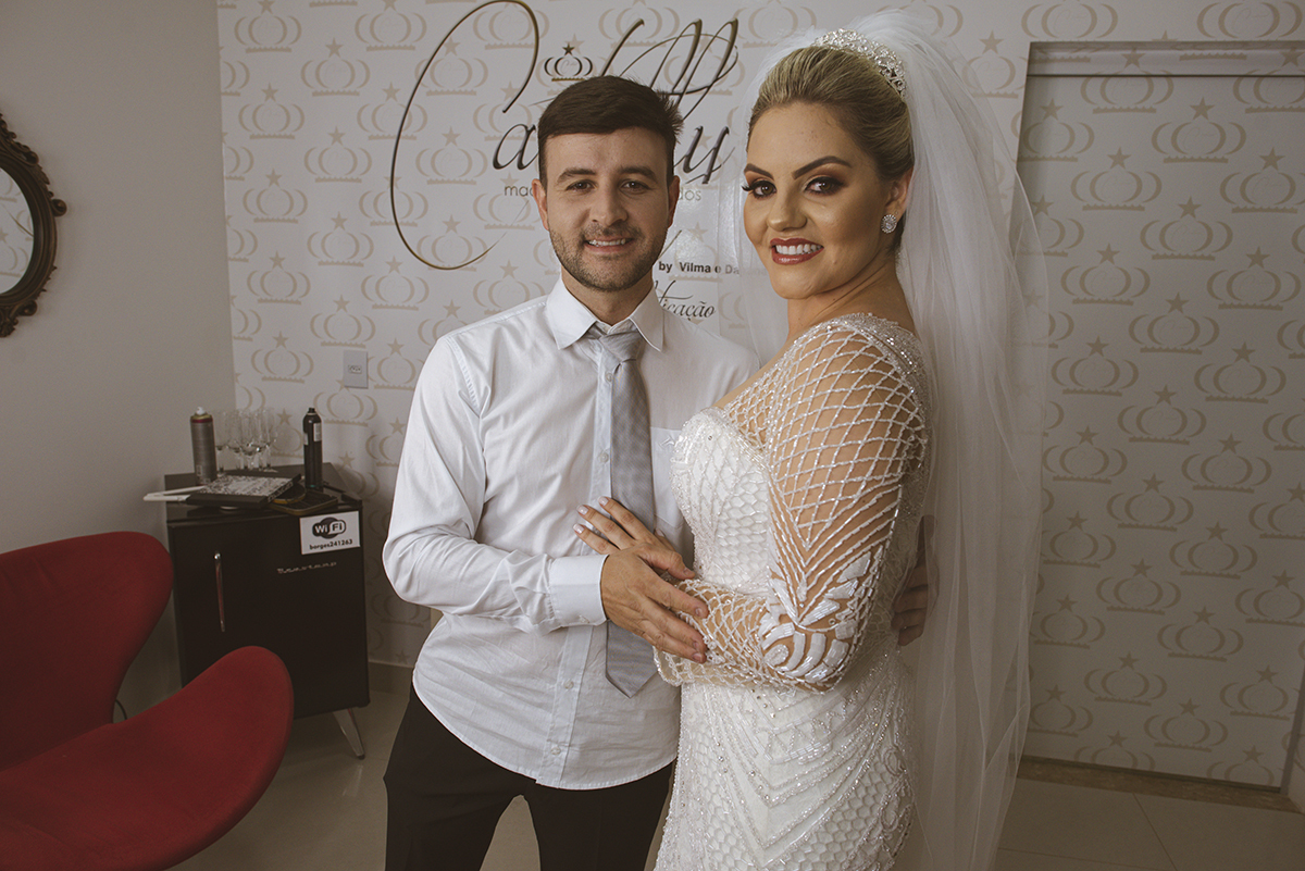 Jaqueline estava prontinha. Com um vestido maravilhoso e assinado pelo estilista Alexandre Dutra, a noiva estava estonteante. Enquanto fazíamos as fotos, cada olhar era um belo retrato. Assim, finalizamos o making of e partimos para a cerimônia. Os convidados já aguardavam os noivos. Os padrinhos foram organizados e a cerimônia estava prestes a começar. A noiva estava belíssima e ansiosa no carro. Em poucos momentos ela estaria entrando para oficializar sua união com Frederico.