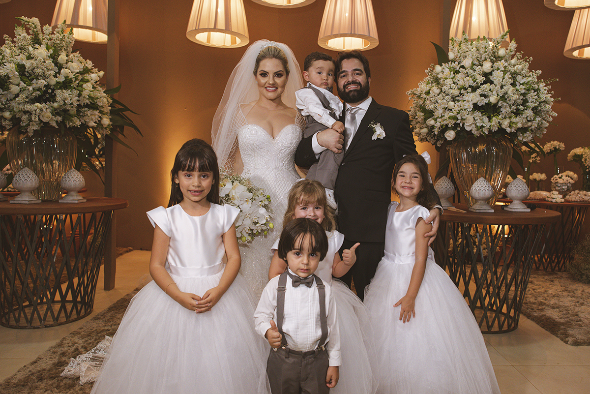 Os pequeninos pajens já começaram fazendo a alegria dos convidados. Entraram lindamente sorrindo e alegrando ainda mais a cerimônia. O noivo juntamente com sua mãe, caminhou sorrindo rumo ao altar. Despedindo-se de seus pais, aguardou a sua amada noiva adentrar. Jaqueline já esperava ansiosamente do lado de fora do salão, pronta para entrar arrasando. Enfim, era chegada a hora! As cortinas se abriram e eis que surge a noiva com seu pai, belíssima. Os suspiros era audíveis. Os convidados ficaram encantados com tamanha beleza. Os olhos dos noivos se cruzavam e o sorriso era inevitável. Aos poucos, os dois iam se aproximando e o momento de se encontrar havia chegado.
