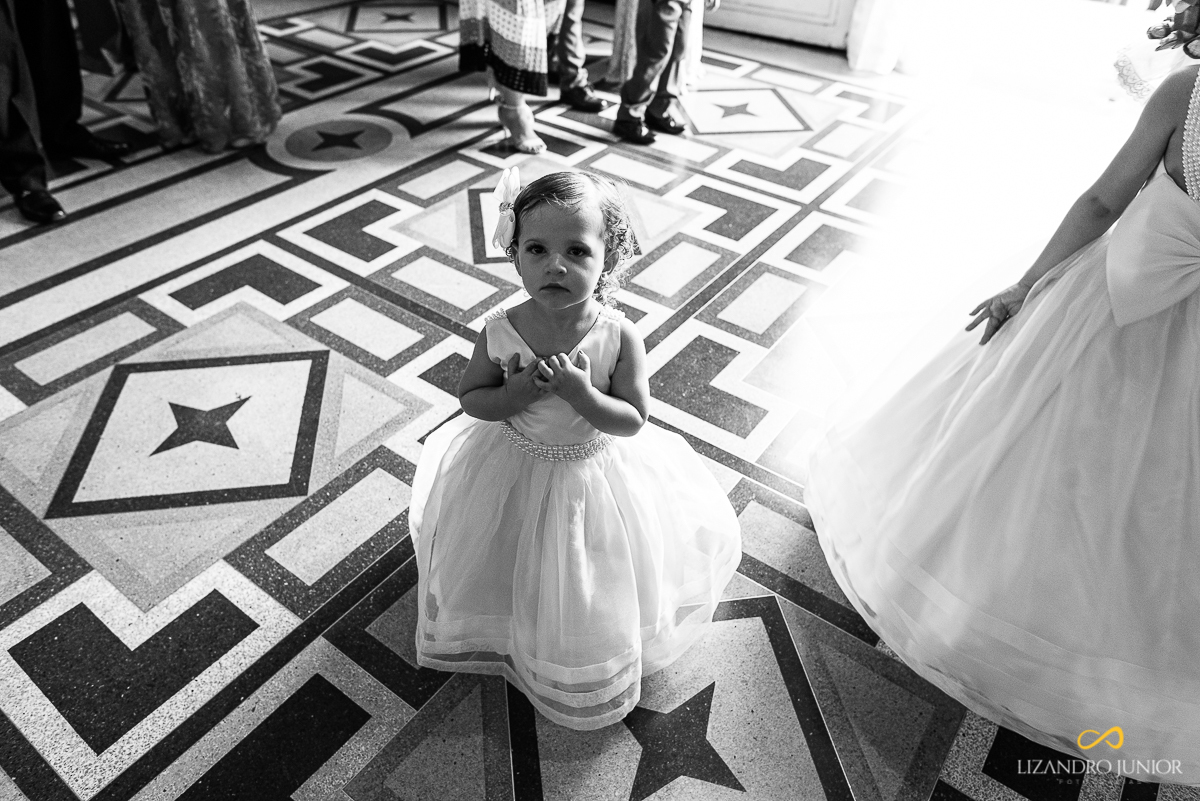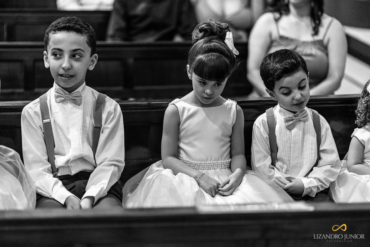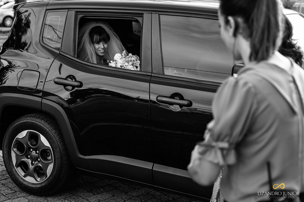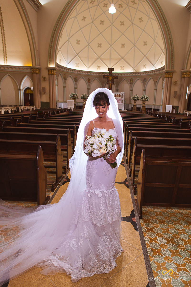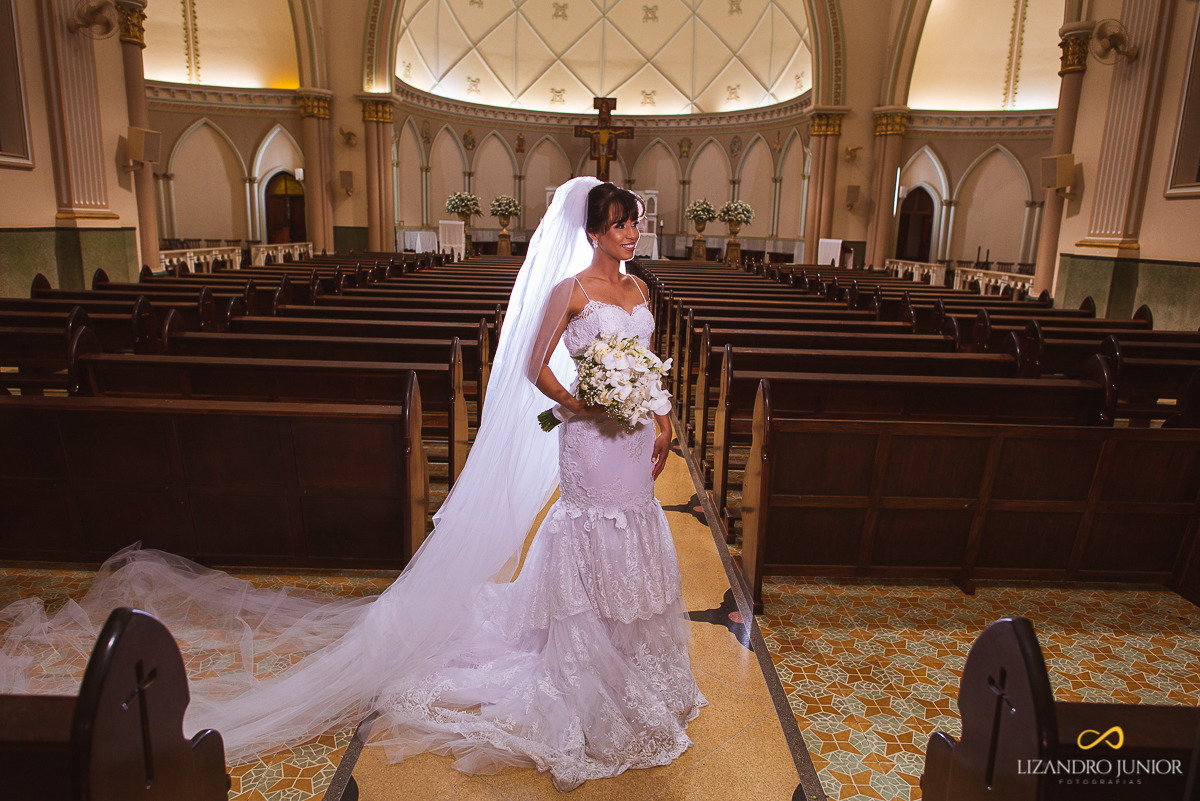 Ao som de Rejane Siqueira e Banda, os padrinhos entravam sorrindo de canto a canto do rosto. Denise havia escolhido a cor Vermelha para suas madrinhas que entraram arrasando. A cor forte destacava a cada entrada. Depois de algumas fotos no carro, Denise foi conduzida pela equipe de Cerimonial Rose Vieira a porta da Igreja. Nesse momento, com elas fechadas, todos ficam aguardando o tão esperado momento. Eis que a Marcha Nupcial é tocada e então o toque da Ave Maria se inicia. É chegado o momento de os noivos se encontrarem para o sim.