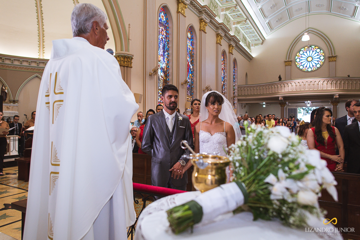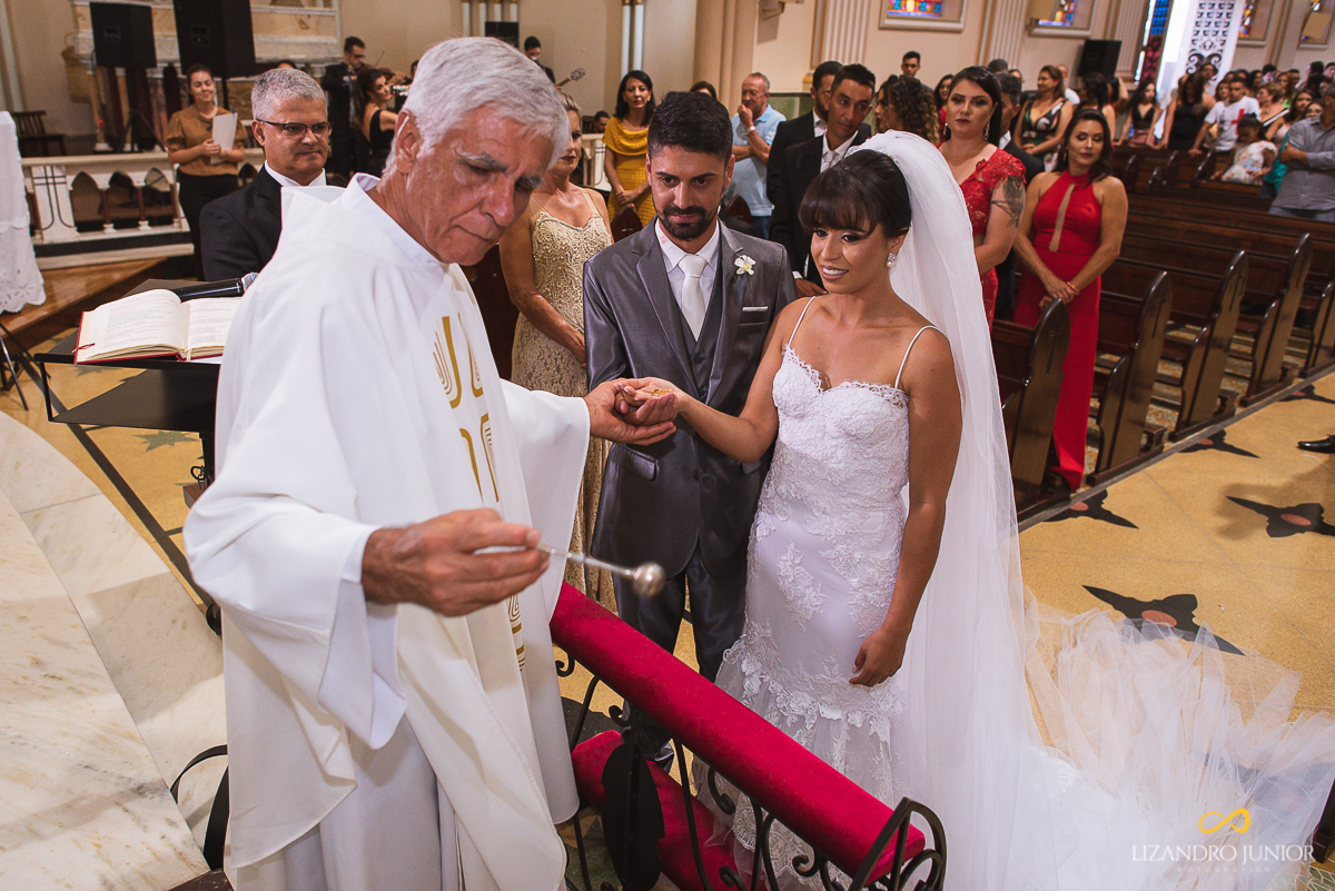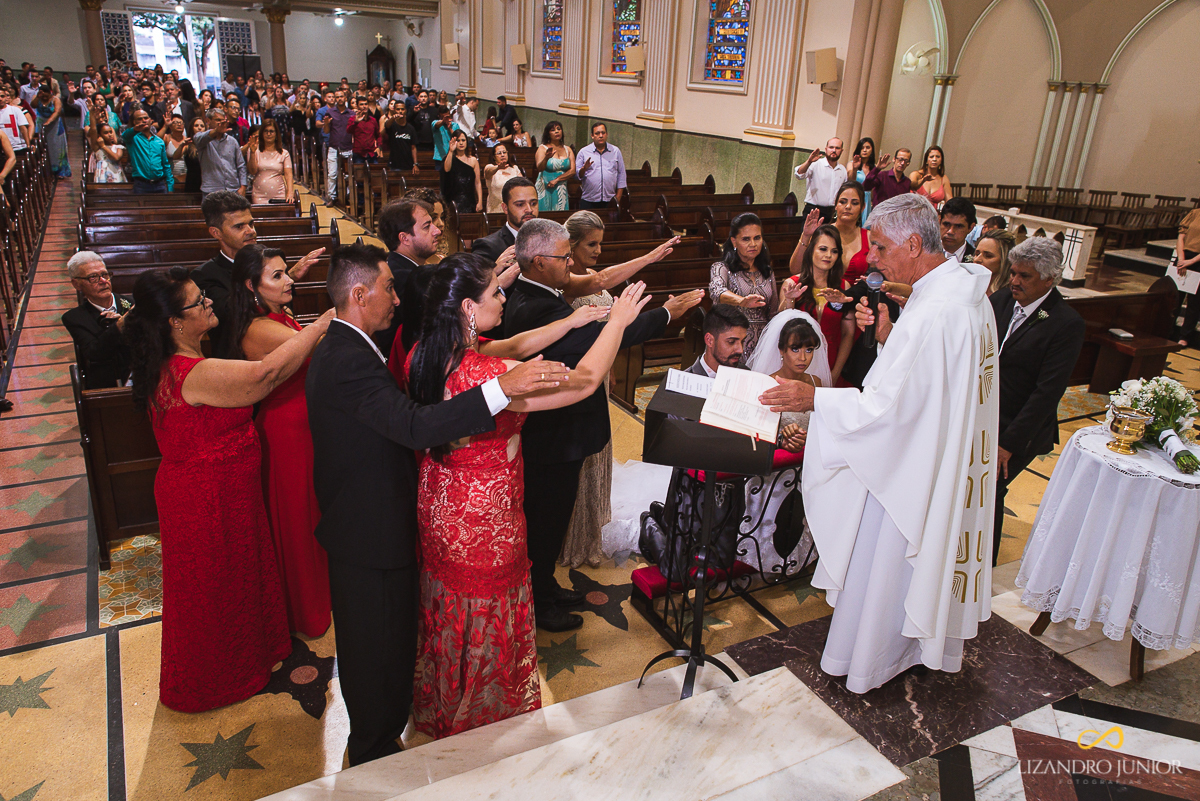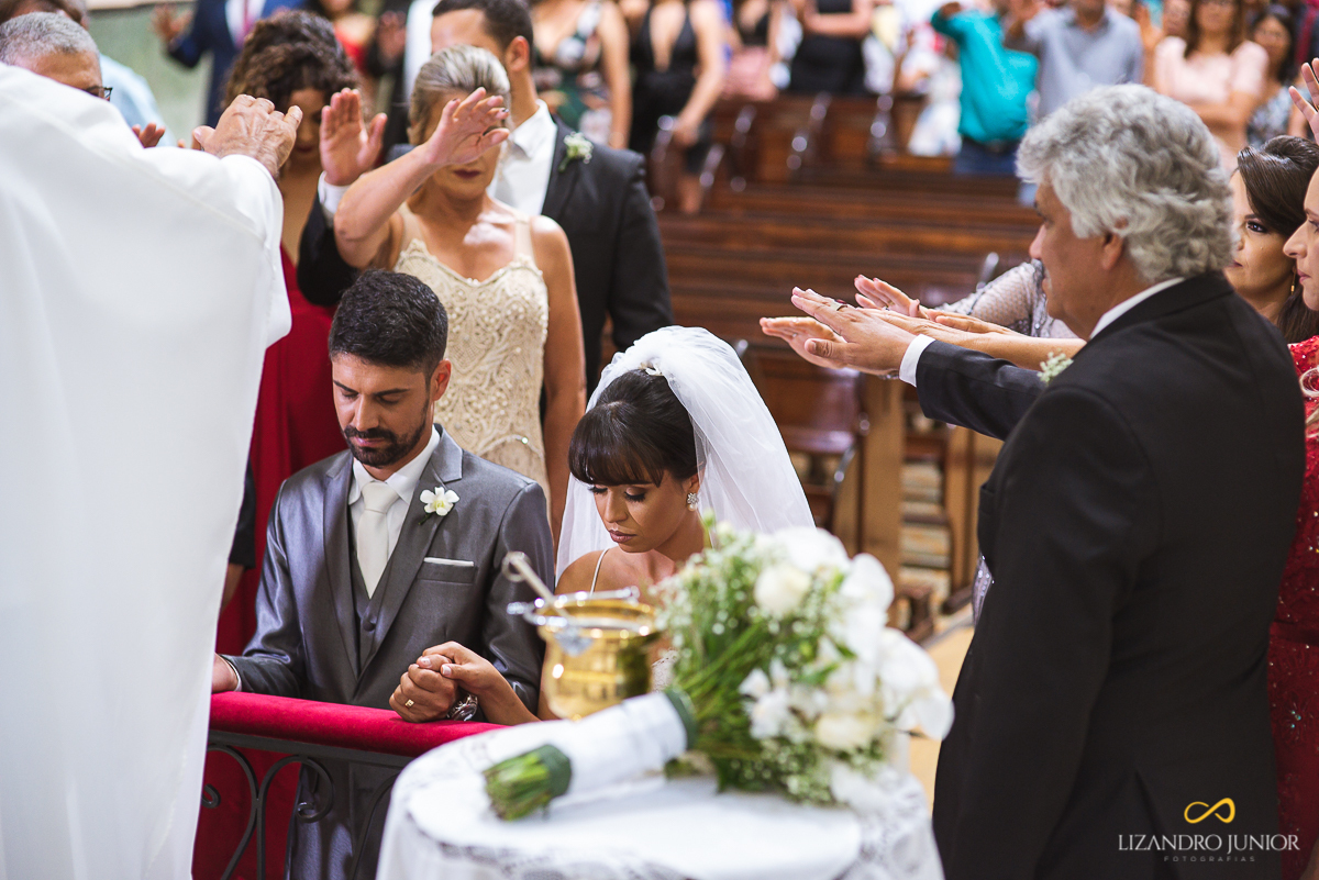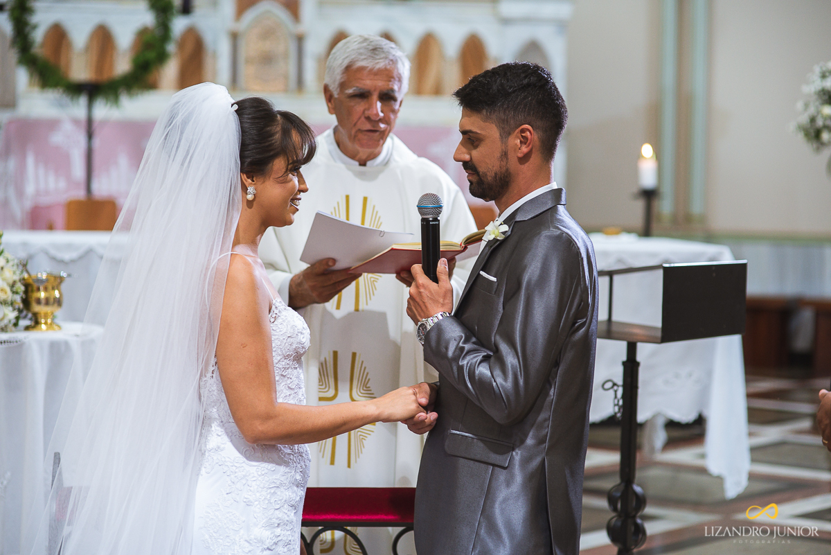 Com passos firmes e sorridente, Denise caminhou de braços dados com sua mãe e após um abraço de despedida, encontrou Wender que lhe deu um beijo respeitoso na testa. Agora enfim, caminhavam juntos rumo ao altar. O padre nos concedeu uma palavra muito bonita e encorajadora e fez questão de convidar os padrinhos para juntos abençoar o casal, além de lhes lembrar suas responsabilidades enquanto padrinhos.