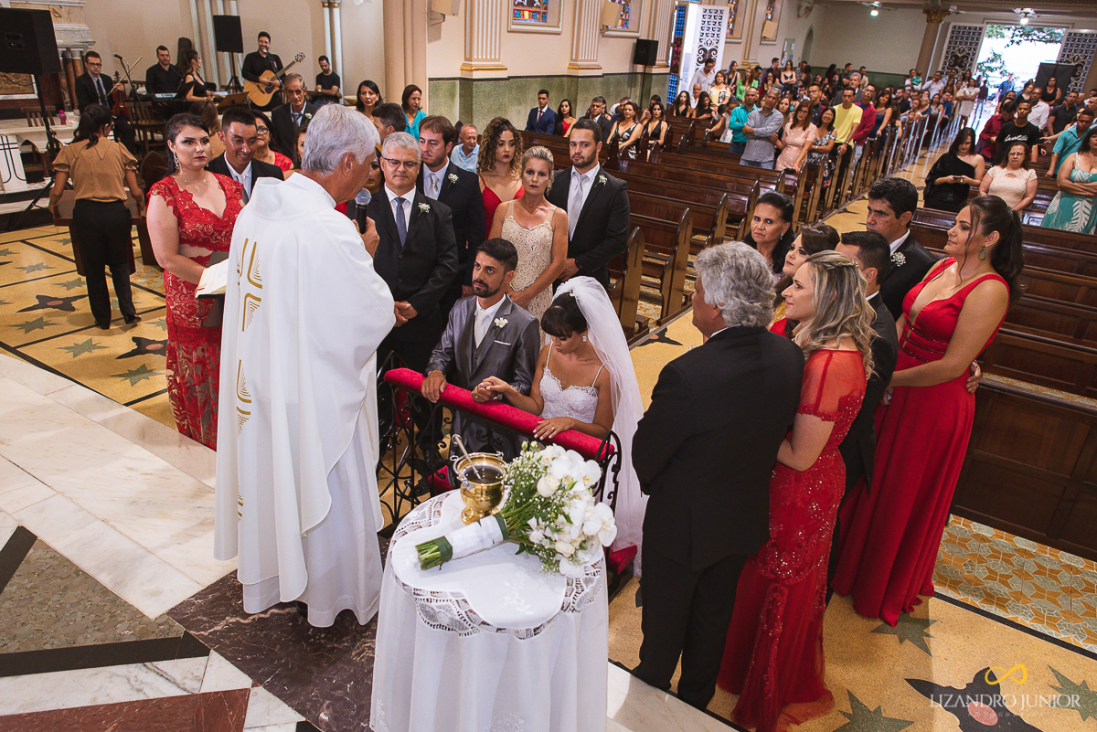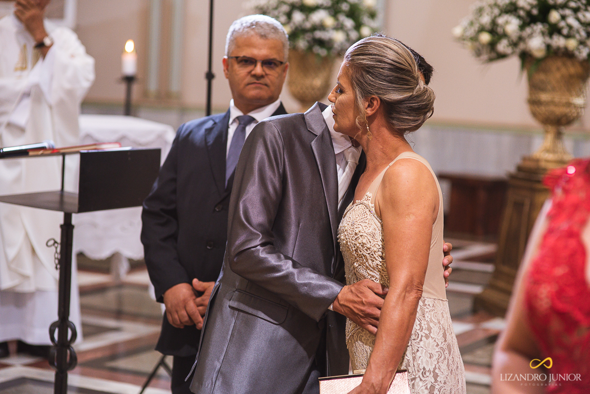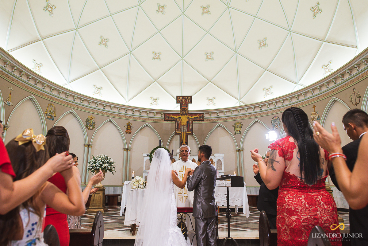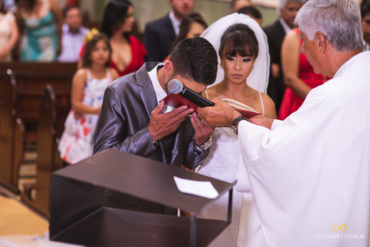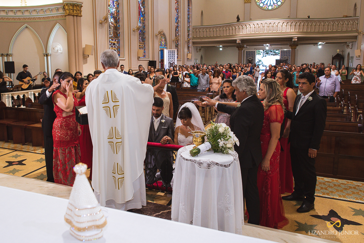 Com passos firmes e sorridente, Denise caminhou de braços dados com sua mãe e após um abraço de despedida, encontrou Wender que lhe deu um beijo respeitoso na testa. Agora enfim, caminhavam juntos rumo ao altar. O padre nos concedeu uma palavra muito bonita e encorajadora e fez questão de convidar os padrinhos para juntos abençoar o casal, além de lhes lembrar suas responsabilidades enquanto padrinhos.
