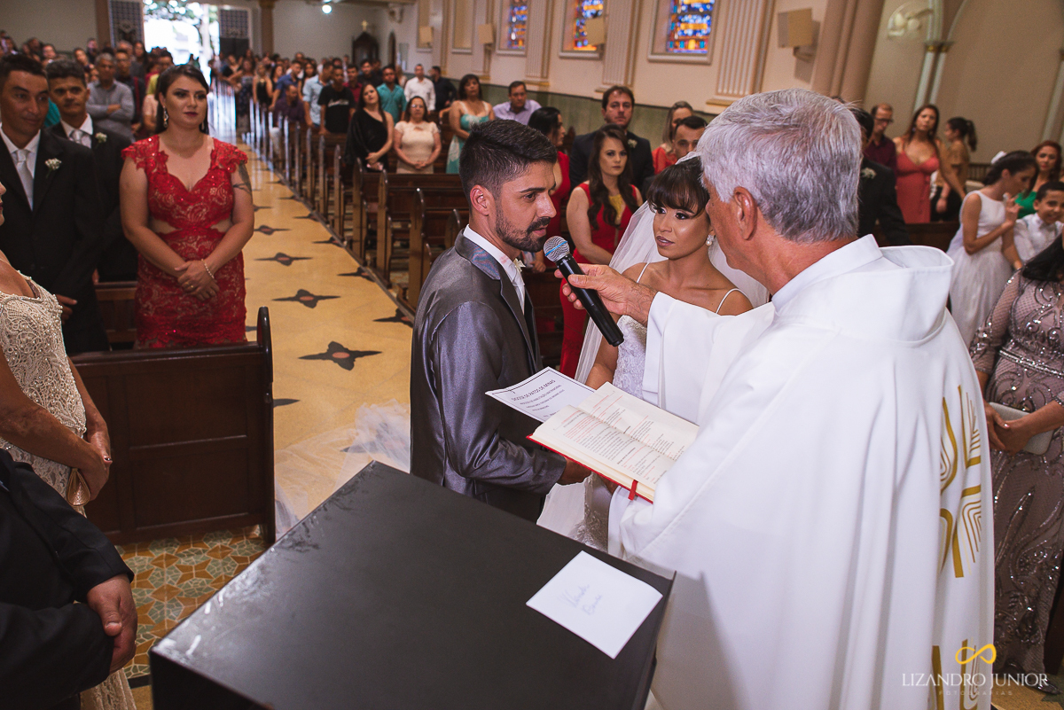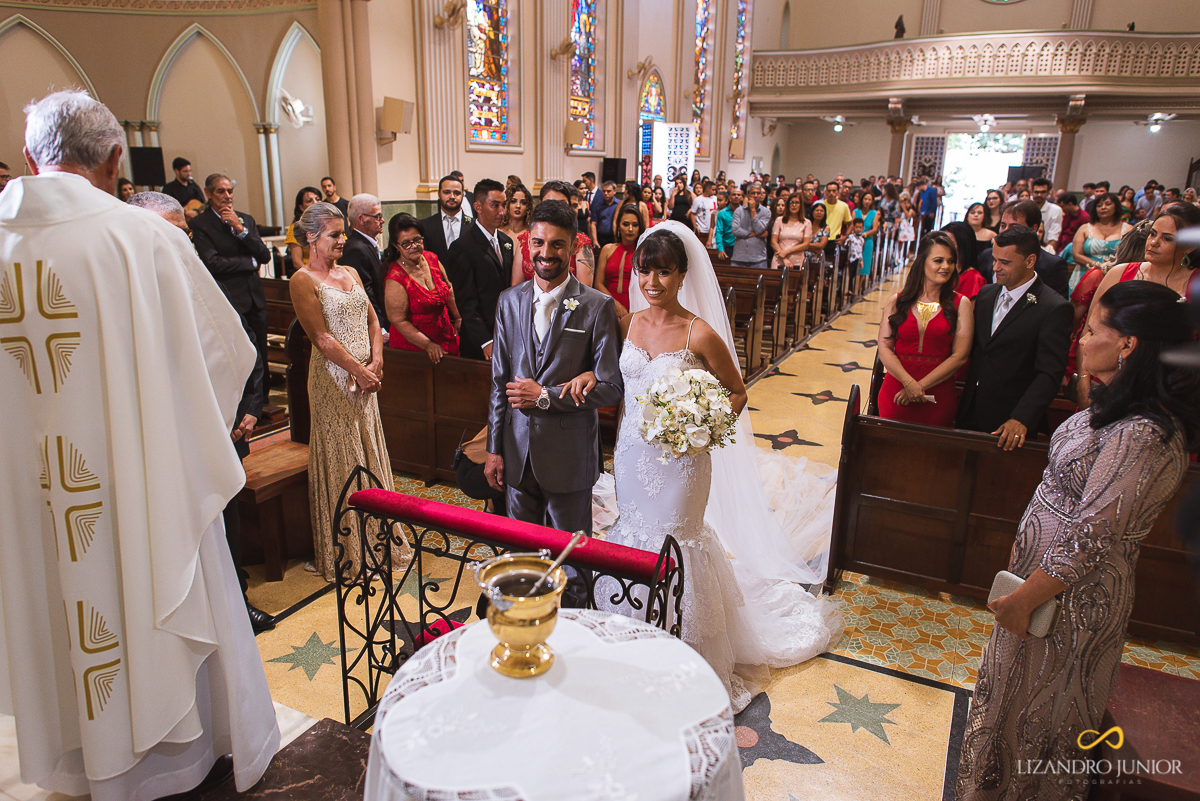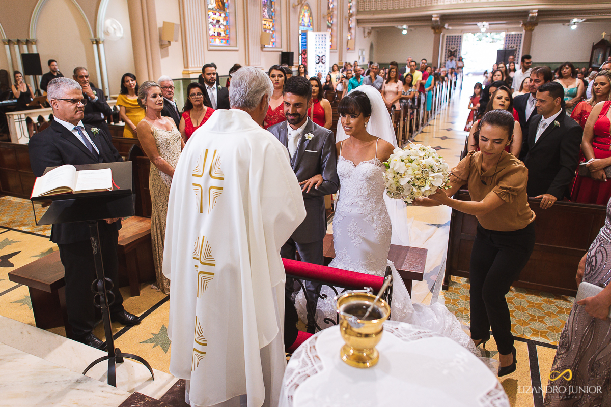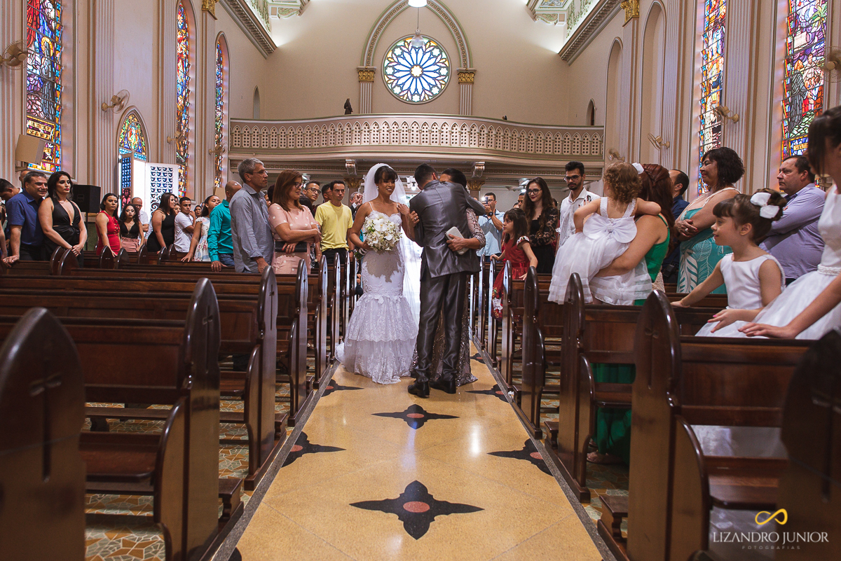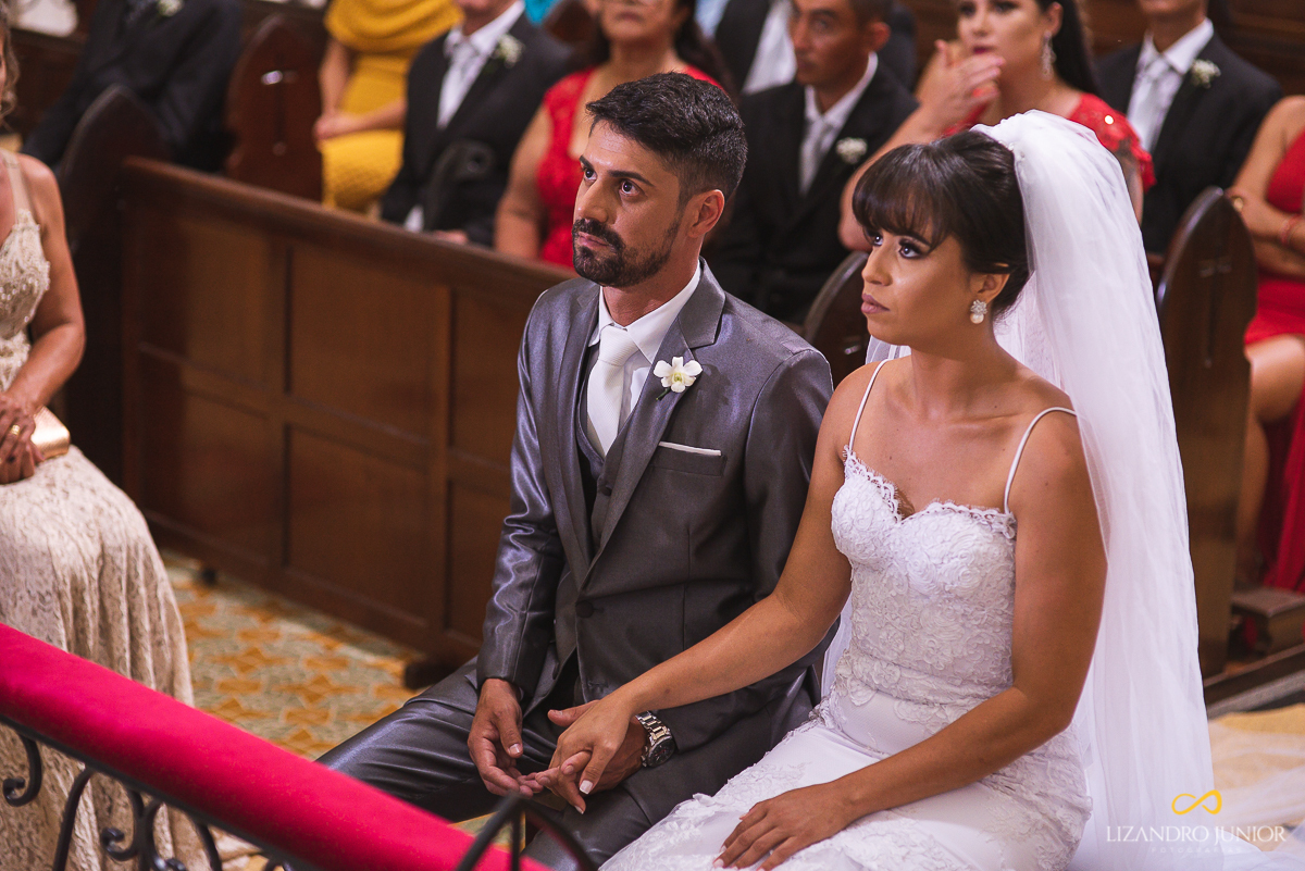 Com passos firmes e sorridente, Denise caminhou de braços dados com sua mãe e após um abraço de despedida, encontrou Wender que lhe deu um beijo respeitoso na testa. Agora enfim, caminhavam juntos rumo ao altar. O padre nos concedeu uma palavra muito bonita e encorajadora e fez questão de convidar os padrinhos para juntos abençoar o casal, além de lhes lembrar suas responsabilidades enquanto padrinhos.
