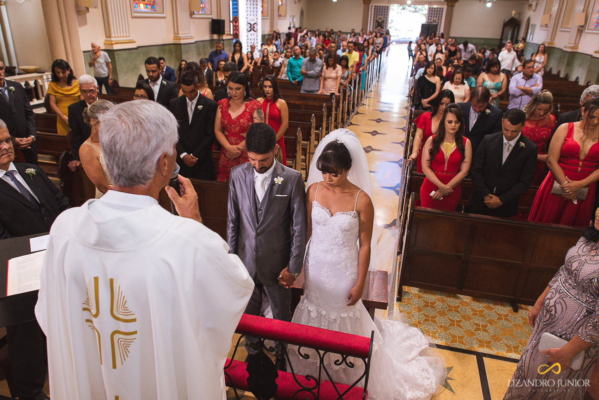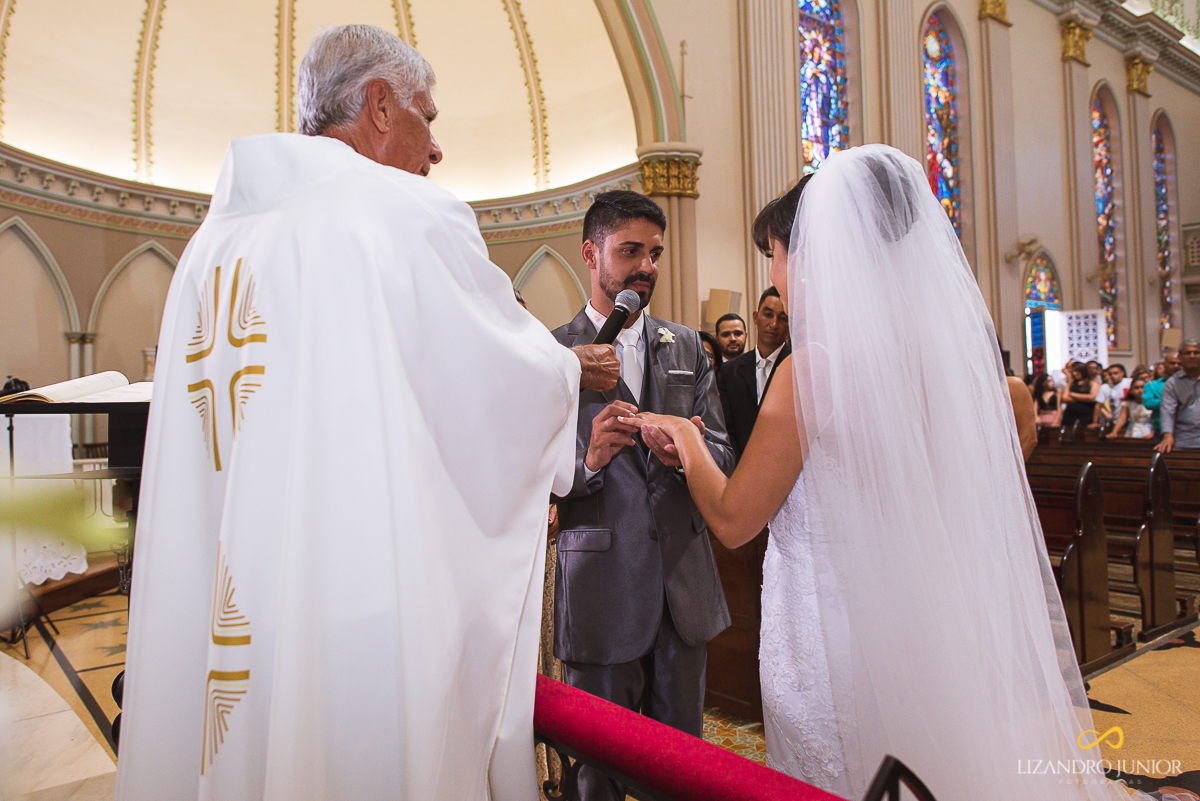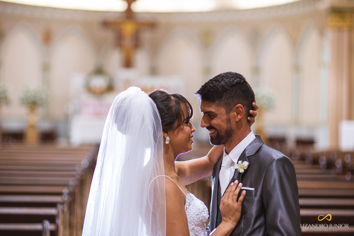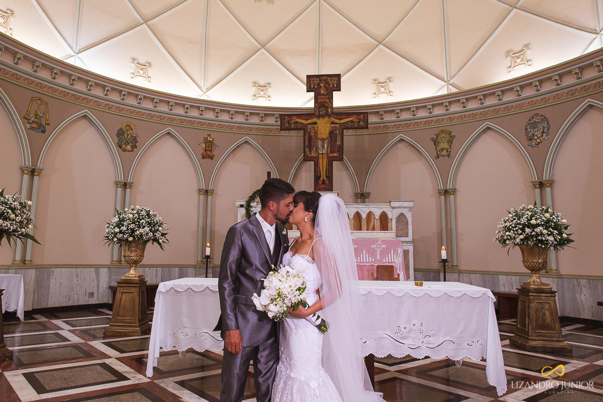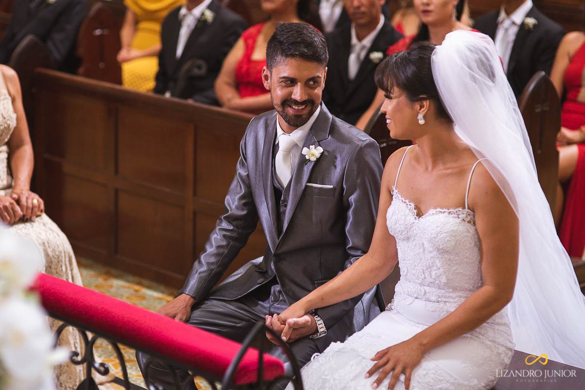 Com passos firmes e sorridente, Denise caminhou de braços dados com sua mãe e após um abraço de despedida, encontrou Wender que lhe deu um beijo respeitoso na testa. Agora enfim, caminhavam juntos rumo ao altar. O padre nos concedeu uma palavra muito bonita e encorajadora e fez questão de convidar os padrinhos para juntos abençoar o casal, além de lhes lembrar suas responsabilidades enquanto padrinhos.