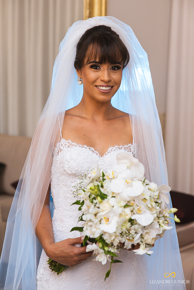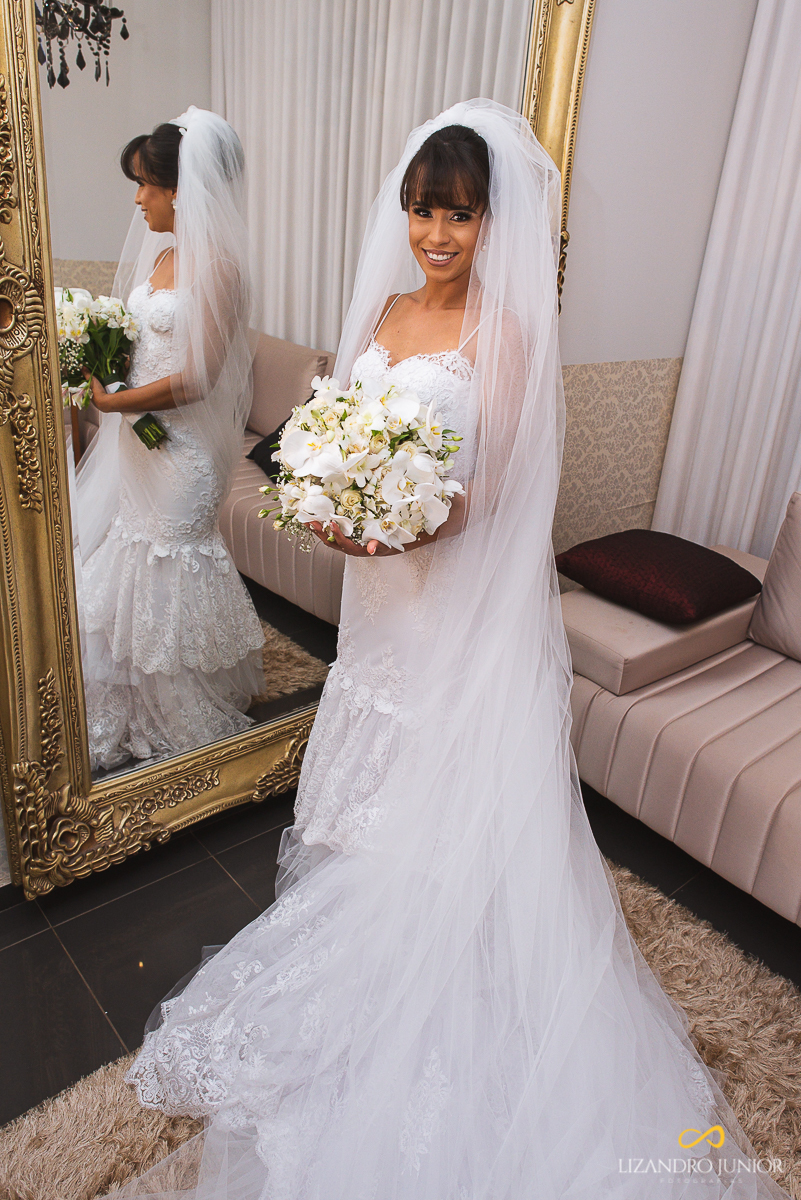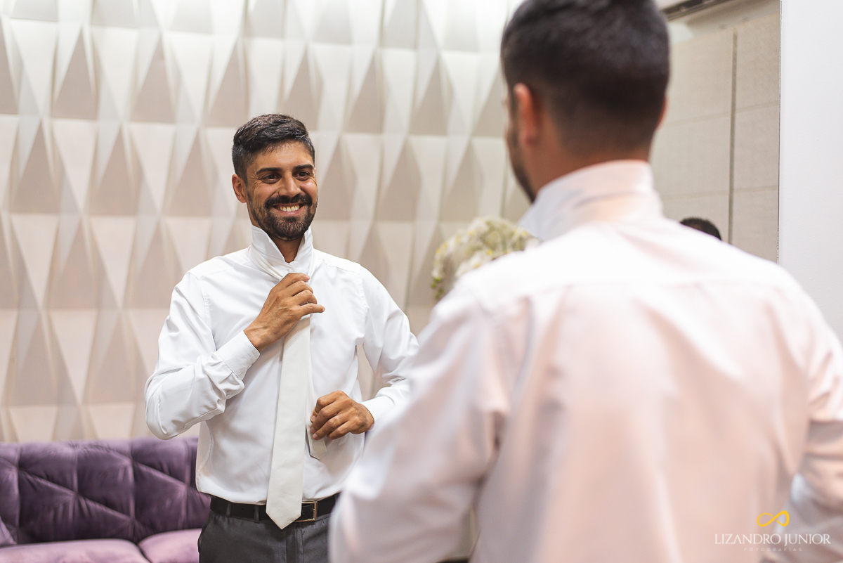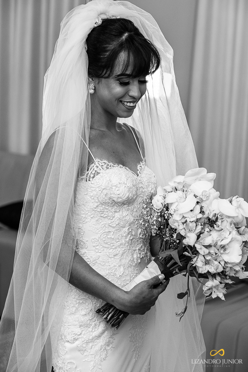Creio que por ter sua mãe apoiando em todos os momentos durante a sua produção, Denise se sentia muito à vontade. Aos poucos, seu penteado maravilhoso tomava forma. Fizemos algumas fotos e logo ela estava pronta. Wender também se arrumou no salão Salvatore, porta a porta com sua amada. E claro, não poderia deixar de a surpreender com um mega buquê de flores. Com um cartão escrito à mão, uma mensagem de amor para ela. Os olhinhos brilhavam!