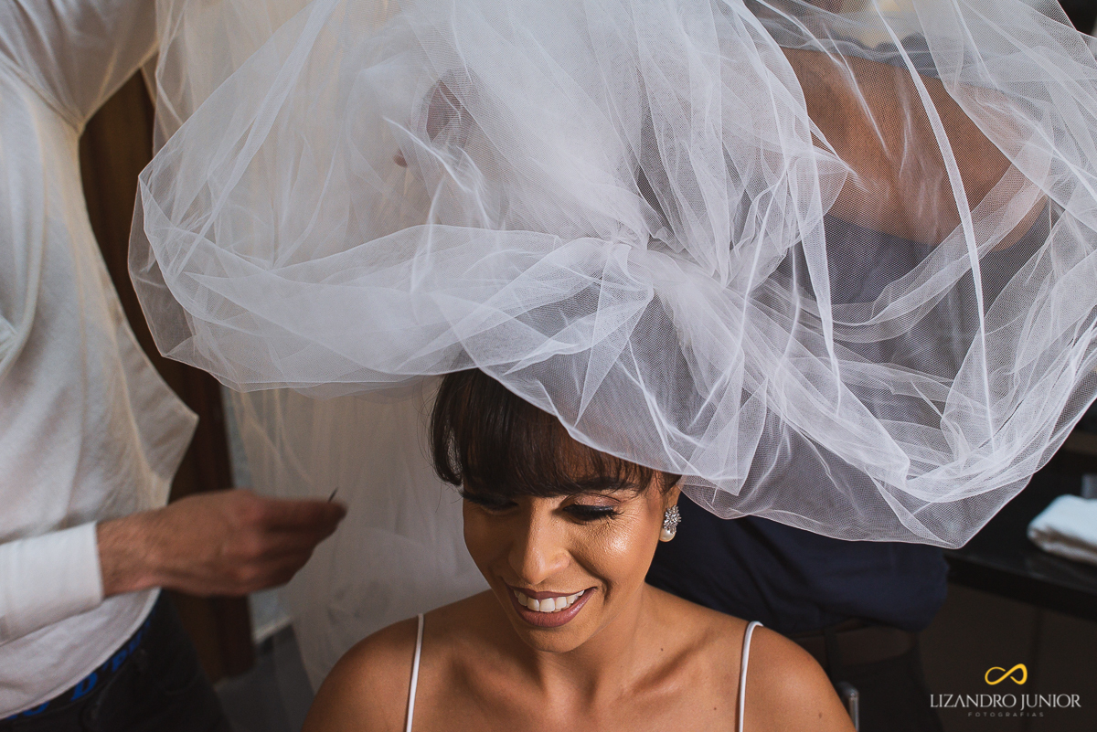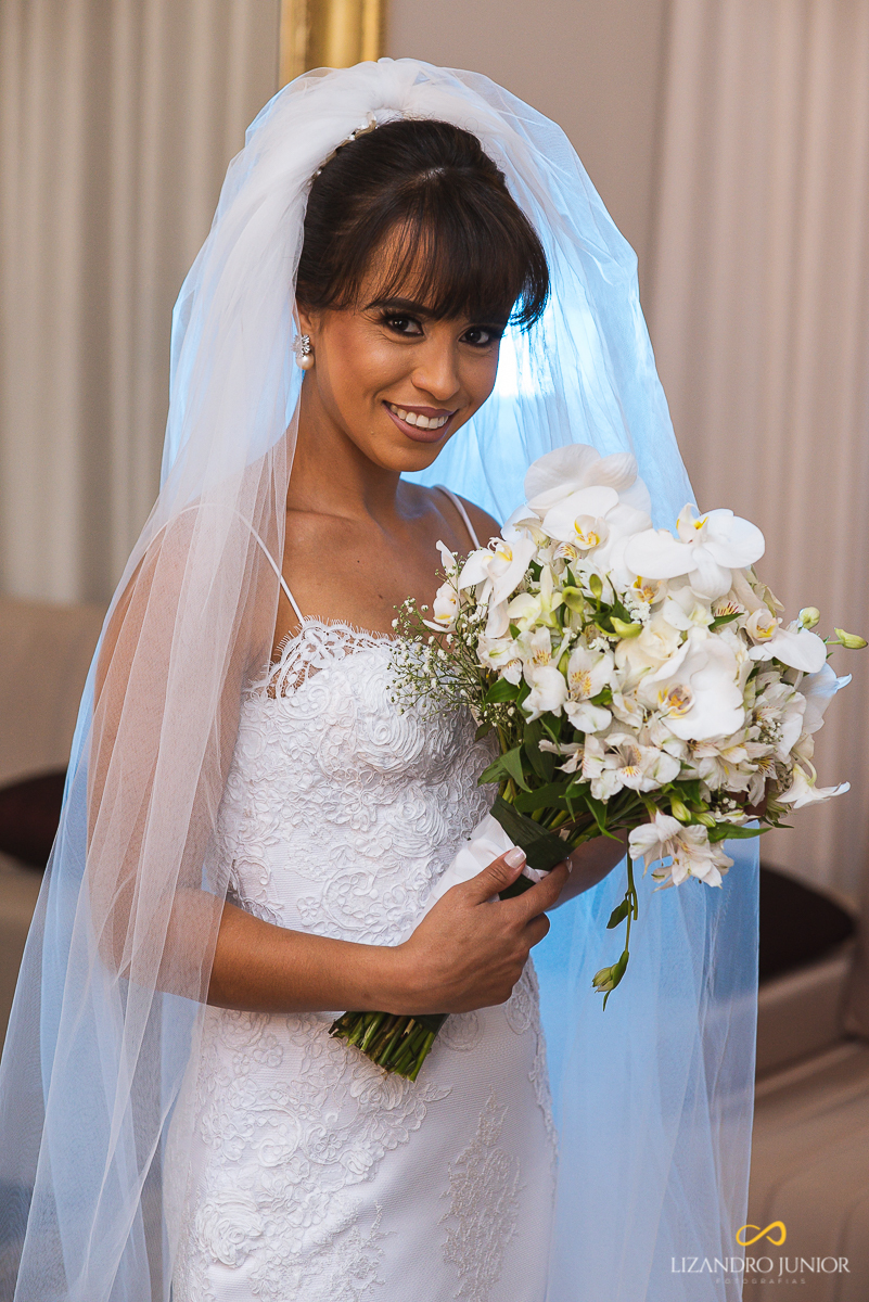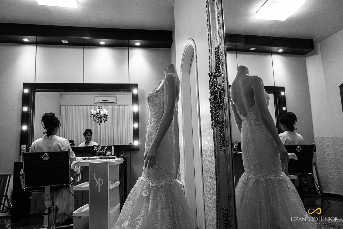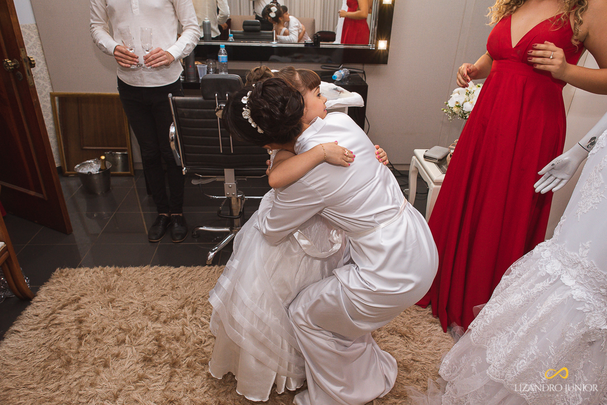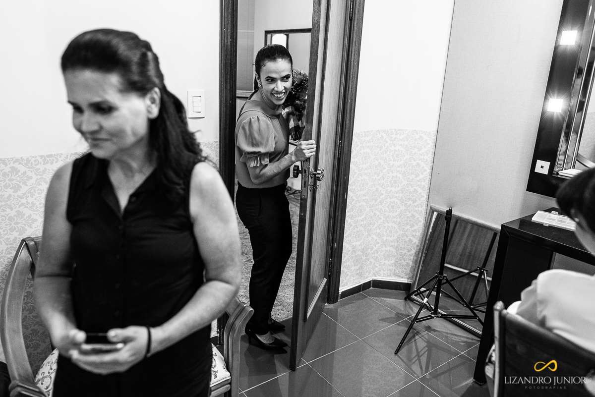 Creio que por ter sua mãe apoiando em todos os momentos durante a sua produção, Denise se sentia muito à vontade. Aos poucos, seu penteado maravilhoso tomava forma. Fizemos algumas fotos e logo ela estava pronta. Wender também se arrumou no salão Salvatore, porta a porta com sua amada. E claro, não poderia deixar de a surpreender com um mega buquê de flores. Com um cartão escrito à mão, uma mensagem de amor para ela. Os olhinhos brilhavam!