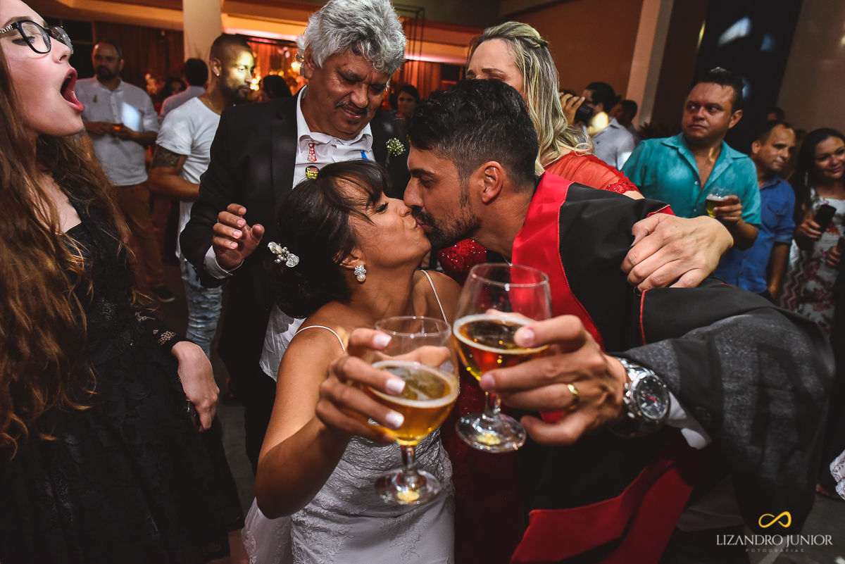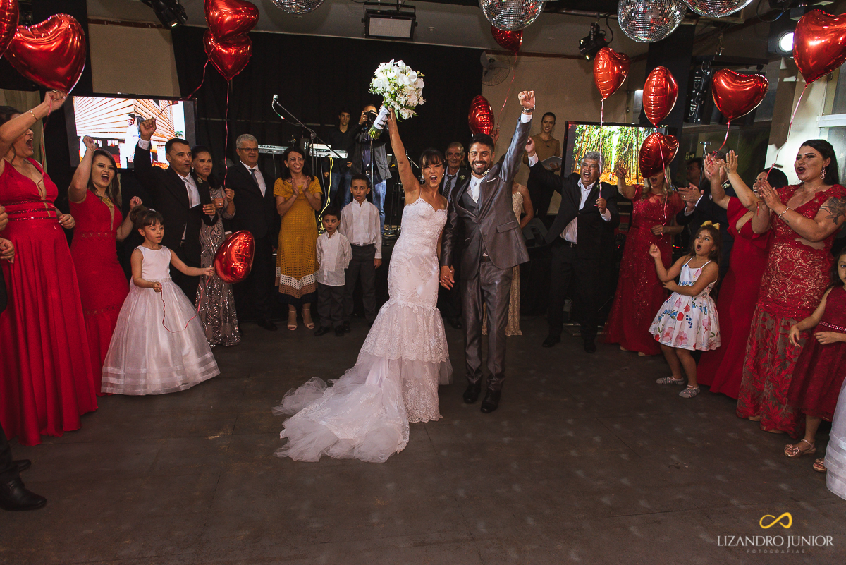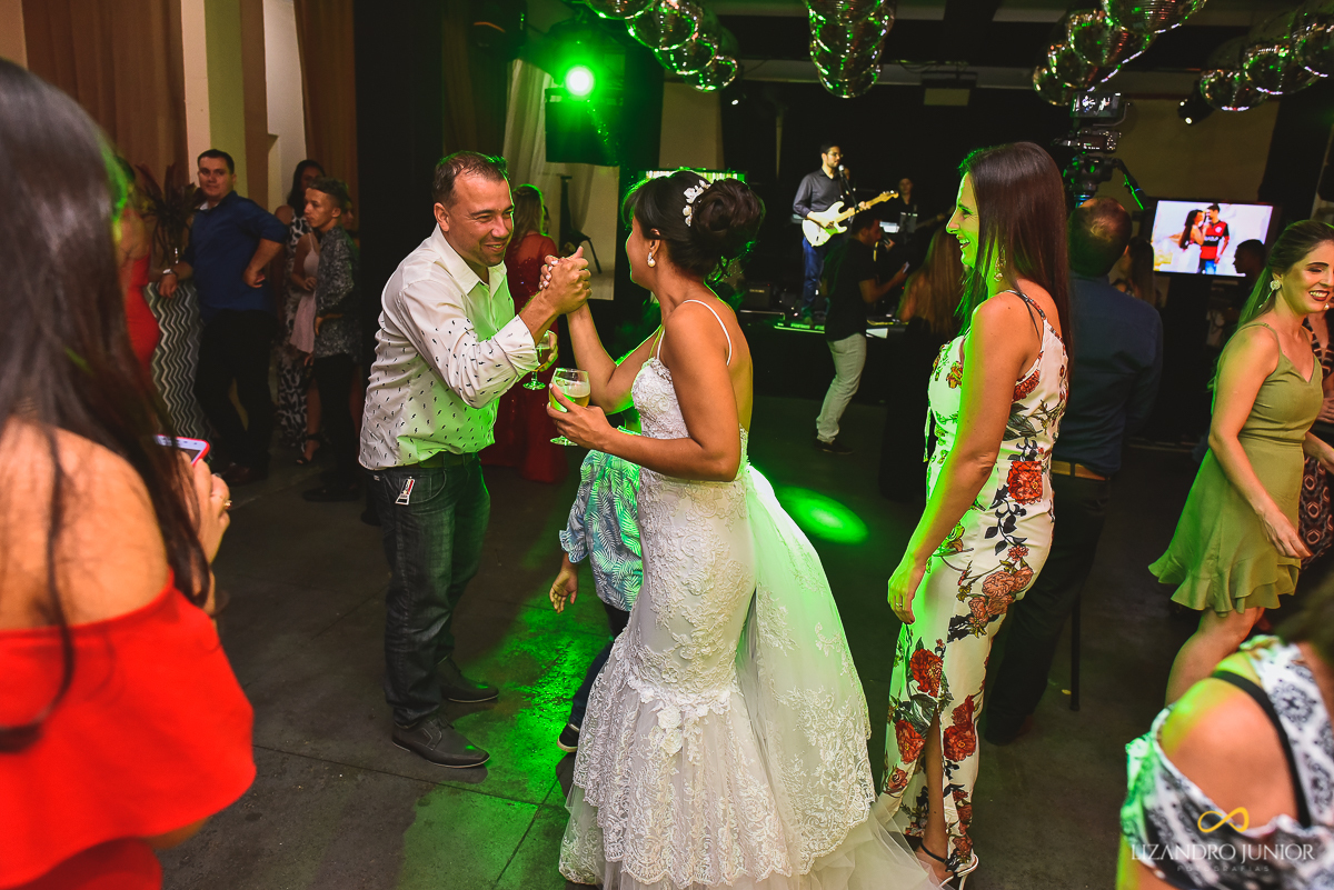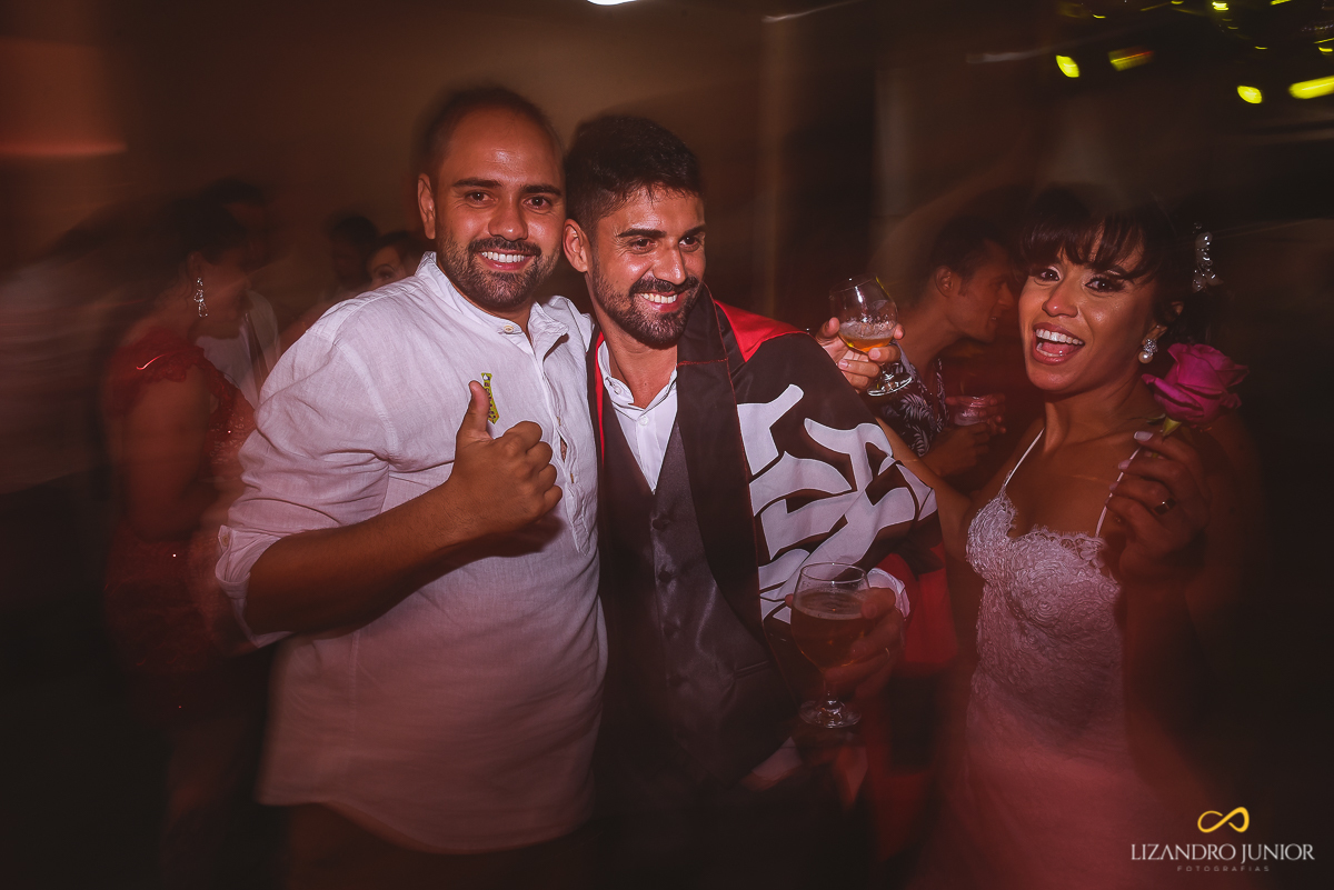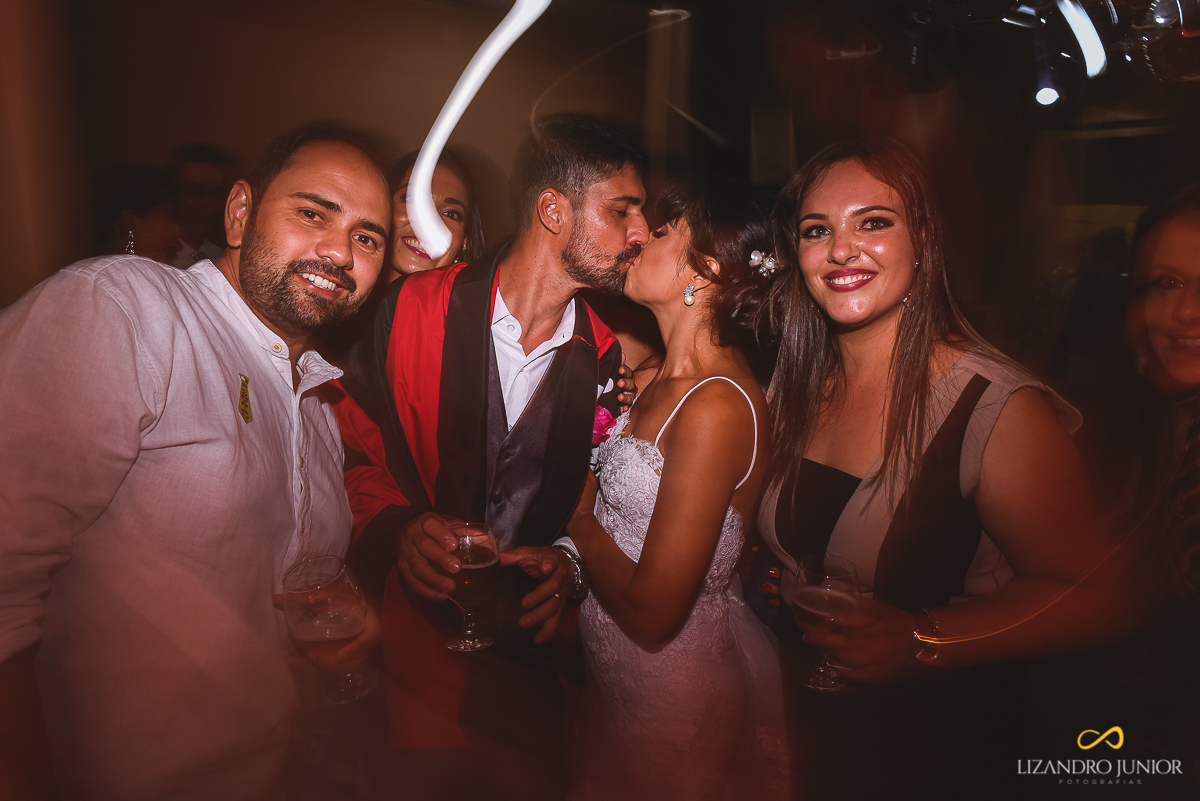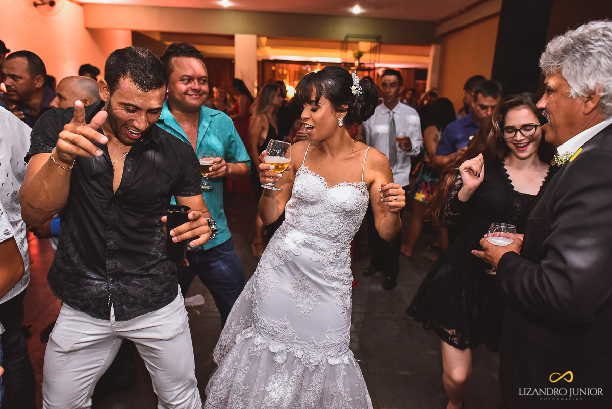 Depois de uma cerimônia linda, o casal partiu para a recepção. Lá chegando, foram anunciados como o mais novo casal da noite. E embalados pela música, dançaram sua primeira valsa. Junto com os padrinhos e madrinhas, brindaram e comemoraram muito aquele momento. A pista ficou pequena diante de tantas pessoas que dançaram ao som de Rejane e Banda que animou e cantou de tudo. Os noivos curtiram, brindaram, riram e foram amplamente cumprimentados por todos. Foi realmente uma festa inesquecível que agora você pode conferir em forma de imagens lindas!