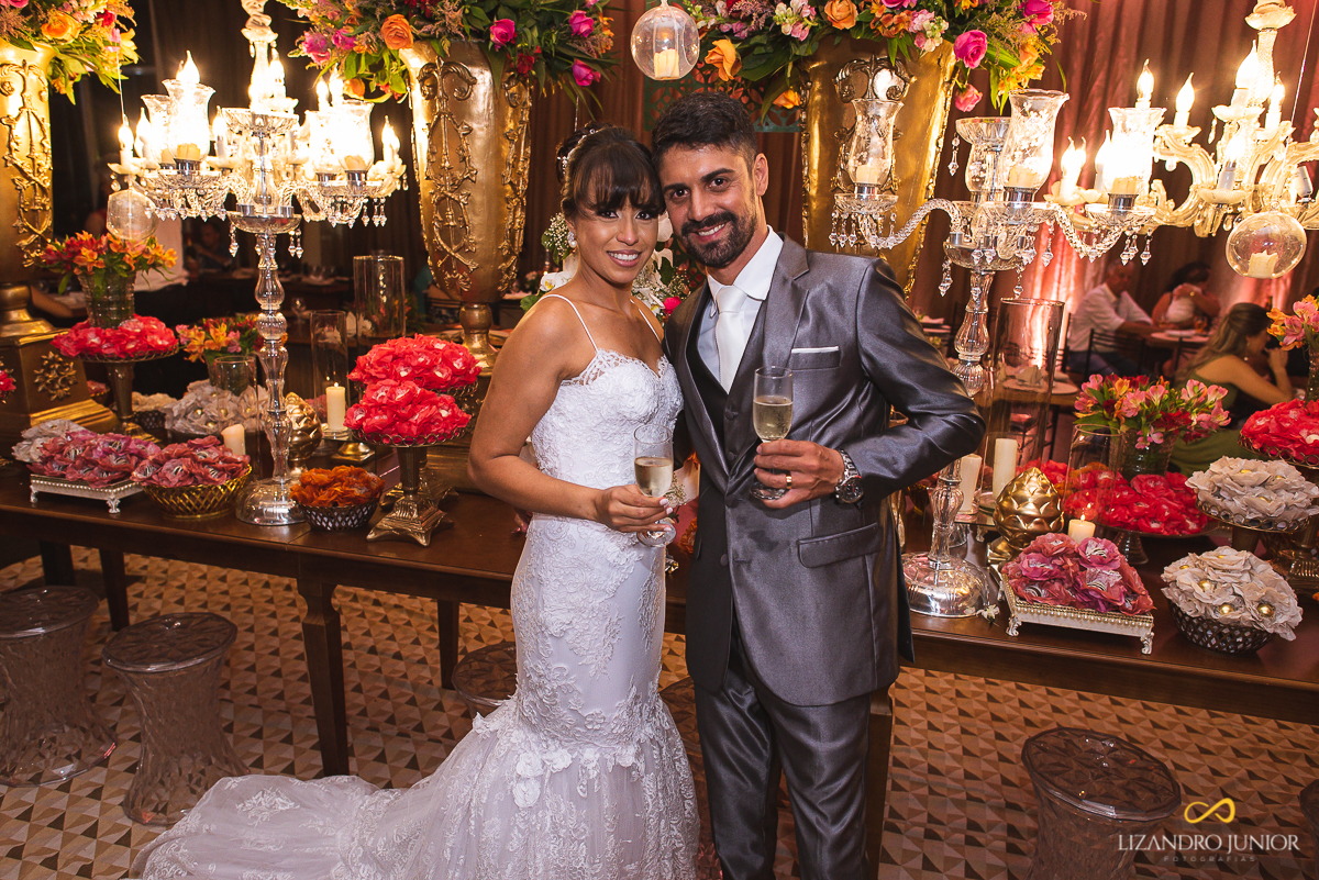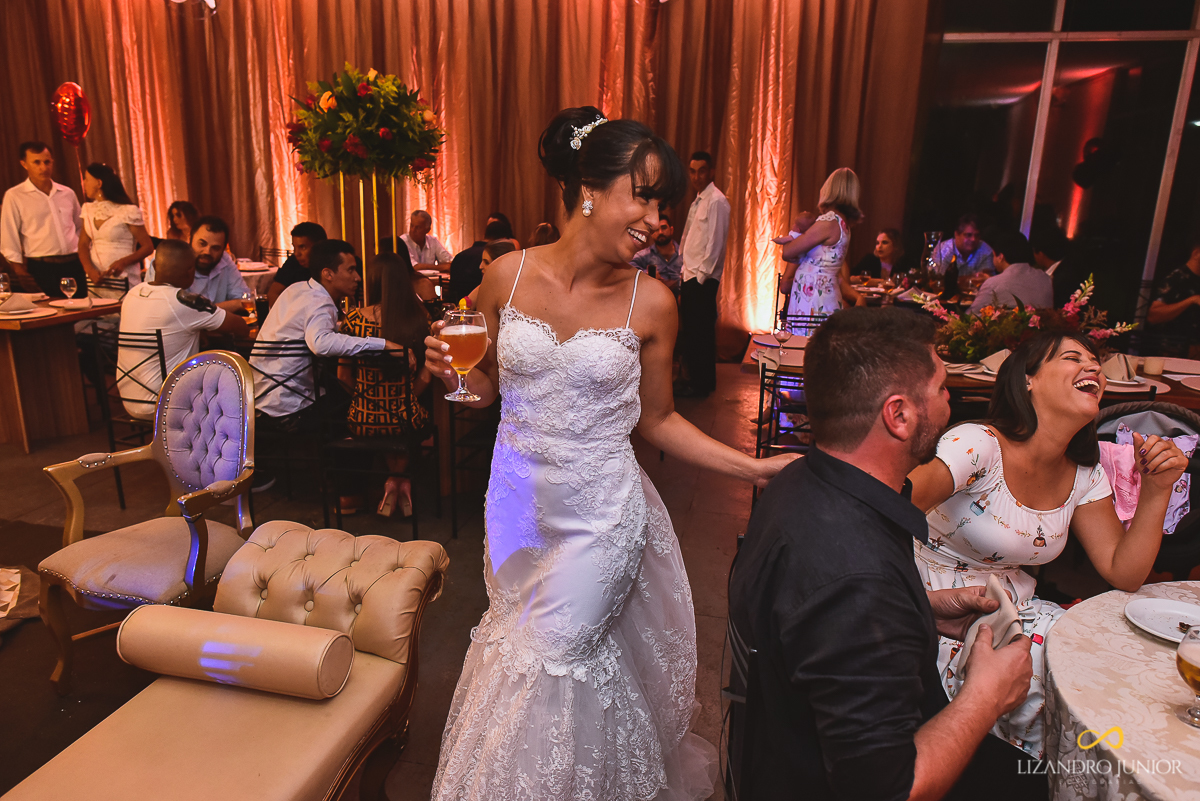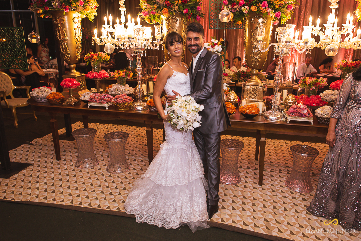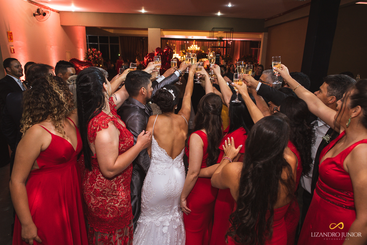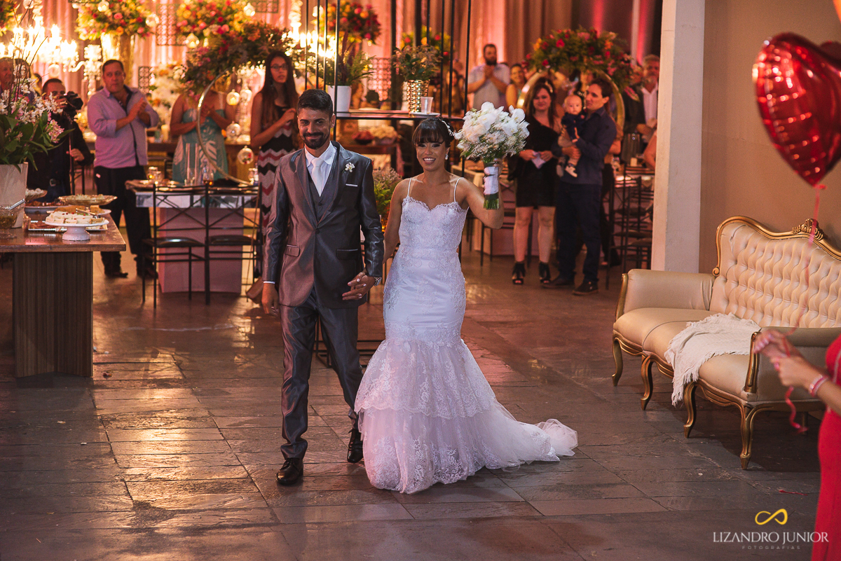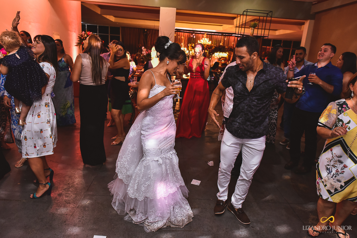 Depois de uma cerimônia linda, o casal partiu para a recepção. Lá chegando, foram anunciados como o mais novo casal da noite. E embalados pela música, dançaram sua primeira valsa. Junto com os padrinhos e madrinhas, brindaram e comemoraram muito aquele momento. A pista ficou pequena diante de tantas pessoas que dançaram ao som de Rejane e Banda que animou e cantou de tudo. Os noivos curtiram, brindaram, riram e foram amplamente cumprimentados por todos. Foi realmente uma festa inesquecível que agora você pode conferir em forma de imagens lindas!