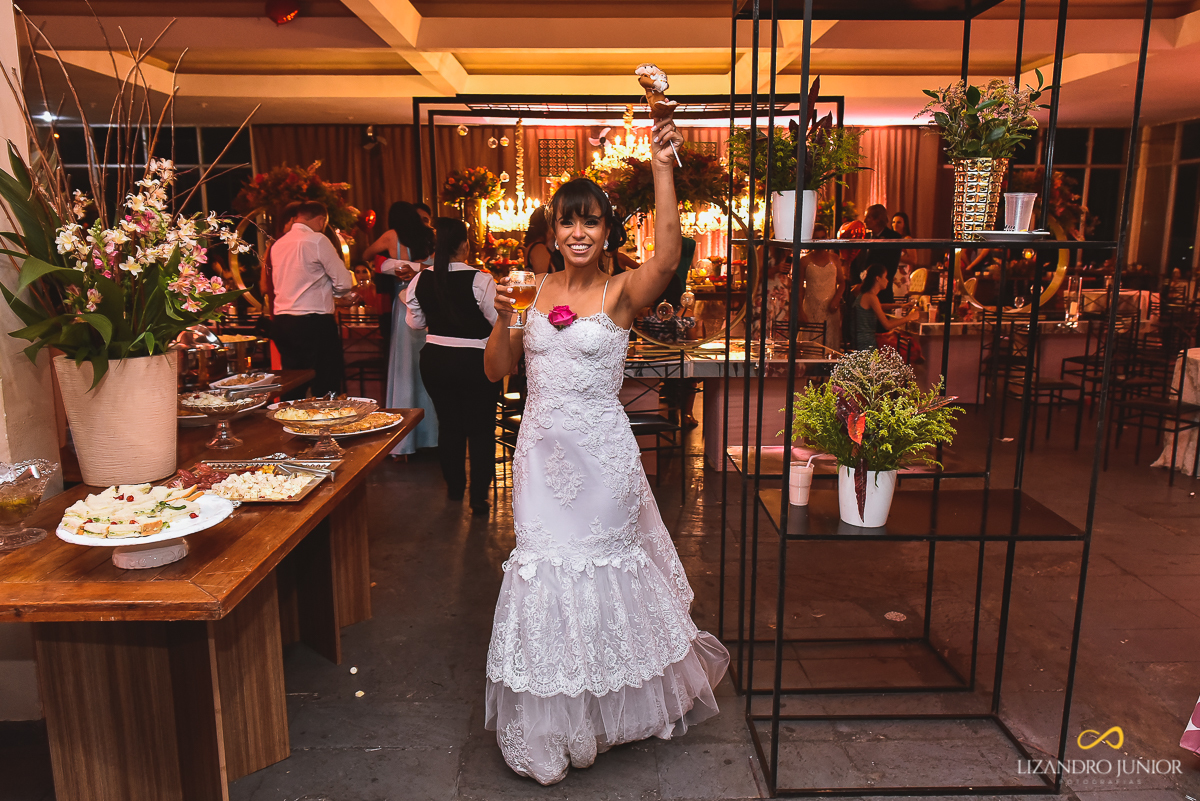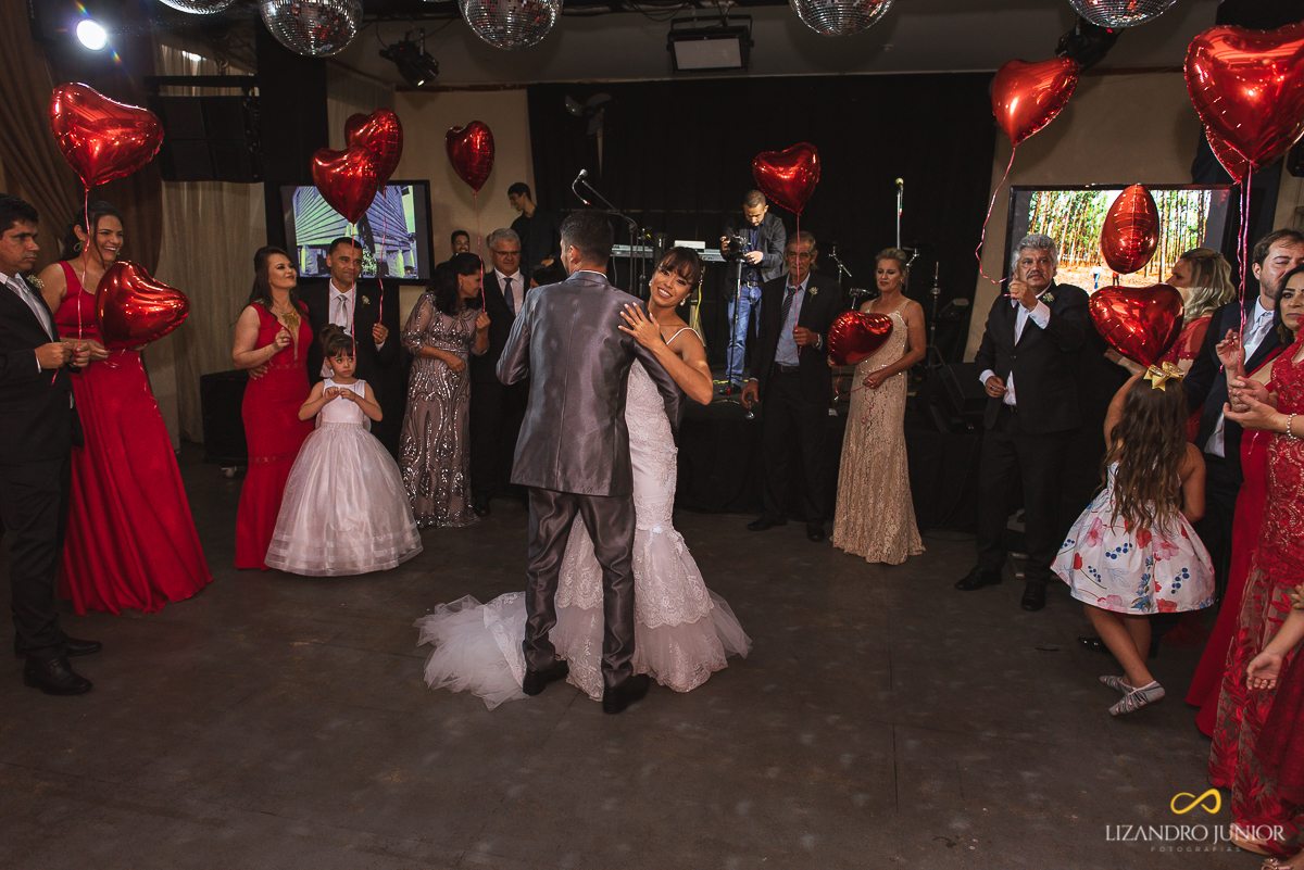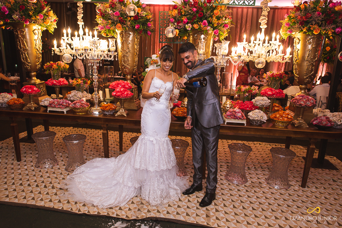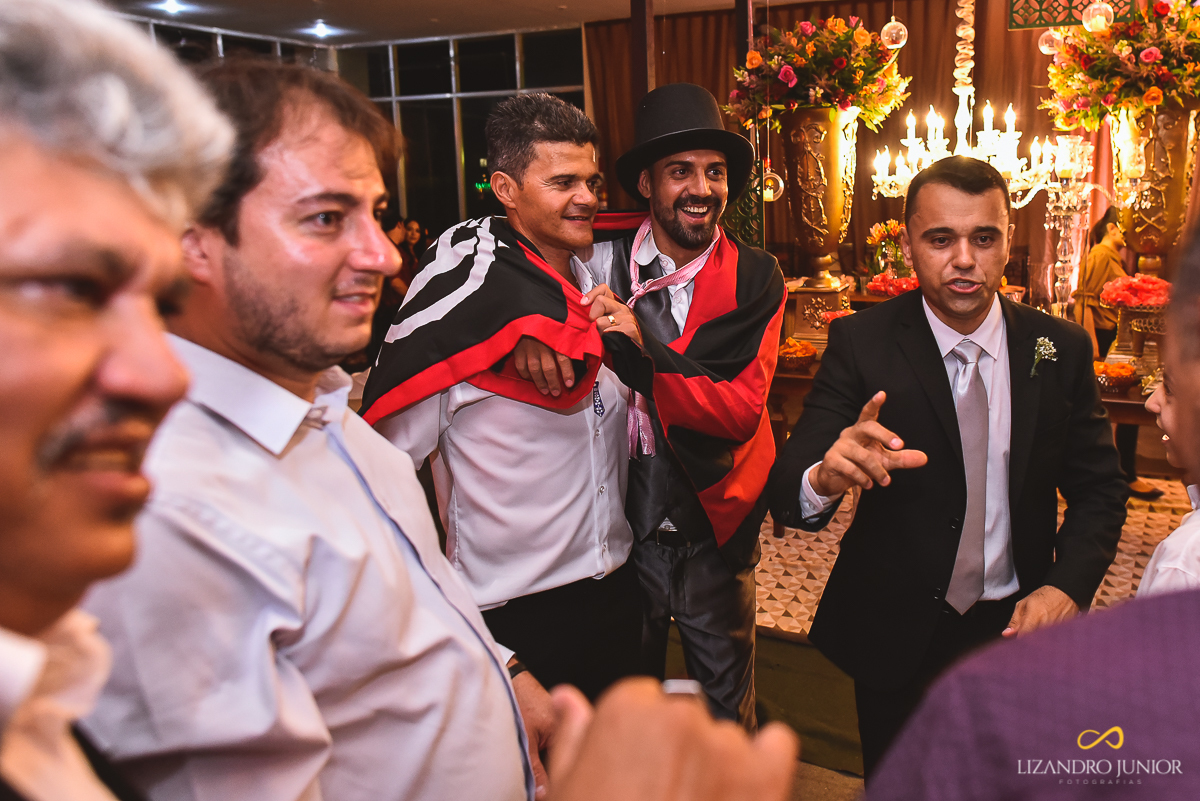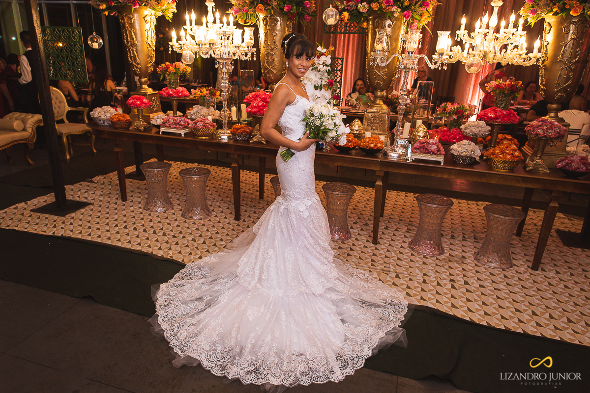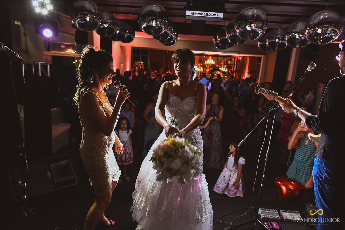 Depois de uma cerimônia linda, o casal partiu para a recepção. Lá chegando, foram anunciados como o mais novo casal da noite. E embalados pela música, dançaram sua primeira valsa. Junto com os padrinhos e madrinhas, brindaram e comemoraram muito aquele momento. A pista ficou pequena diante de tantas pessoas que dançaram ao som de Rejane e Banda que animou e cantou de tudo. Os noivos curtiram, brindaram, riram e foram amplamente cumprimentados por todos. Foi realmente uma festa inesquecível que agora você pode conferir em forma de imagens lindas!