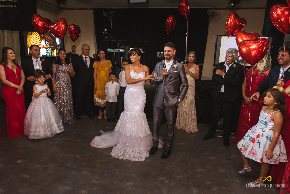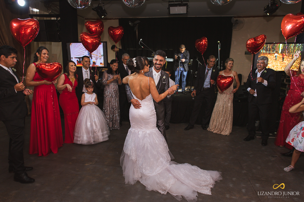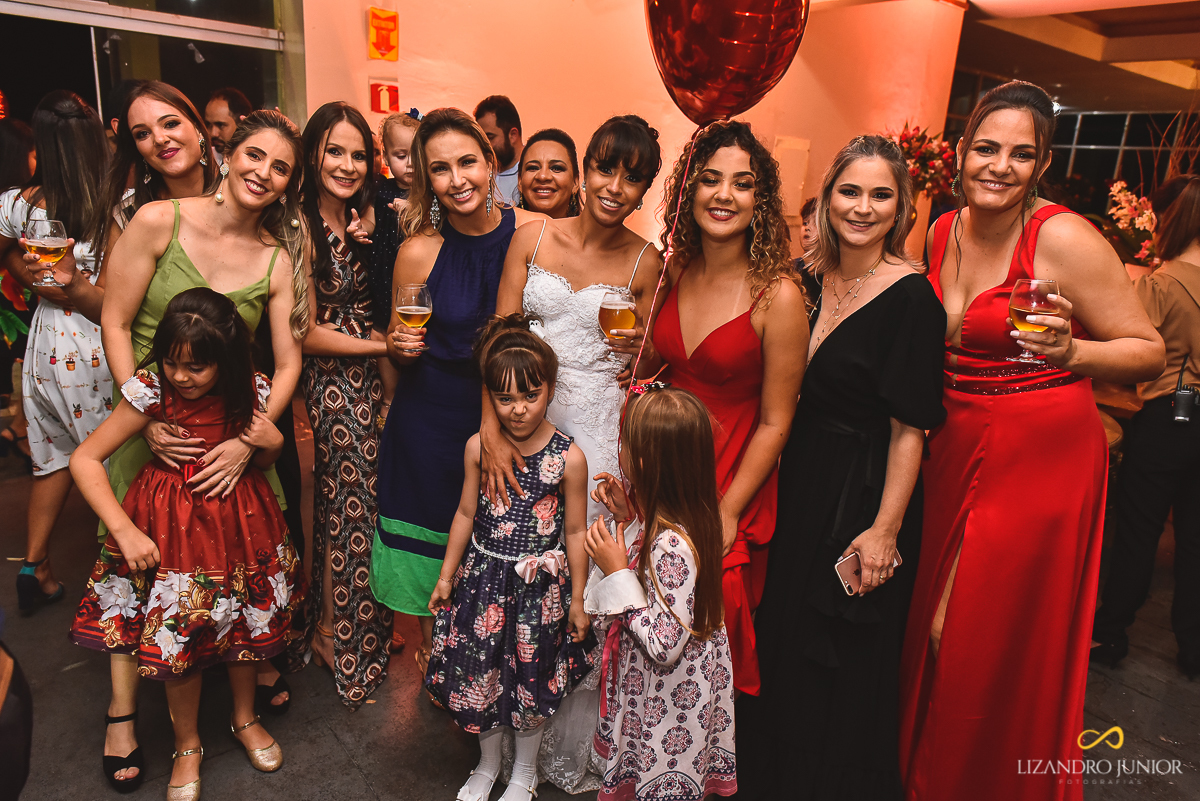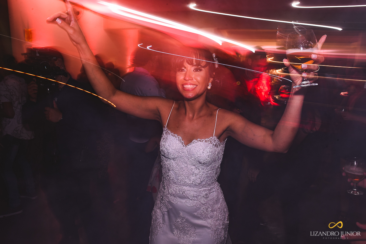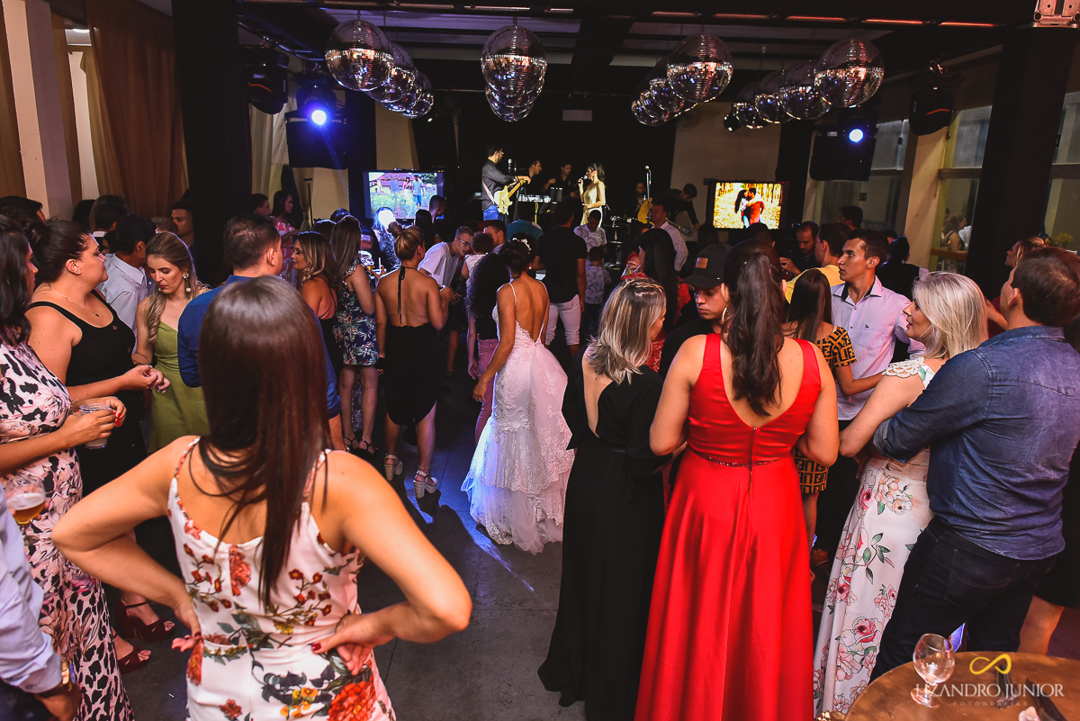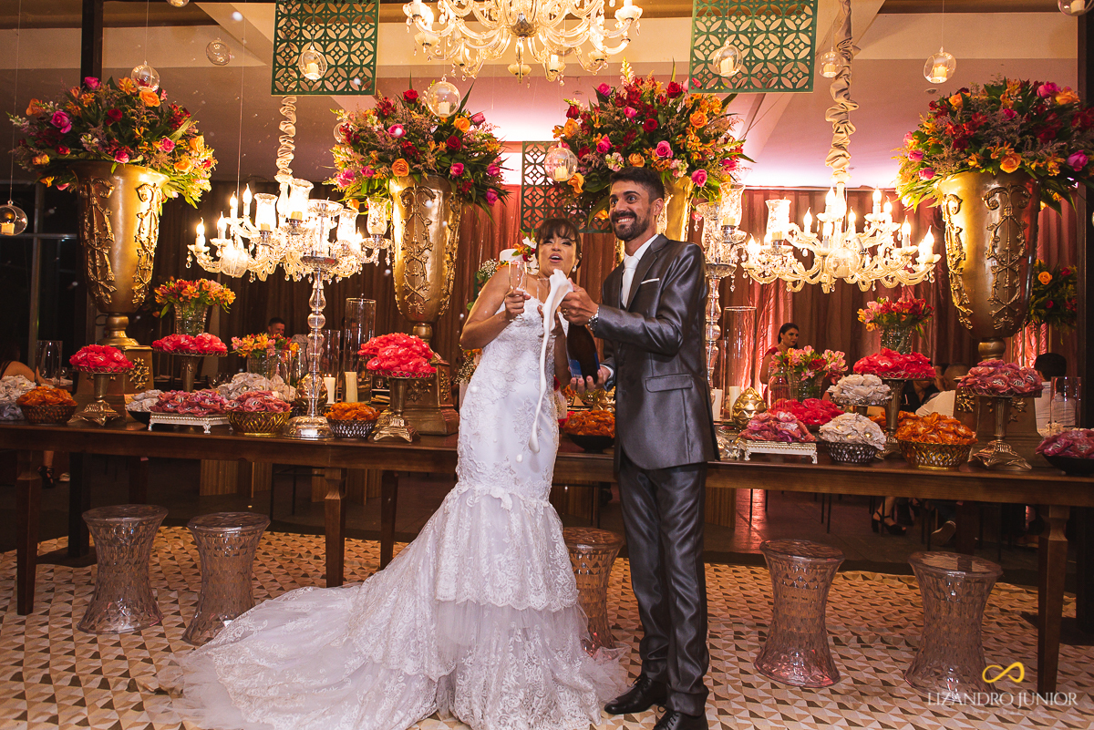 Depois de uma cerimônia linda, o casal partiu para a recepção. Lá chegando, foram anunciados como o mais novo casal da noite. E embalados pela música, dançaram sua primeira valsa. Junto com os padrinhos e madrinhas, brindaram e comemoraram muito aquele momento. A pista ficou pequena diante de tantas pessoas que dançaram ao som de Rejane e Banda que animou e cantou de tudo. Os noivos curtiram, brindaram, riram e foram amplamente cumprimentados por todos. Foi realmente uma festa inesquecível que agora você pode conferir em forma de imagens lindas!