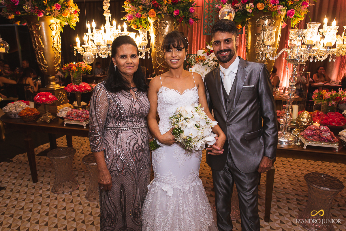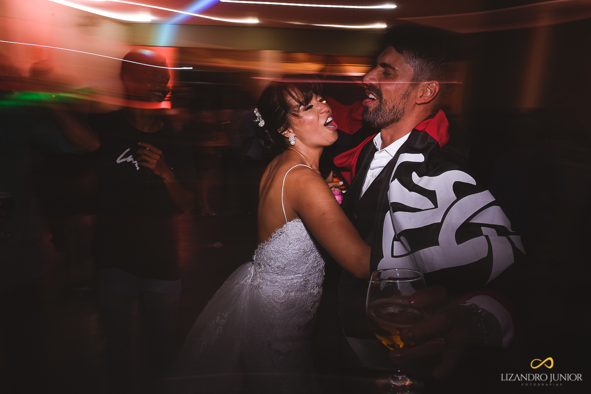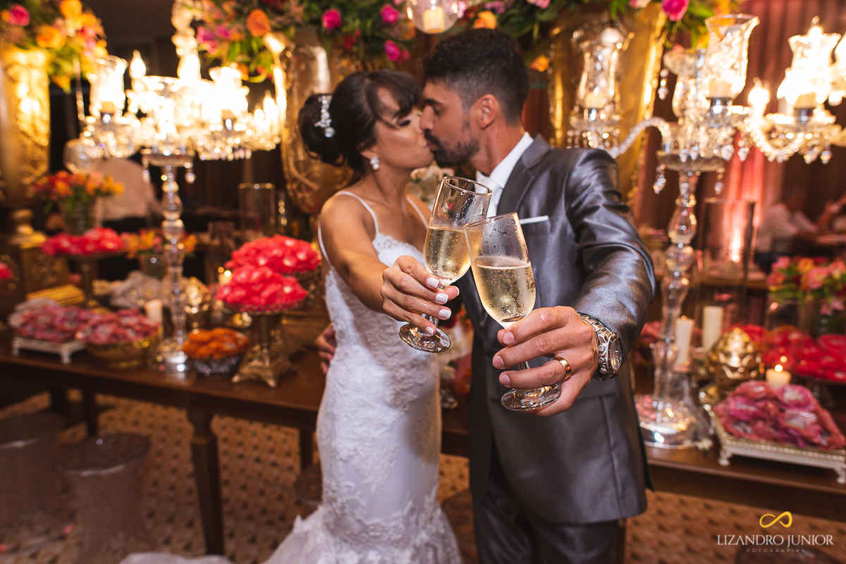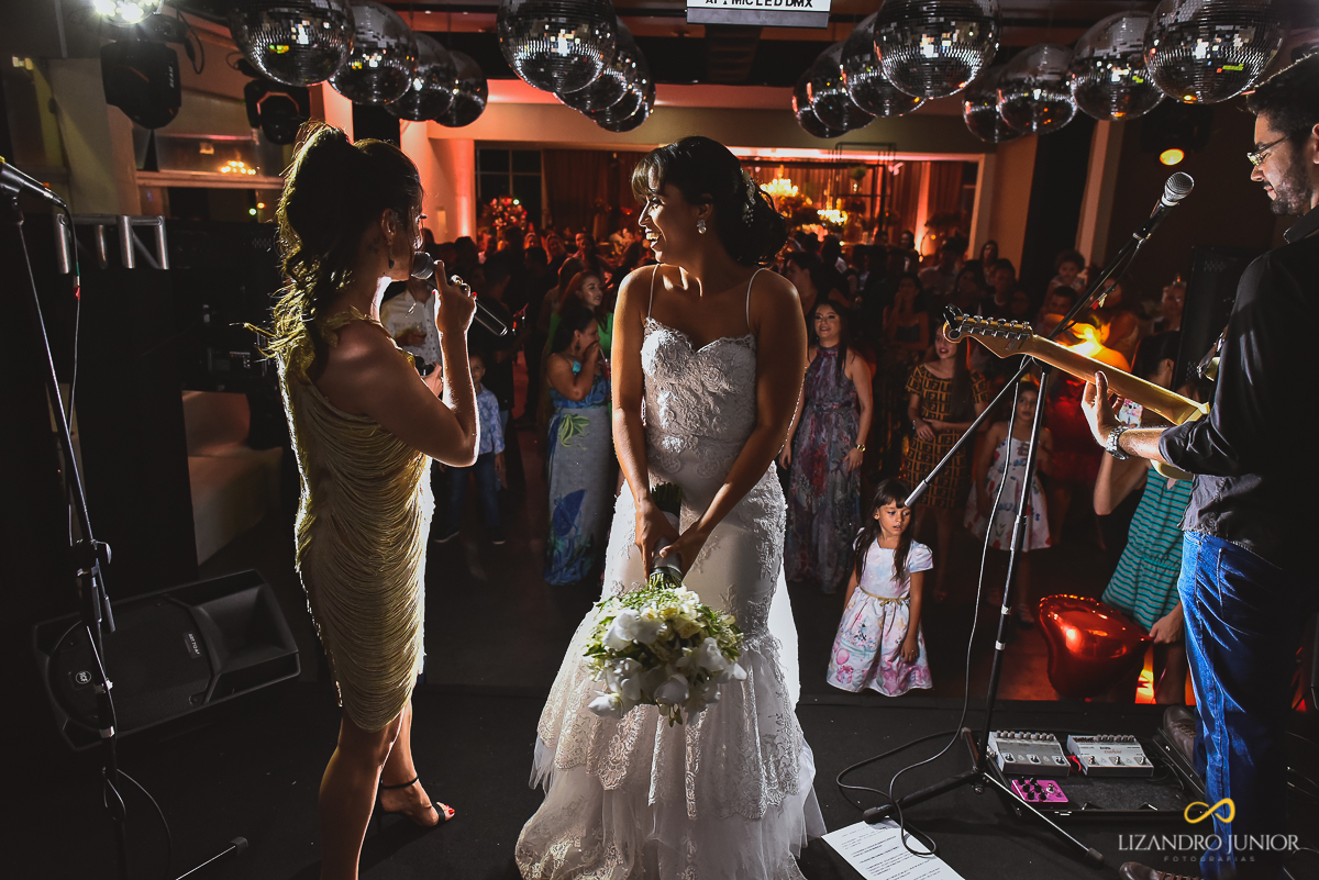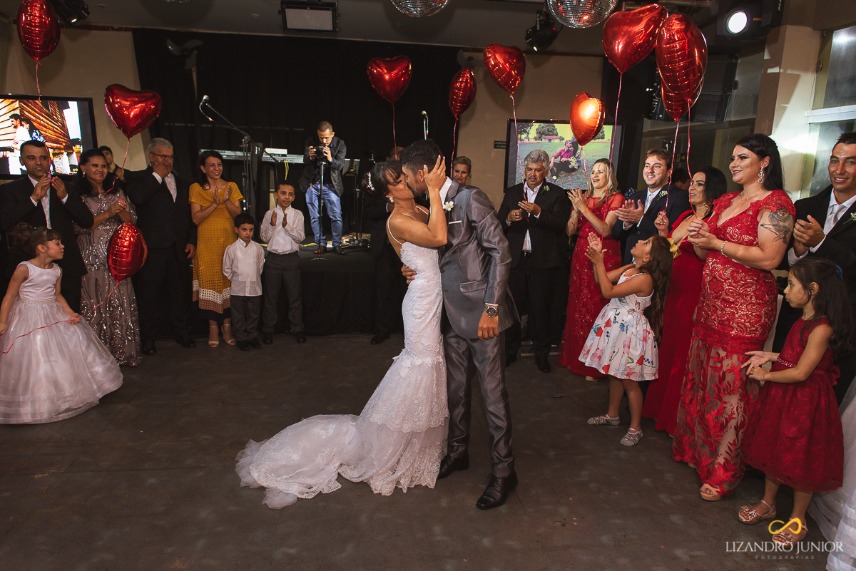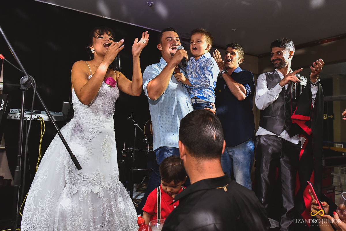 Depois de uma cerimônia linda, o casal partiu para a recepção. Lá chegando, foram anunciados como o mais novo casal da noite. E embalados pela música, dançaram sua primeira valsa. Junto com os padrinhos e madrinhas, brindaram e comemoraram muito aquele momento. A pista ficou pequena diante de tantas pessoas que dançaram ao som de Rejane e Banda que animou e cantou de tudo. Os noivos curtiram, brindaram, riram e foram amplamente cumprimentados por todos. Foi realmente uma festa inesquecível que agora você pode conferir em forma de imagens lindas!
