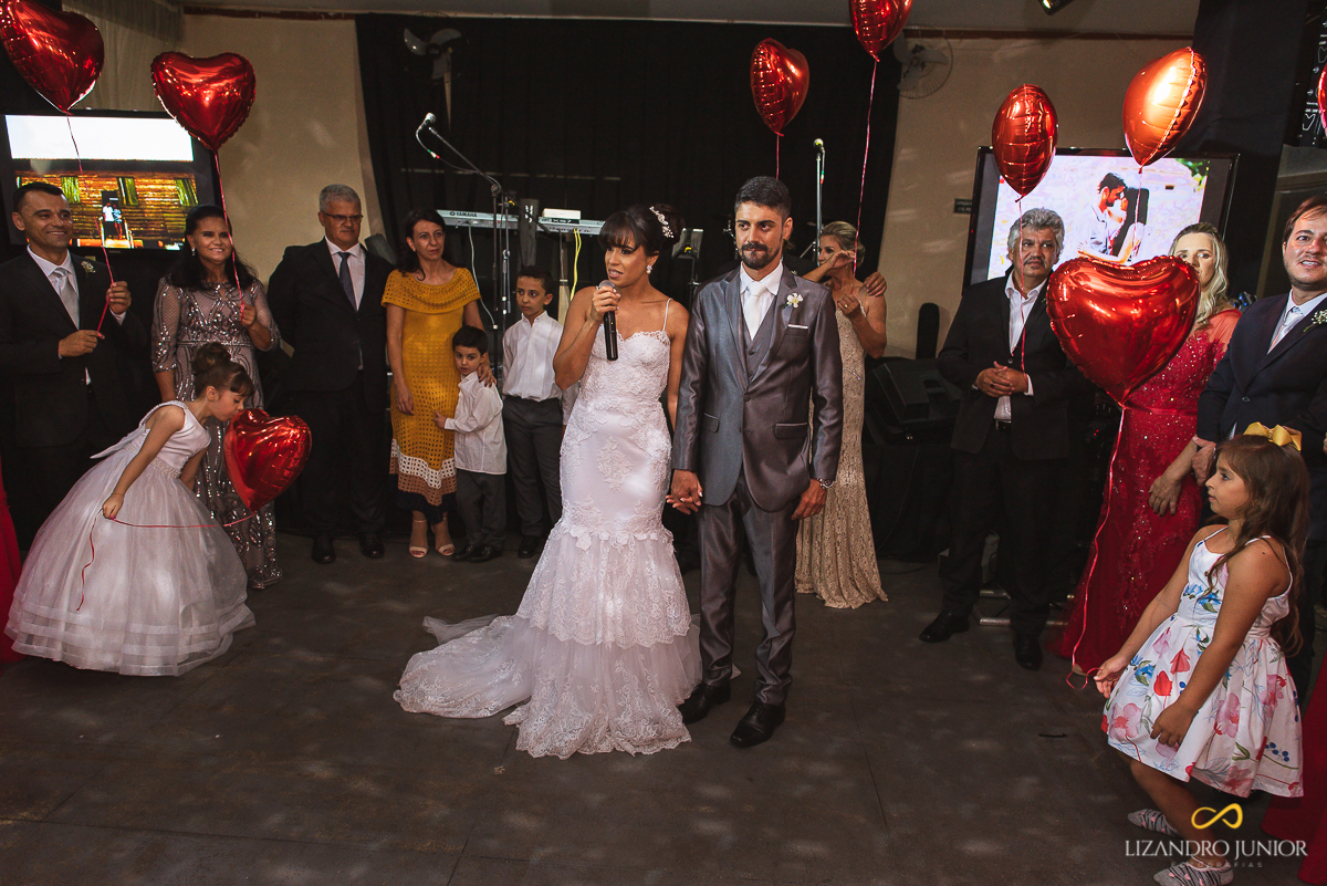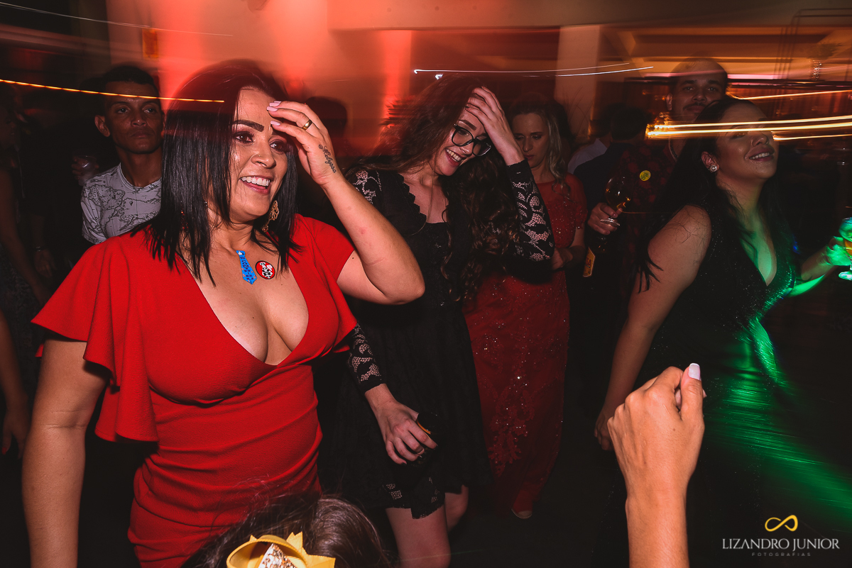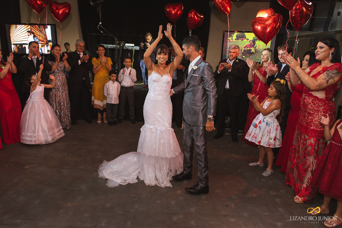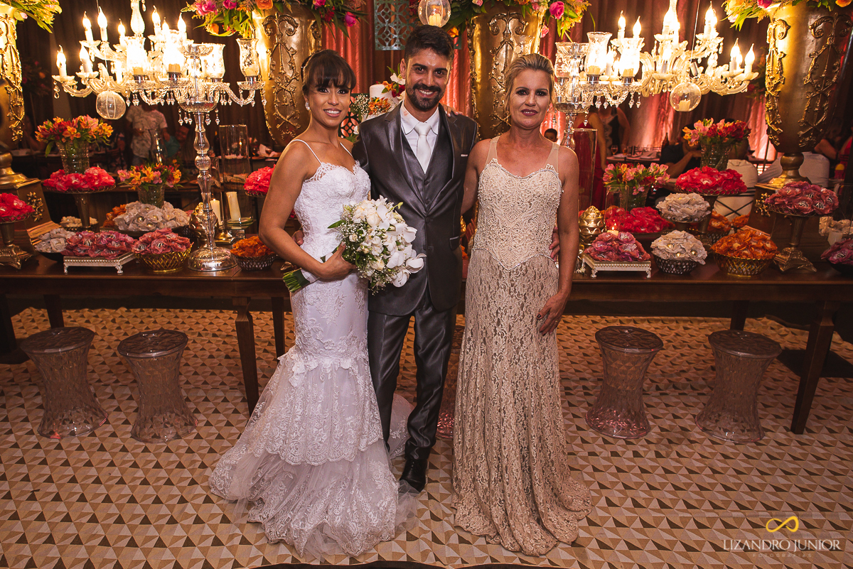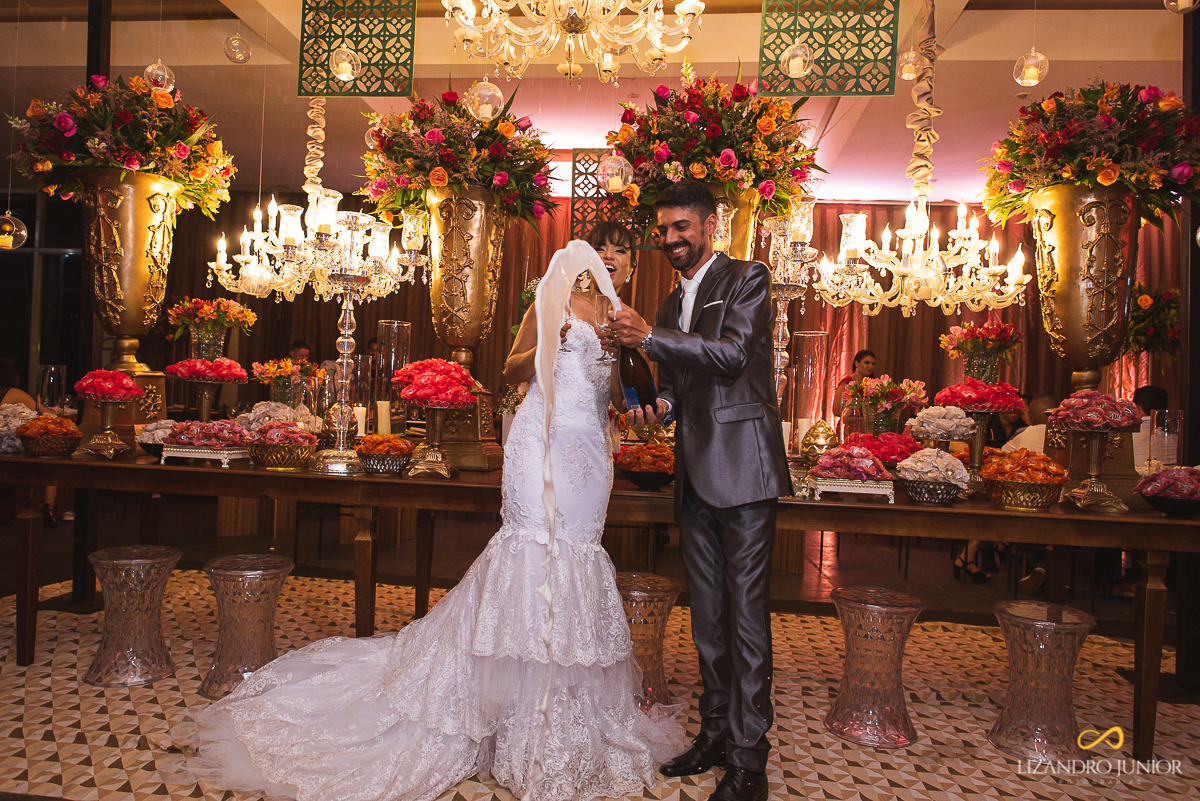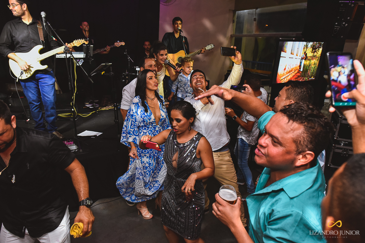 Depois de uma cerimônia linda, o casal partiu para a recepção. Lá chegando, foram anunciados como o mais novo casal da noite. E embalados pela música, dançaram sua primeira valsa. Junto com os padrinhos e madrinhas, brindaram e comemoraram muito aquele momento. A pista ficou pequena diante de tantas pessoas que dançaram ao som de Rejane e Banda que animou e cantou de tudo. Os noivos curtiram, brindaram, riram e foram amplamente cumprimentados por todos. Foi realmente uma festa inesquecível que agora você pode conferir em forma de imagens lindas!