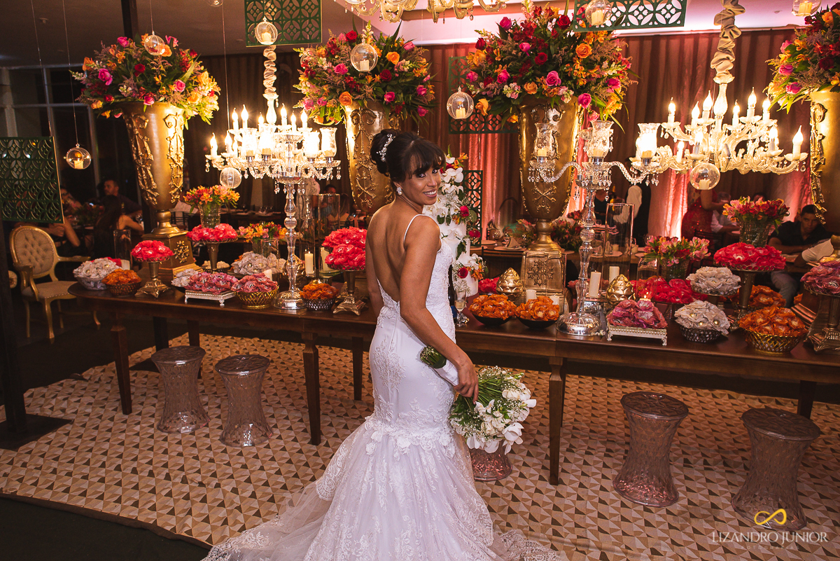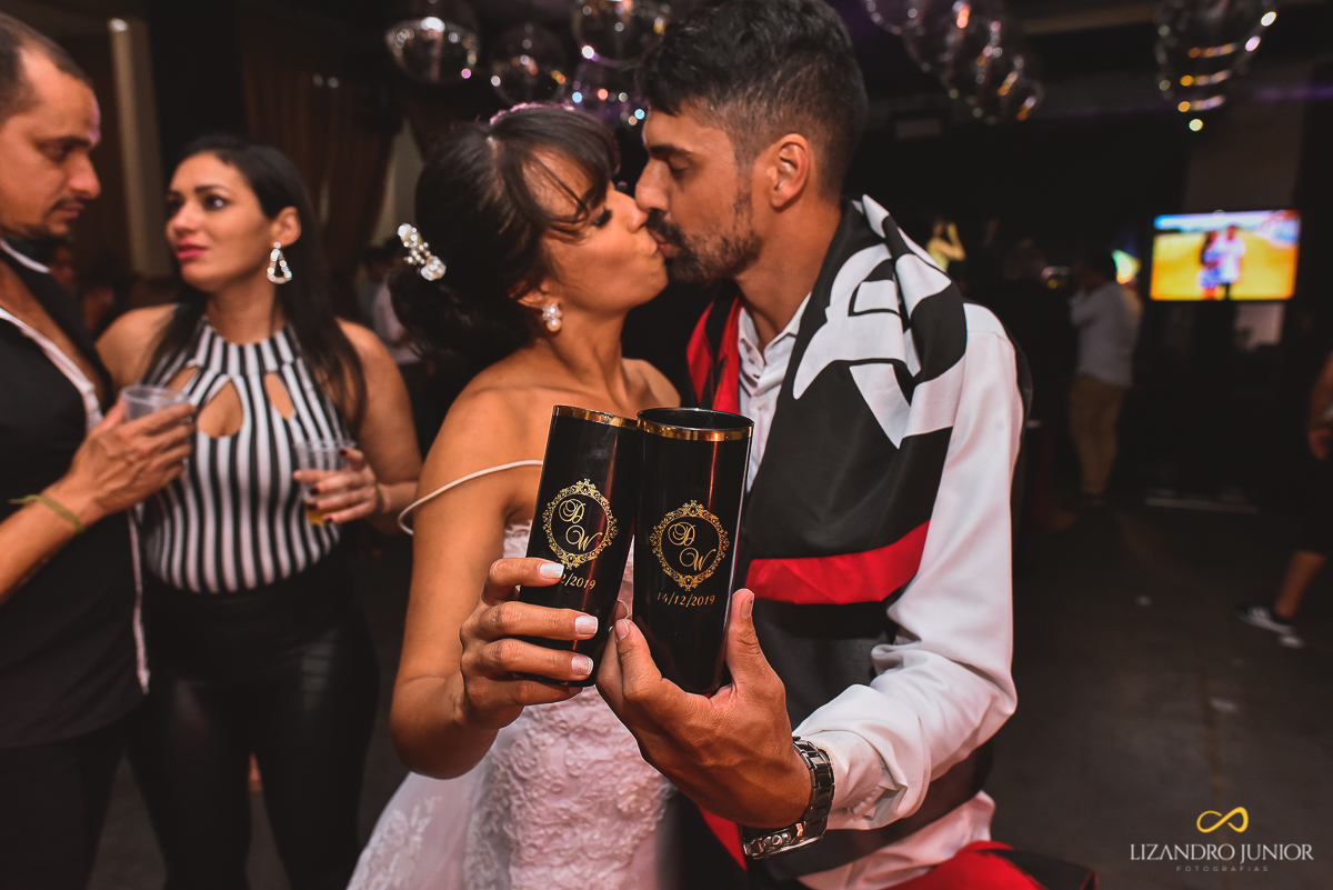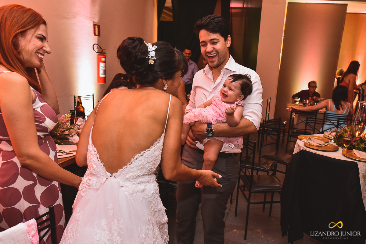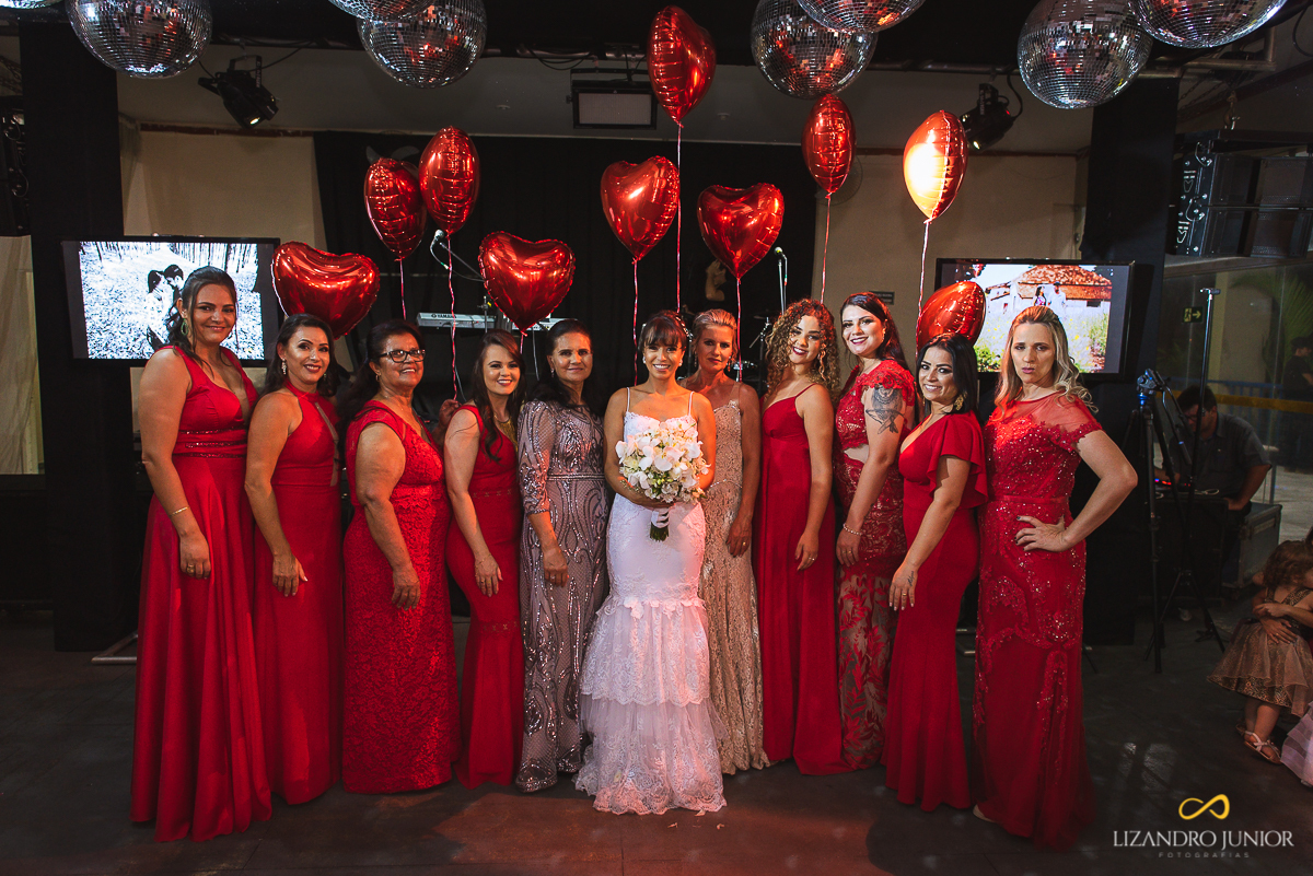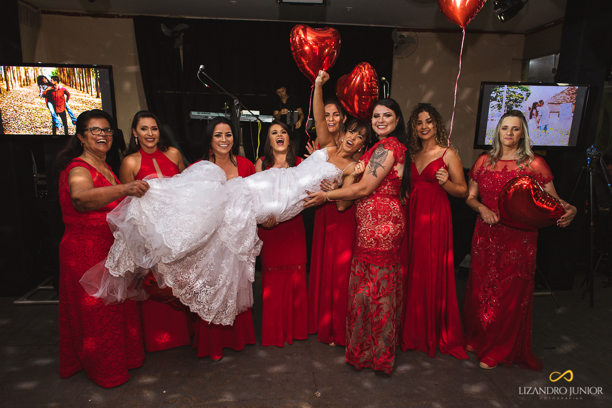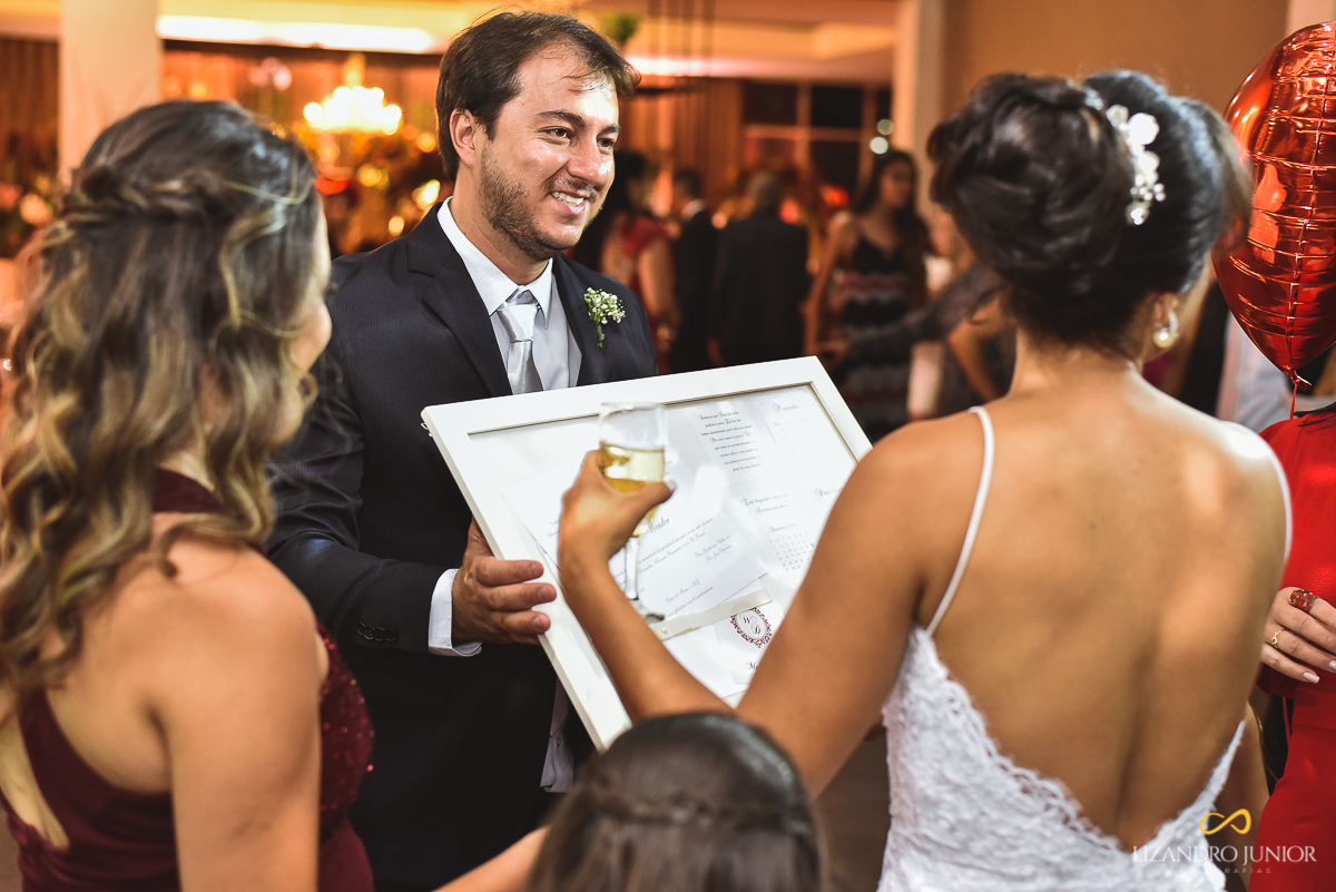 Depois de uma cerimônia linda, o casal partiu para a recepção. Lá chegando, foram anunciados como o mais novo casal da noite. E embalados pela música, dançaram sua primeira valsa. Junto com os padrinhos e madrinhas, brindaram e comemoraram muito aquele momento. A pista ficou pequena diante de tantas pessoas que dançaram ao som de Rejane e Banda que animou e cantou de tudo. Os noivos curtiram, brindaram, riram e foram amplamente cumprimentados por todos. Foi realmente uma festa inesquecível que agora você pode conferir em forma de imagens lindas!