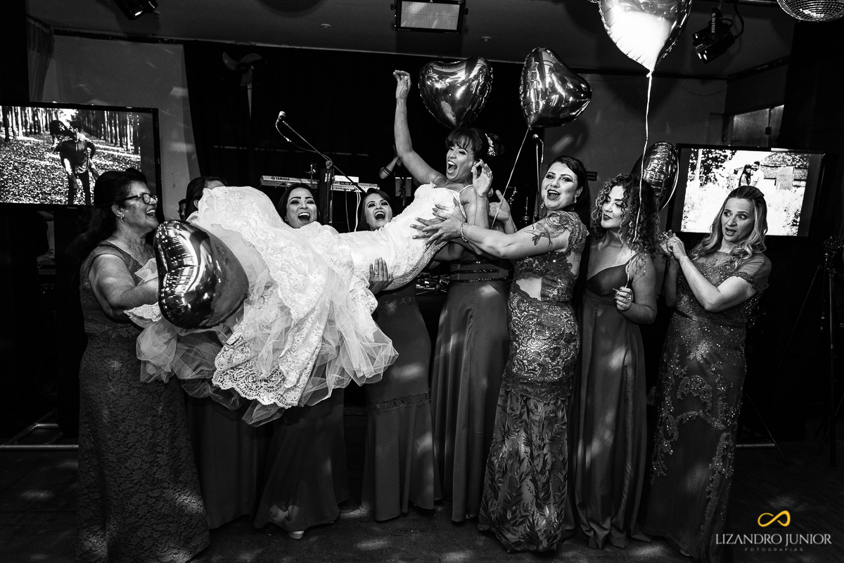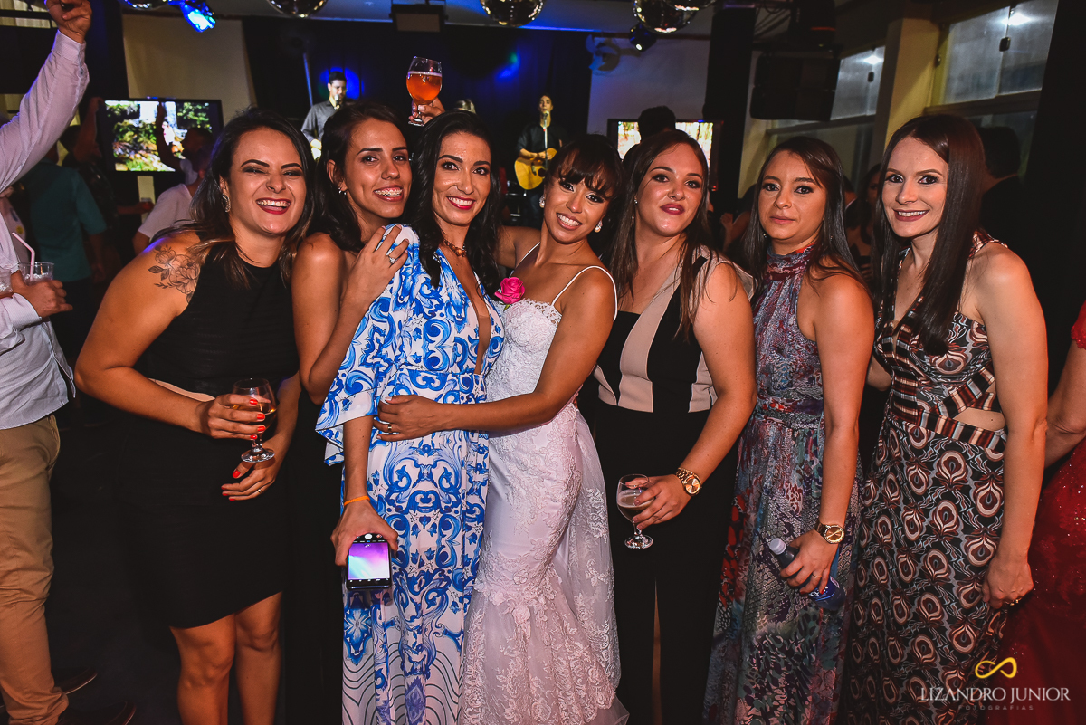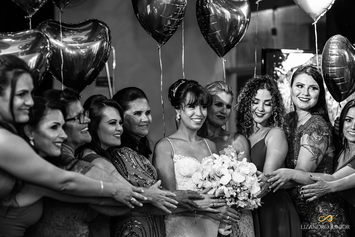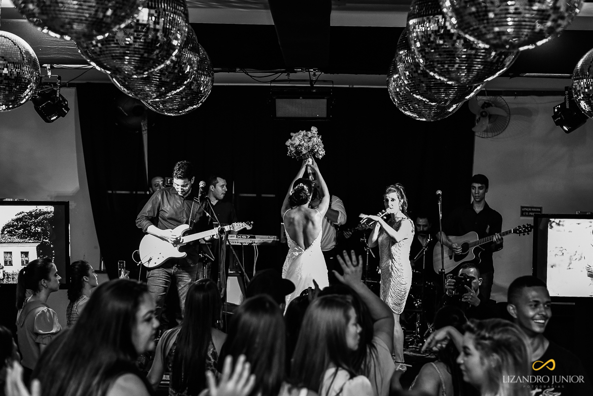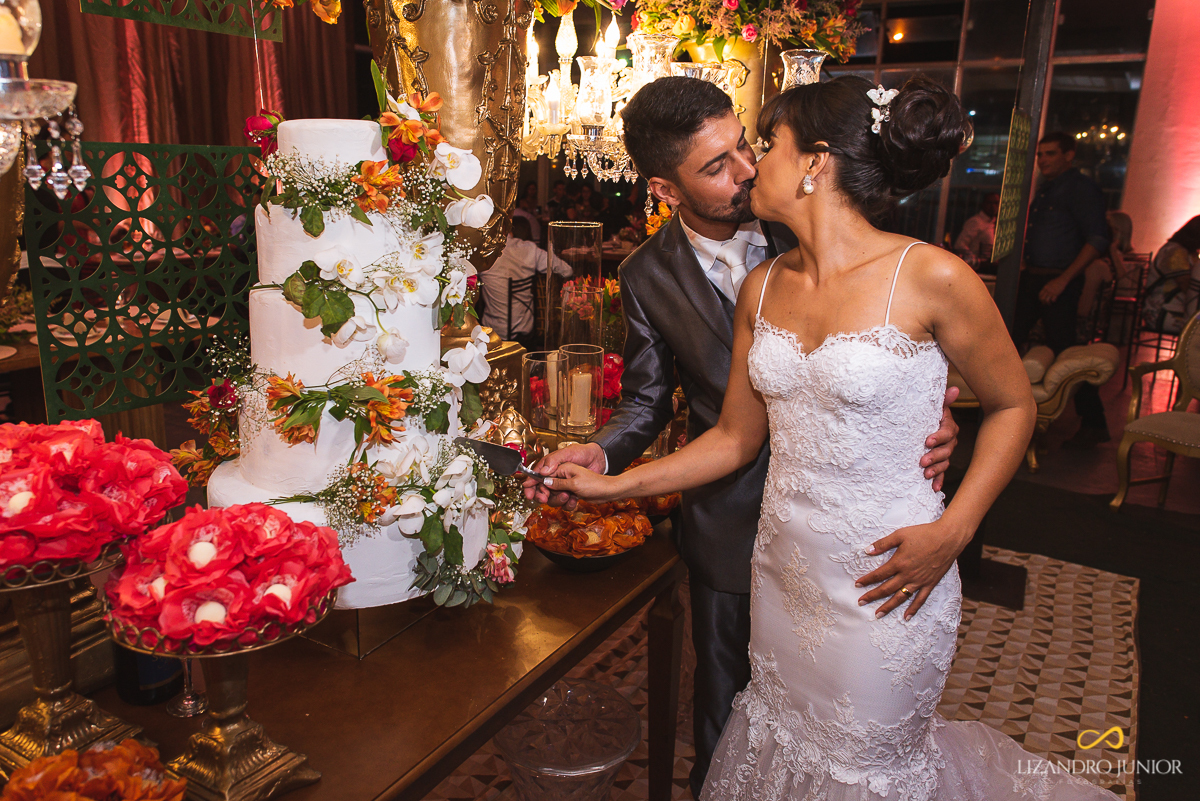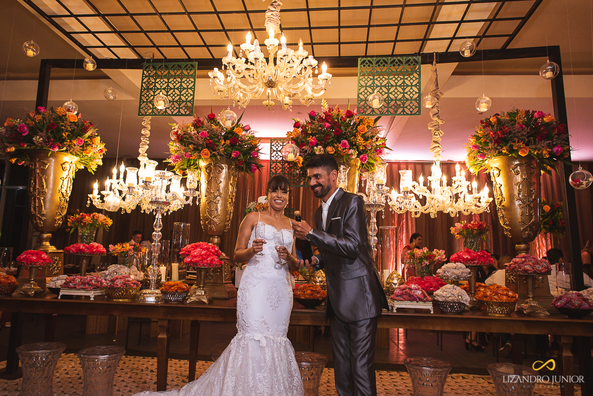 Depois de uma cerimônia linda, o casal partiu para a recepção. Lá chegando, foram anunciados como o mais novo casal da noite. E embalados pela música, dançaram sua primeira valsa. Junto com os padrinhos e madrinhas, brindaram e comemoraram muito aquele momento. A pista ficou pequena diante de tantas pessoas que dançaram ao som de Rejane e Banda que animou e cantou de tudo. Os noivos curtiram, brindaram, riram e foram amplamente cumprimentados por todos. Foi realmente uma festa inesquecível que agora você pode conferir em forma de imagens lindas!
