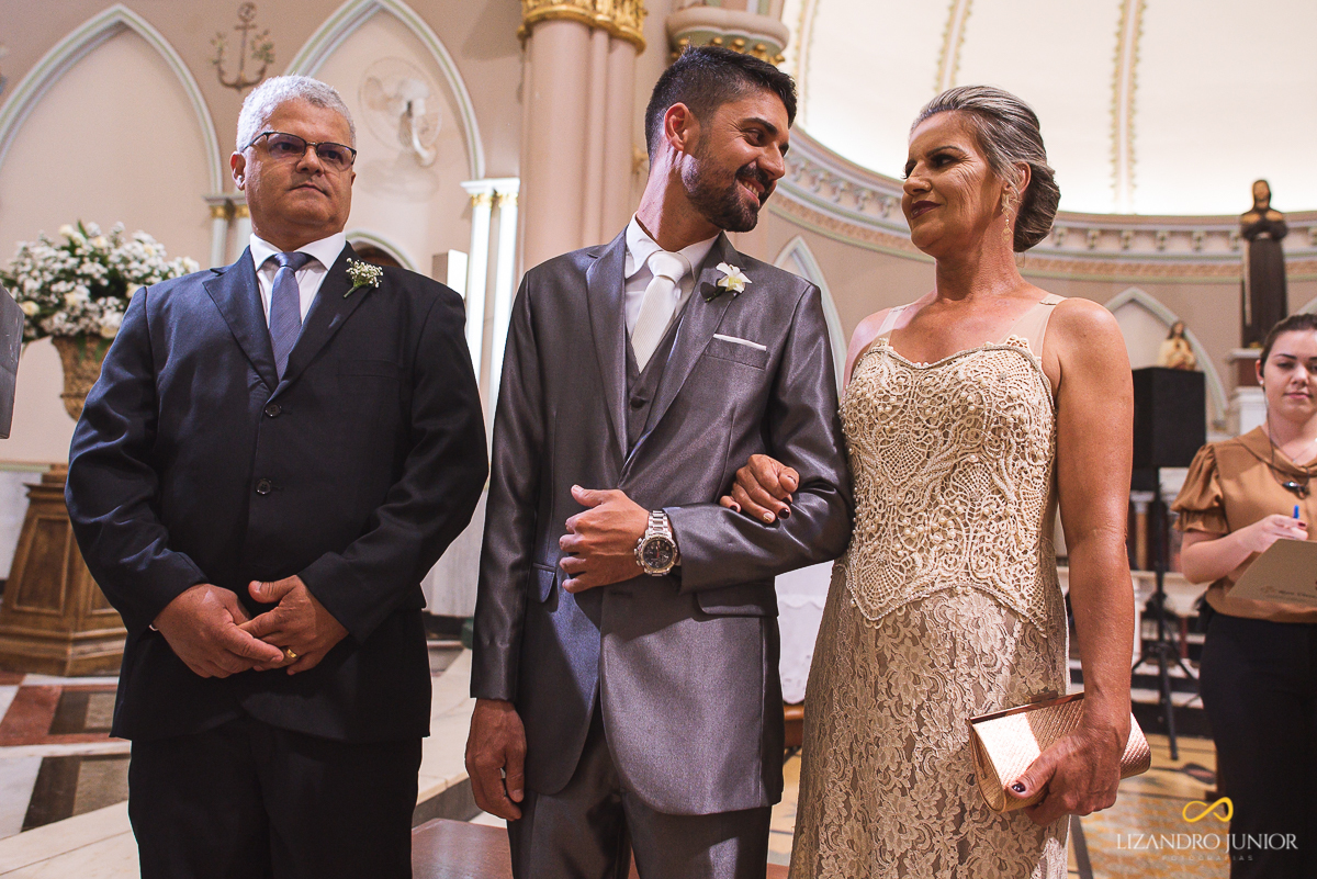 Poucos minutos a frente, os dois estariam juntos. Aos poucos, a noiva estava sendo finalizada com sua produção impecável. O noivo Wender já estava ansioso na porta da igreja. Recebendo os cumprimentos dos convidados e com o coração palpitando no peito. Os padrinhos já alinhados na porta anunciavam que a noiva estava prestes a chegar. Enfim, a cerimônia começa!