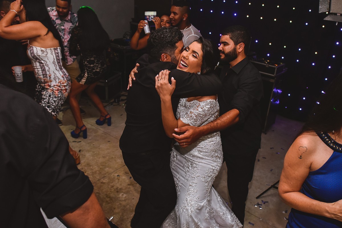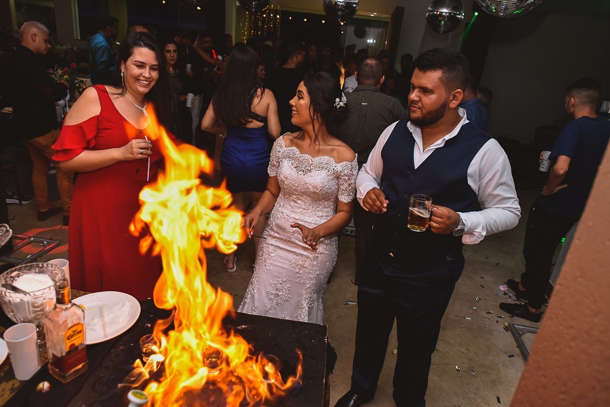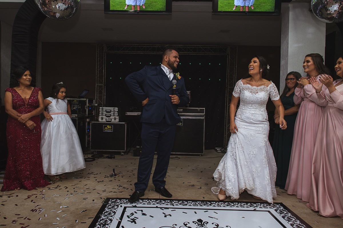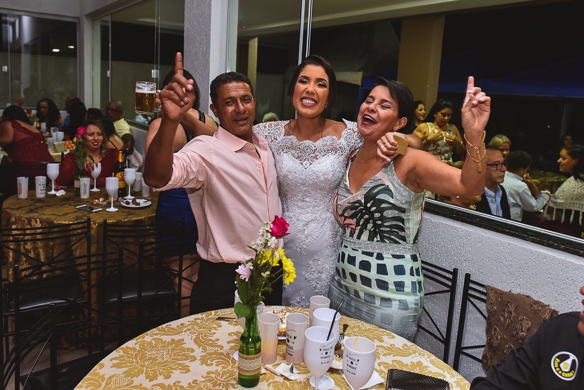 Chegando na recepção, os noivos entraram arrasando na pista. Um modão de viola empolgou à todos que estavam aguardando os recém-casados. Dançaram, festejaram e compartilharam da sua alegria com cada um dos convidados. Teve até um pedido de casamento planejado pelo irmão do noivo. Enquanto a noiva fingia jogar o buquê, ele se preparou. Paula entregou um buquê especial nas mãos da futura cunhada e ela recebeu o pedido de casamento. Lógico que a resposta foi SIM! haha E a alegria foi tão contagiante que até eu entrei na dança haha, só confere as fotos.