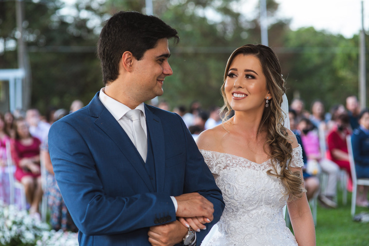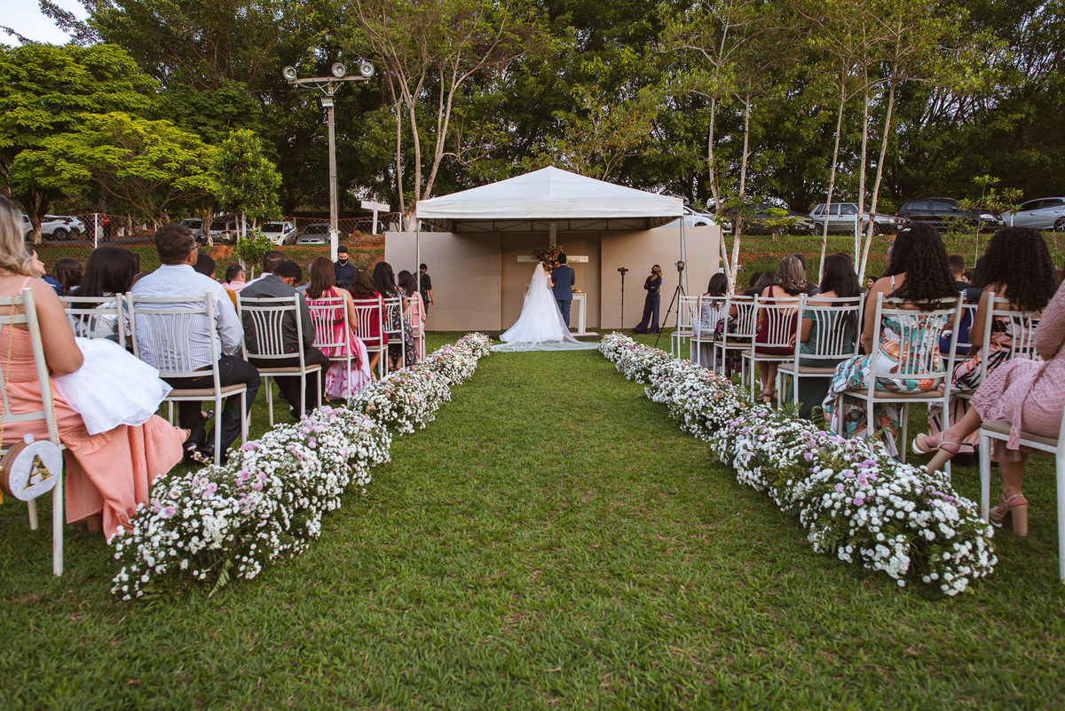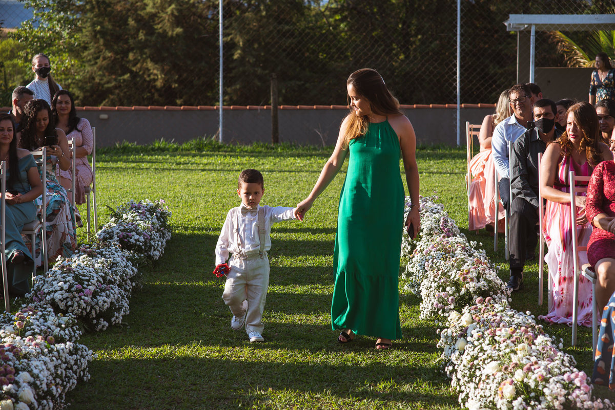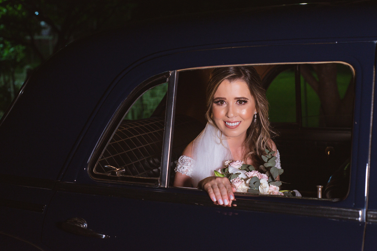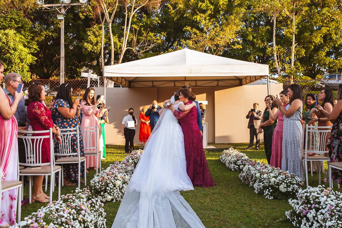 Isabela escolheu o veículo Ford 1929 da Neo Old Car que é um charme à parte. Ali se uniu a beleza da noiva com o charme desse carro maravilhoso. Iniciada a cerimônia, Wilton caminhou juntamente com sua mãe rumo ao altar logo após os pajens também entrarem. Uma das daminhas entrou correndo e muito sorridente. Esse momento foi muito divertido! Agora, Wilton se despediu de sua mãe e aguardou a entrada triunfal da sua noiva. Isabela preparou uma surpresa muito, mas muito emocionante mesmo. Seu papai faleceu há algum tempo e ela fez questão de homenagear seu genitor. Foi recitado um texto belíssimo e enquanto era falado, seu avô entrou carregando a foto do seu filho (Papai da noiva) e com um balão escrito "PAI", que simbolizava a presença dele na cerimônia.