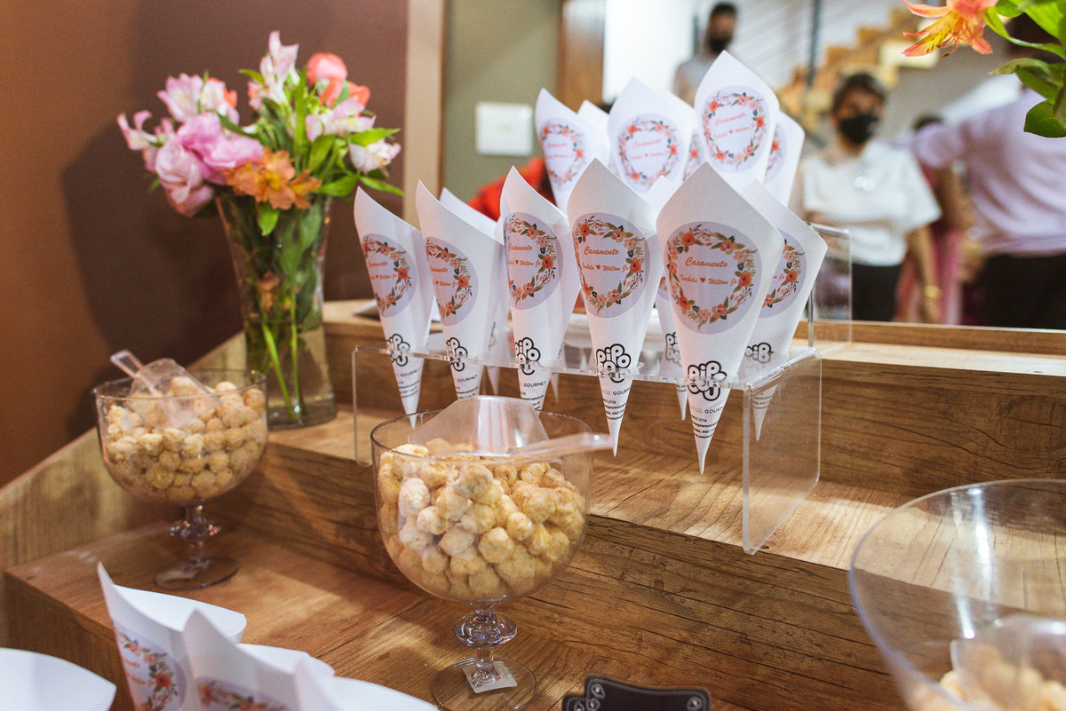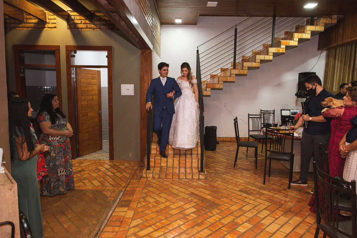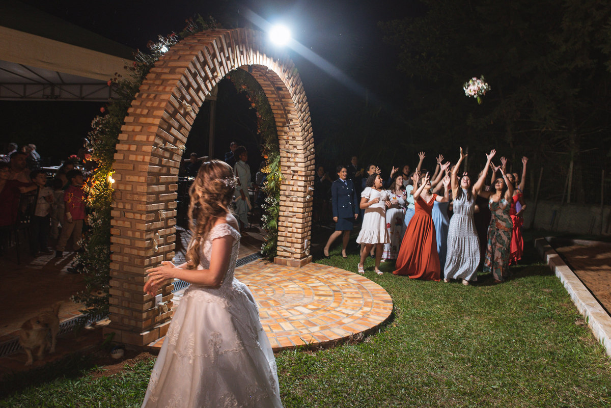 A recepção foi totalmente decorada pelas mãos de Neimar Ferreira e estava maravilhosa. os convidados já estavam todos aguardando a entrada dos noivos, que surgiram e foram recepcionados por todos. Tivemos um vídeo surpresa que a Faelo Films preparou para os dois e logo após, o avô da noiva fez outra surpresa: Do alto dos seus 84 anos, ele cantou uma música para os dois. Desejando todas as mais ricas bênçãos sobre eles, o vovô cantou e encantou todo mundo. Após essas homenagens, tivemos o corte da gravada e as fotos de praxe. Não posso deixar de comentar que a barra do vestido da noiva tinha os nomes das madrinhas que queriam muito pegar o buquê. E uma delas foi a sortuda!