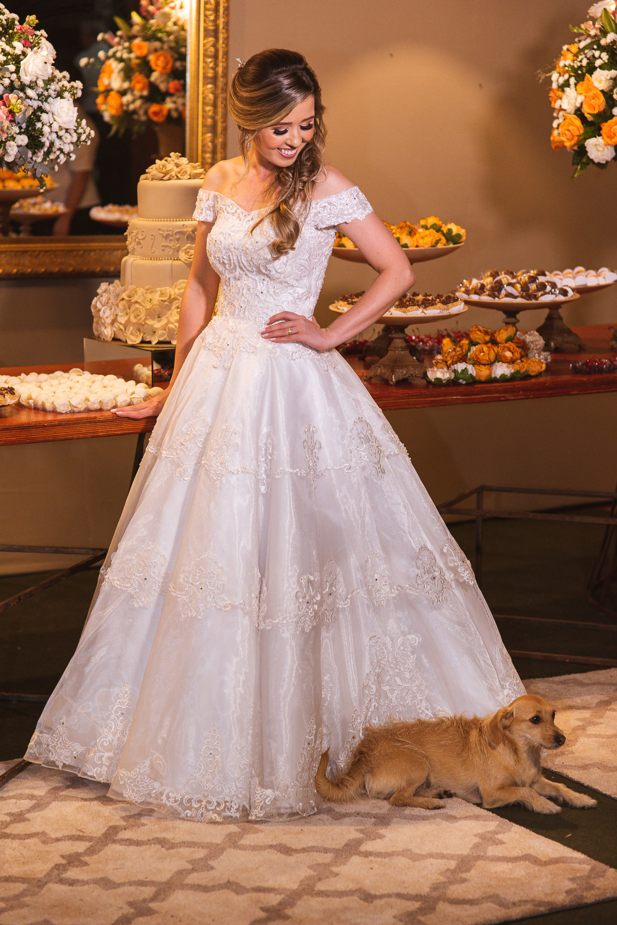 Fotos para lá e pra cá, muitos sorrisos e histórias e a noiva me fala que desejaria muito fazer uma foto com sua cachorrinha Mel (Que participou do ensaio). Eu, prontamente disse que se conseguissem trazer ela pra cá eu faria na hora as fotos. Enquanto ela não chegava, fomos fazendo as fotos de praxe, com brinde e tudo mais. Isabela recebeu um presente do seu noivo que arrancou um sorriso lindo de seu rosto. E claro, ela fez questão de mostrar pra todo mundo. Ela não deixou por menos e também presenteou seu noivo que recebeu emocionado o mimo. Assim, Mel chegou e fizemos a tão sonhada foto! Ela toda espoletinha que é, correu pra todo lado conhecendo o local. Fez uma festa!