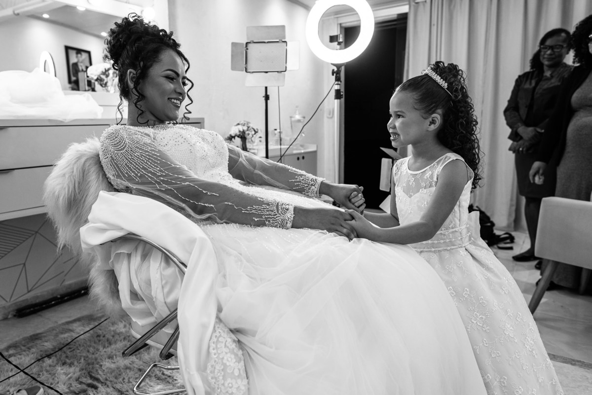 Como de praxe, tomamos aquele café reforçado na padaria Pão Francês e já ficamos prontos aguardando o horário de iniciarmos os trabalhos. Chegando no local do making of, Lorena estava lá quase pronta. Finalizando sua produção, estava o profissional Daniell Makeup, que caprichou e realçou ainda mais a beleza de Lorena. A mãe da noiva também esteve lá, juntinho com ela em todos os momentos até que ela ficou prontinha. Fizemos algumas fotos com a mamãe, a irmã da noiva e também a sua sobrinha que foi daminha do casamento.