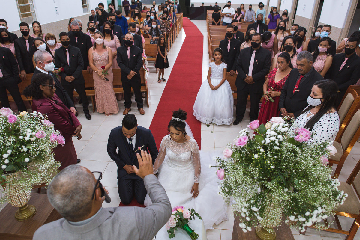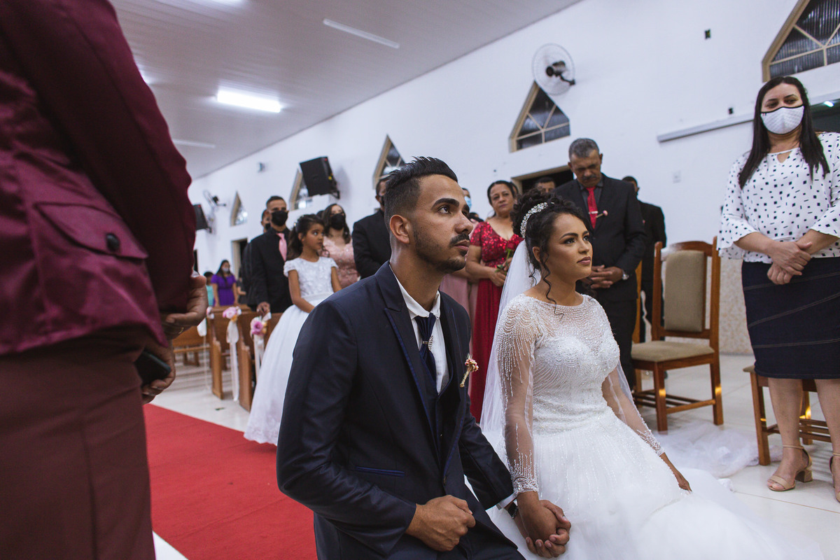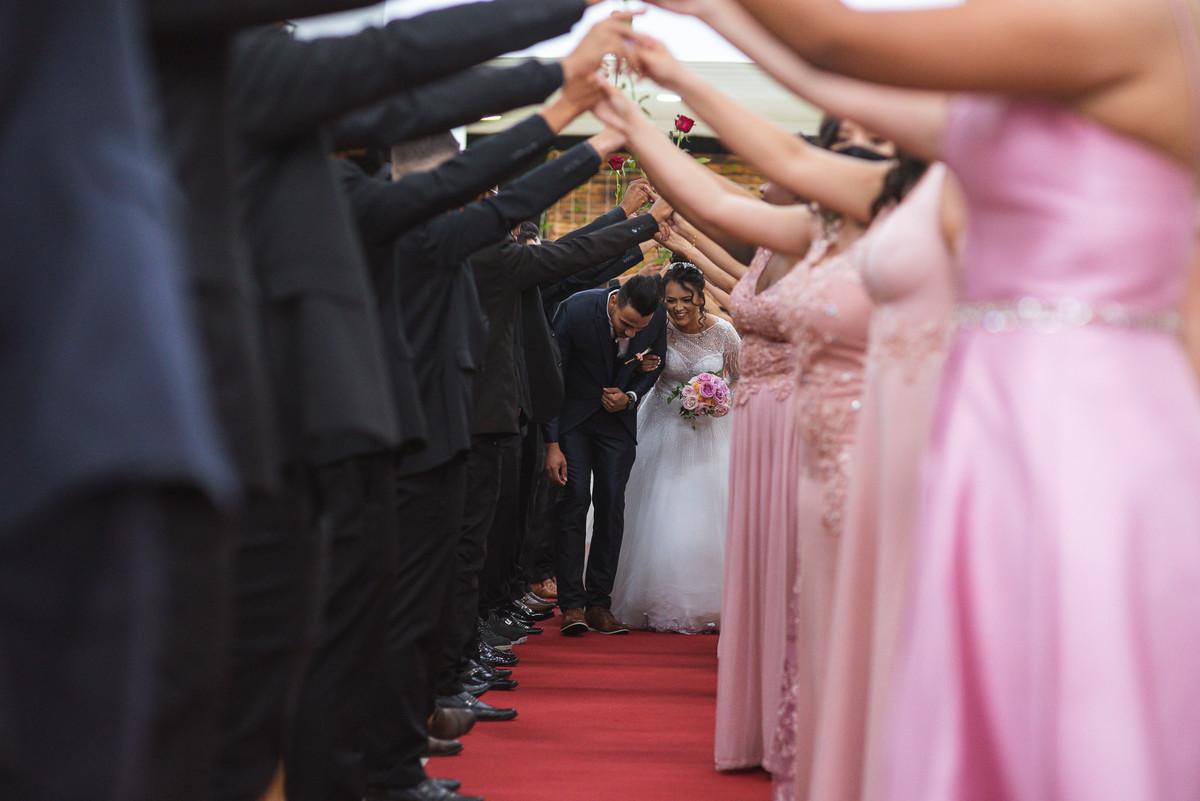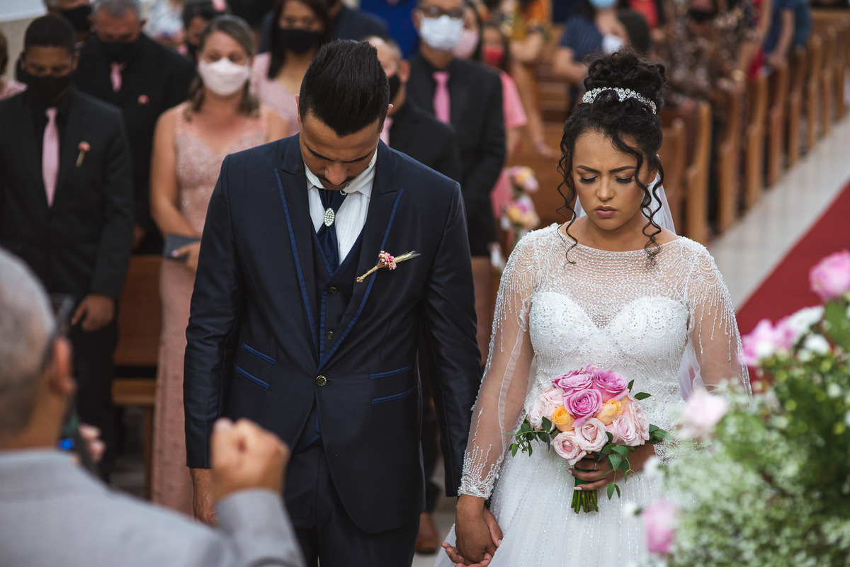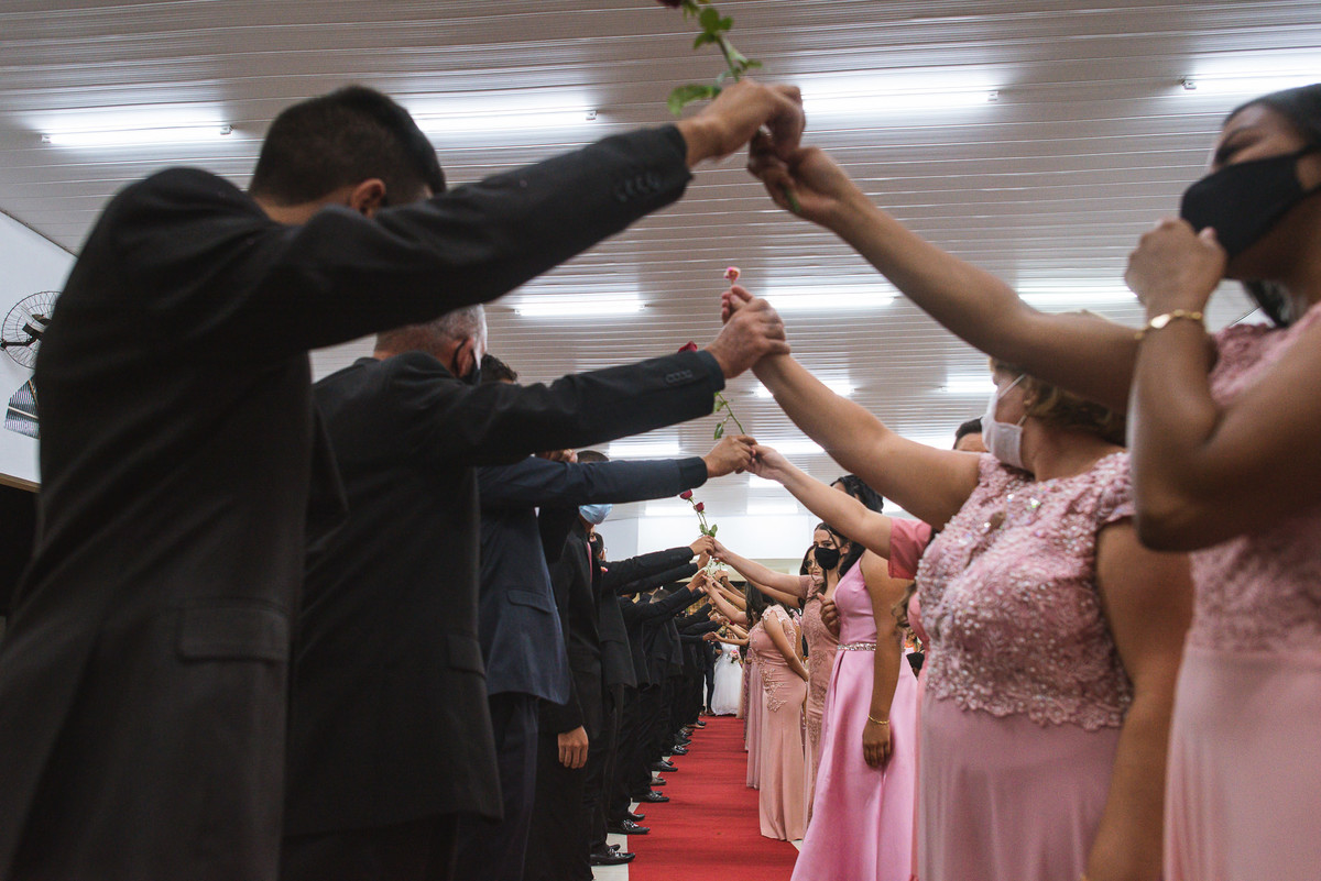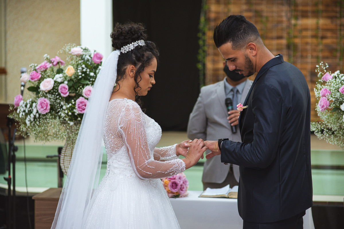 Depois de alguns longos passos, era chegada a hora de se despedir dos pais e receber seu noivo. Assim, os dois se encontraram e caminharam juntos rumo à bênção de Deus sobre o seu casamento. O pastor Luiz Cláudio recebeu os nubentes e lhes preparou uma palavra maravilhosa sobre o amor e todas as dificuldades que eles enfrentariam durante toda a vida de casados. Mas não pense que foram só palavras sobre a dificuldade. Ele também lhes falou acerca das maravilhosas coisas que a união os traria, como a parceria, o cuidado um com o outro e o carinho.