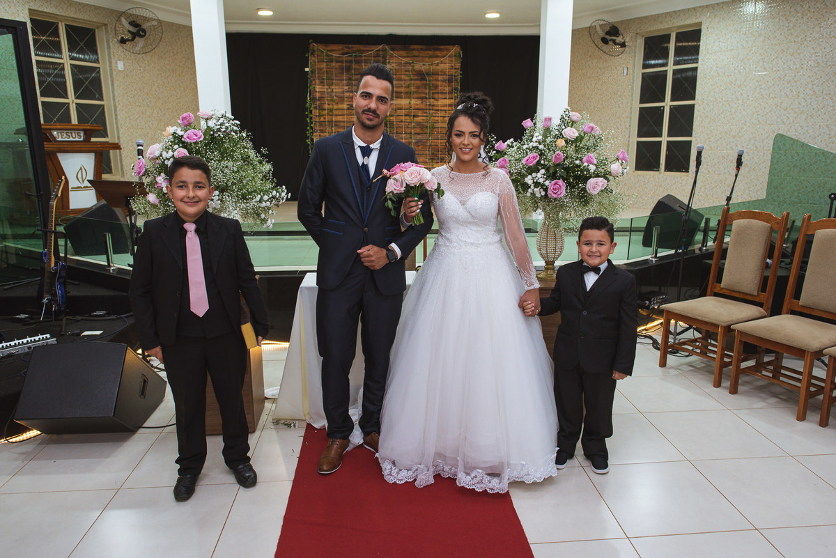 Logo após a palavra, eles receberam as alianças, foram abençoados pelo Pastor e toda a Igreja, juntamente com seus pais e padrinhos. A celebração se encerrou ali, os noivos receberam os cumprimentos dos convidados e nosso trabalho foi finalizado.
