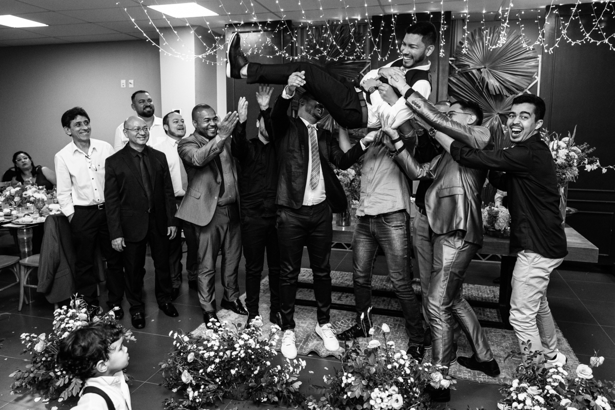 Depois de toda essa cerimônia linda, fizemos um mini ensaio no hall de entrada do hotel. Denise e Paulo receberam os cumprimentos dos convidados e comemoraram bastante junto com seus padrinhos e familiares.