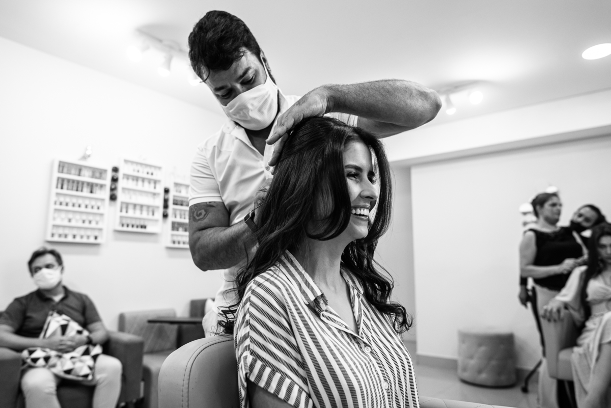 Começamos o dia do casamento com o Making of do noivo. Chegando na casa de Paulo Miguel, nós planejamos como seriam as fotografias e o noivo foi se arrumar. Lá estavam também o seu pai e o irmão Caio. Fizemos algumas fotos e pedi que Caio auxiliasse o noivo com a gravata e o terno. Caio que, por sinal é extremamente engraçado, fez tudo ficar ainda mais suave e tranquilo, apesar de toda ansiedade do grande dia. Enquanto o irmão do noivo o auxiliava, lá de cima eu ouvi o Pastor Adair comentando se era preciso que ele se vestisse para também aparecer nas fotos. Eu disse que poderia ser do jeito que ele estivesse, sem necessidade de vestir terno e afins. Assim, completamos o trio: Paulo Miguel, Adair e Caio. Foi um momento muito especial, poder fotografar essa família tão querida em um momento tão importante.