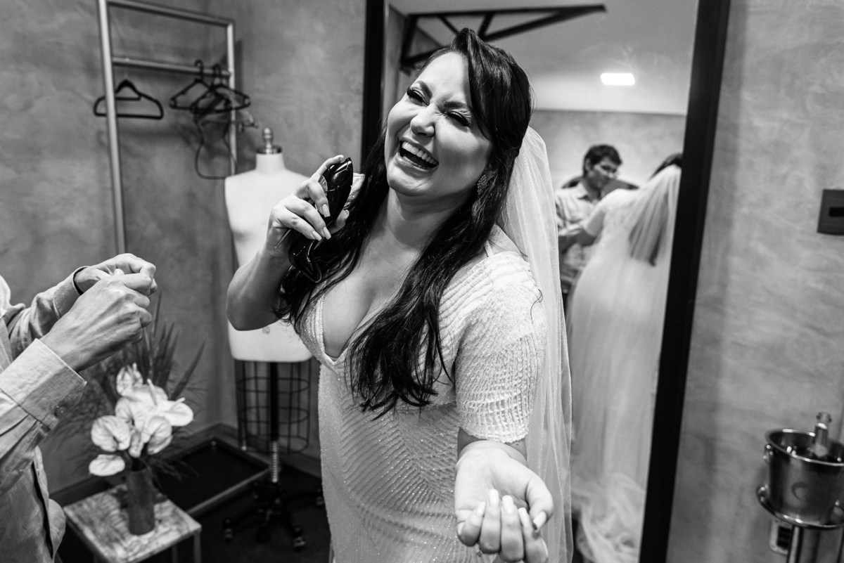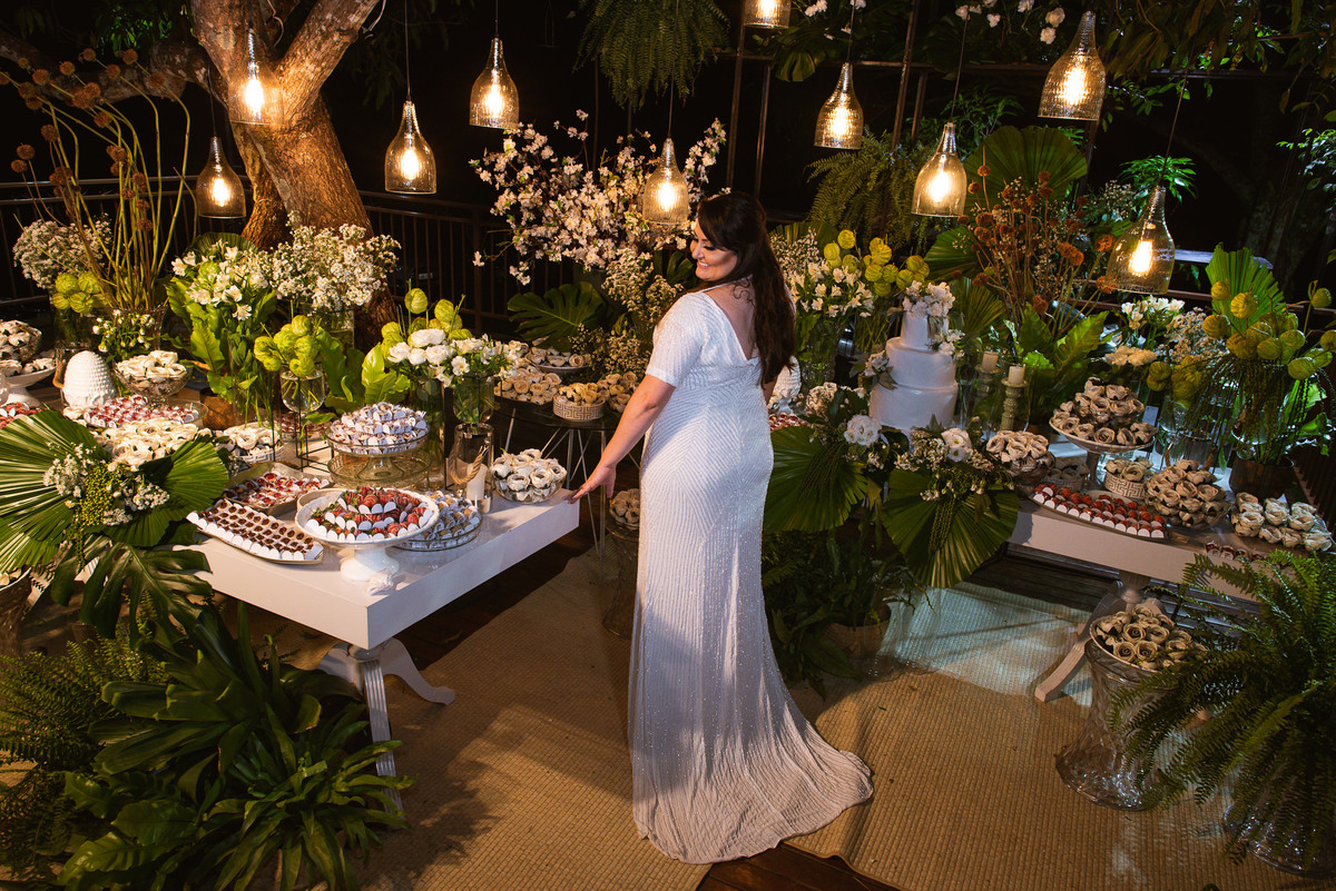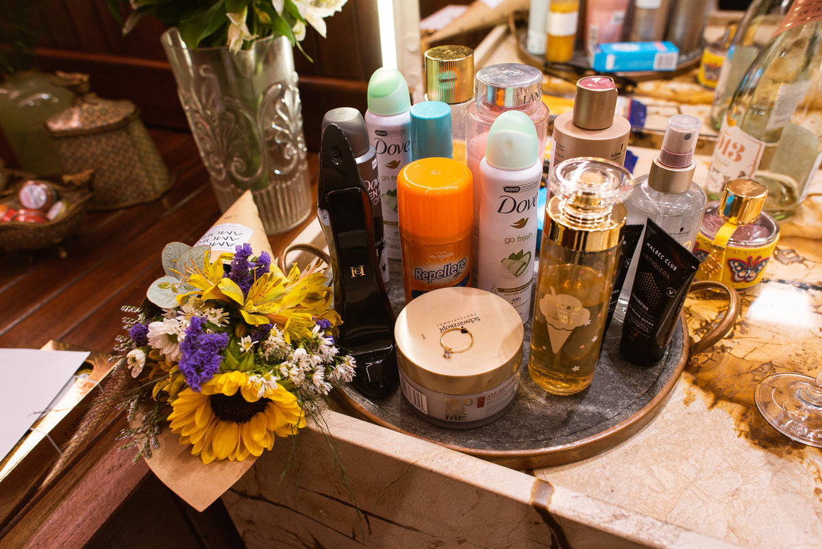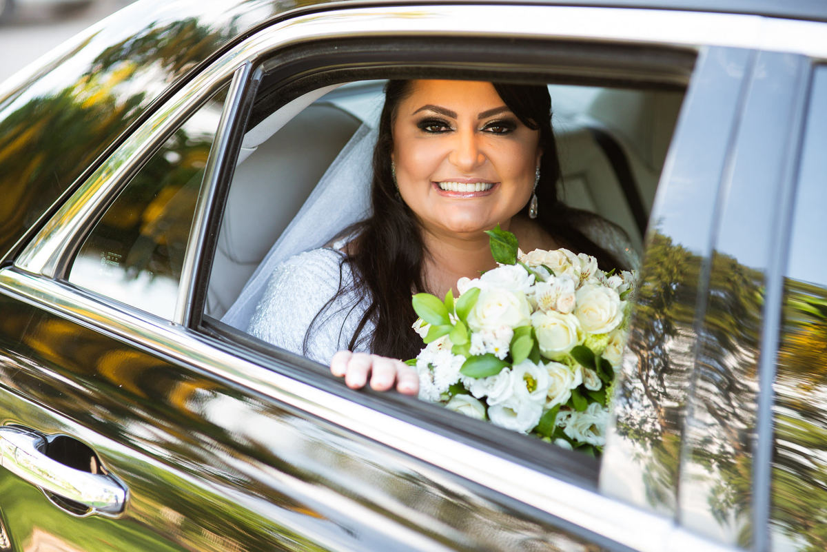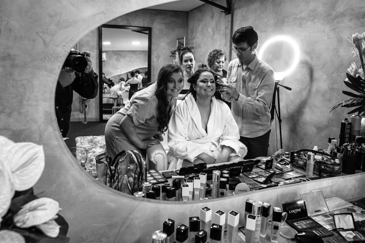 Thiago providenciou uma make exatamente do jeito que a noiva desejou. O penteado escolhido por ela também foi perfeitamente executado da forma com que Dayane havia sonhado. Dona Maria Luisa, mãe da noiva, acompanhou de perto todos os movimentos que aconteciam durante a produção. Sorria, contava histórias e se encantava com a beleza de sua filha. Não poderíamos deixar de citar a beleza da neta, também chamada Maria Luiza que estava linda com seu vestido e produção. Dayane era só sorrisos para todos os lados. Exalava felicidade e muita emoção. Ela mesmo me disse que havia chorado muito durante a semana pensando nos preparativos e sobre como o grande dia estava tão perto...