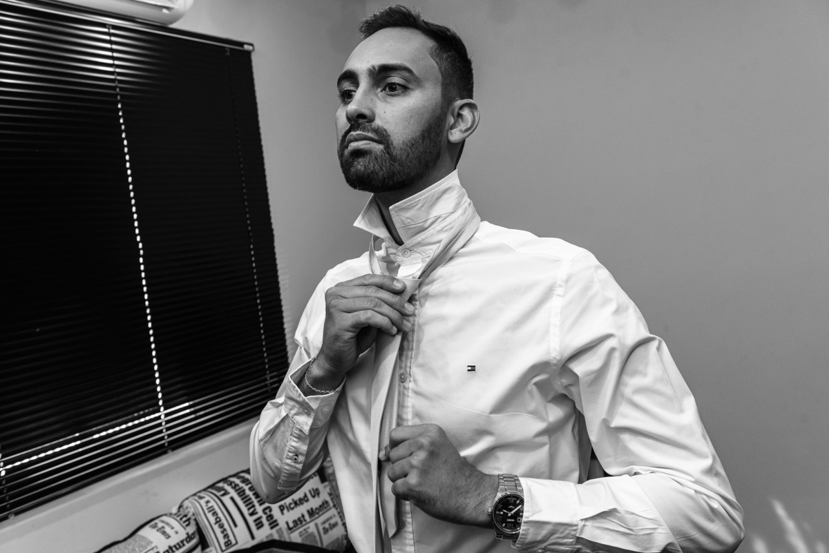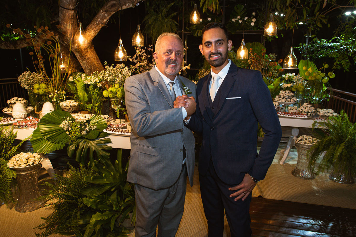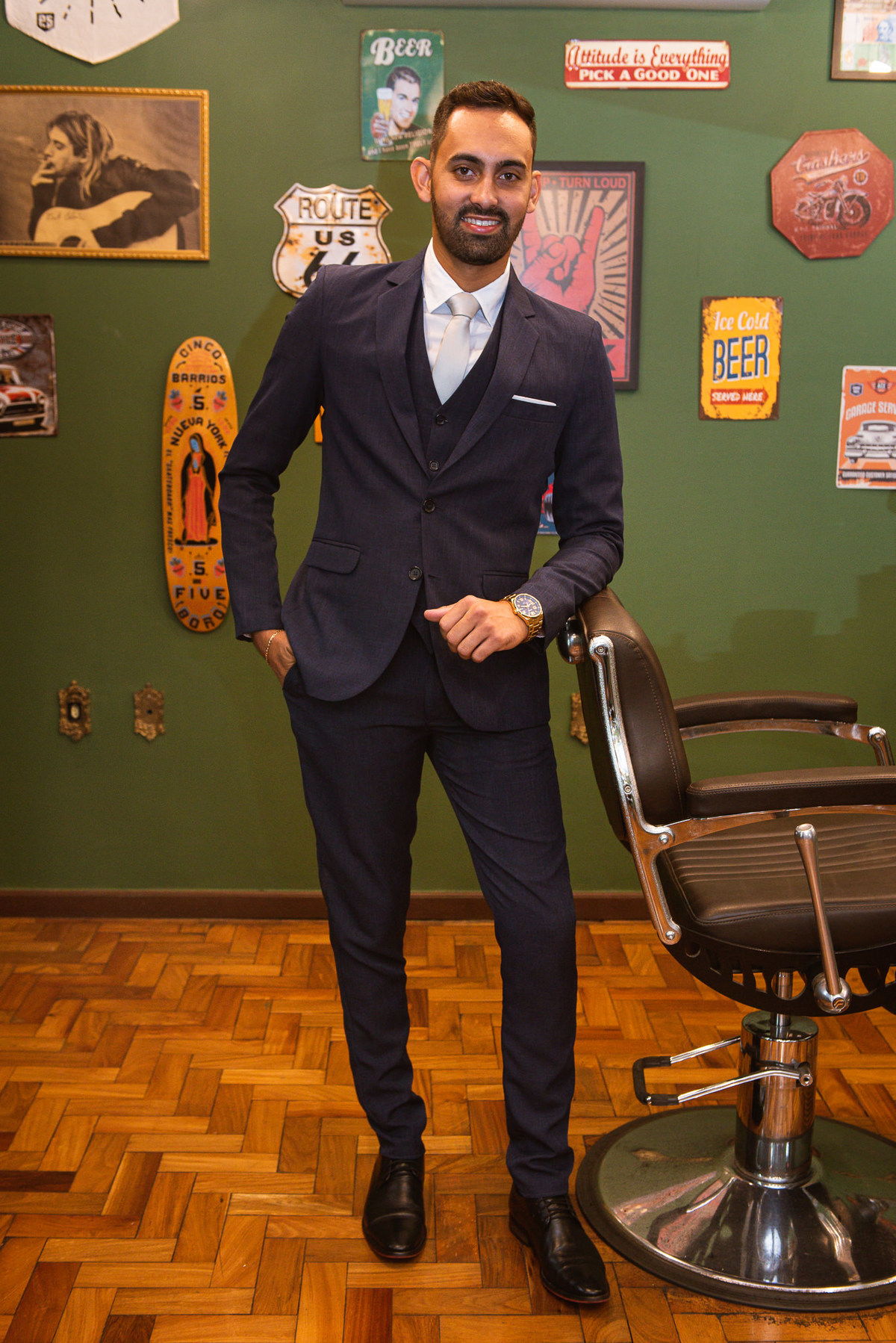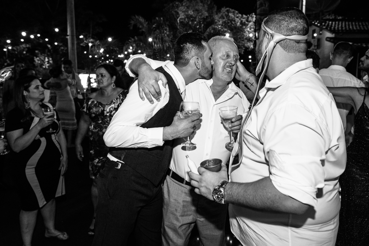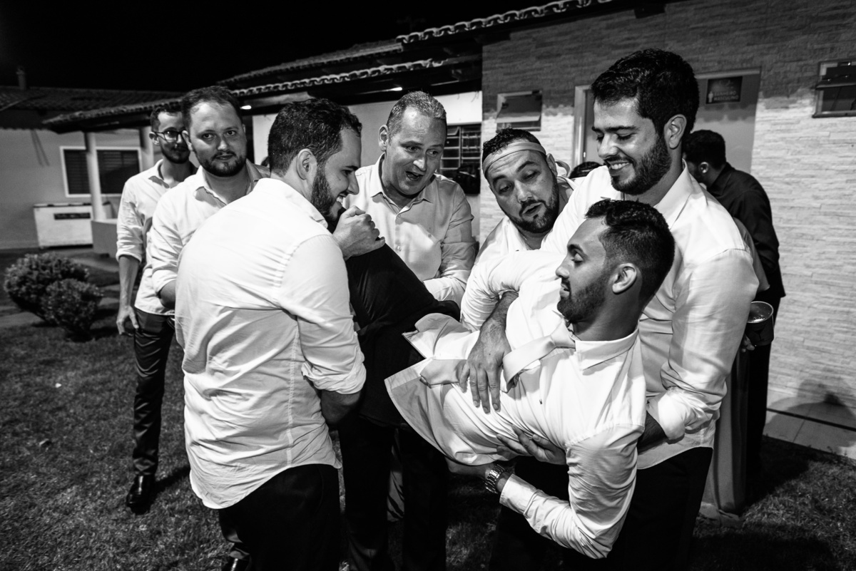 Do outro lado da cidade estava Daniel. Junto com alguns padrinhos, eles fizeram a farra na barbearia Velho Chico. Entre um gole e outro, os padrinhos brincavam com o noivo, deixando-o bem à vontade. O nervosismo quase não foi aparente. Daniel estava sorridente e muito feliz. Ambos aguardavam esse dia com muito anseio, visto que havíamos remarcado o casamento por conta da pandemia. Agora, praticamente sem as restrições, tudo ficou ainda mais satisfatório. Depois de se trajar com o terno assinado pela Alkha Ternos, Daniel partiu para o sítio onde a celebração aconteceria.