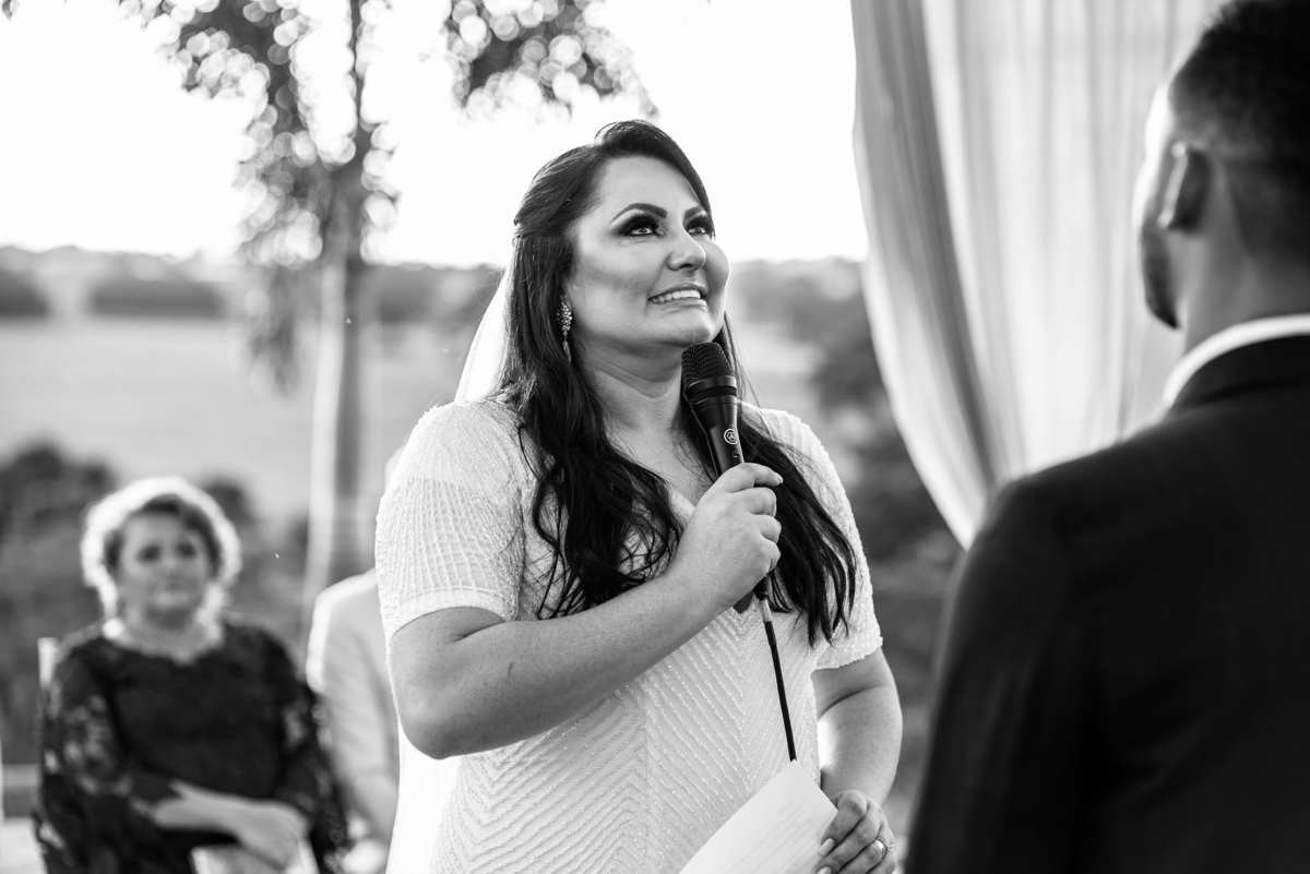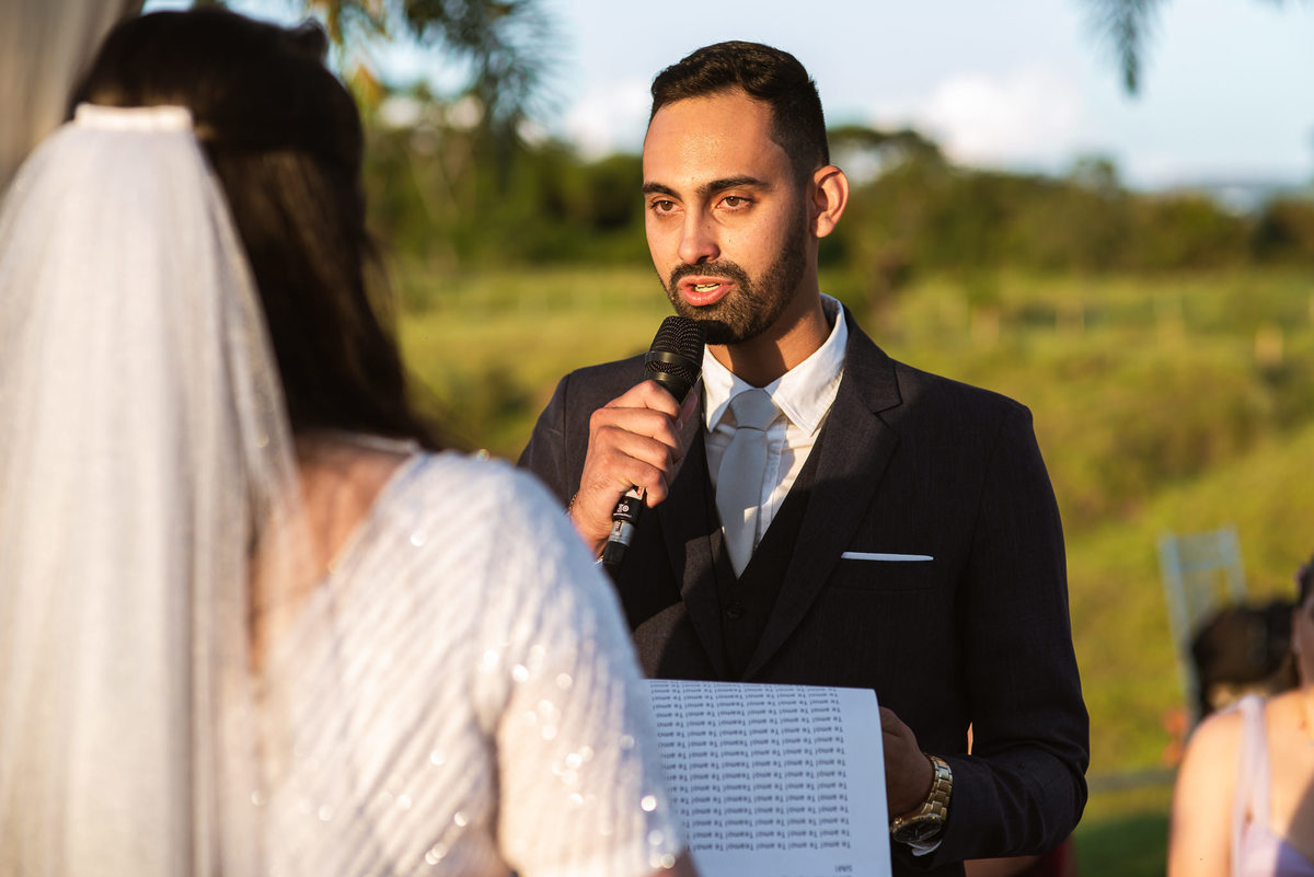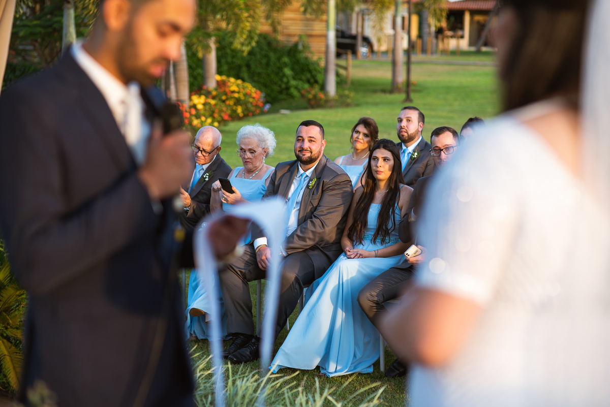 Essa parte merece um grande destaque porque até mesmo eu que não costumo me envolver muito com o que está sendo dito, fiquei completamente tocado com aquela pureza em forma de texto. Que palavras e que declaração mais linda! Enquanto eu me emocionava, vi que boa parte dos convidados também se derramava em lágrimas. E não pense que foi só o noivo que tinha belas palavras para dizer. Dayane fez um discurso digno de uma pessoa muito apaixonada. Lembro bem do início, onde ela agradeceu aos pais do seu noivo pelo homem que eles haviam criado. Dissertou também sobre todas as suas qualidades como namorado, noivo e agora marido. Foi difícil ver alguém que não deixou escapar um olho cheio d'água.