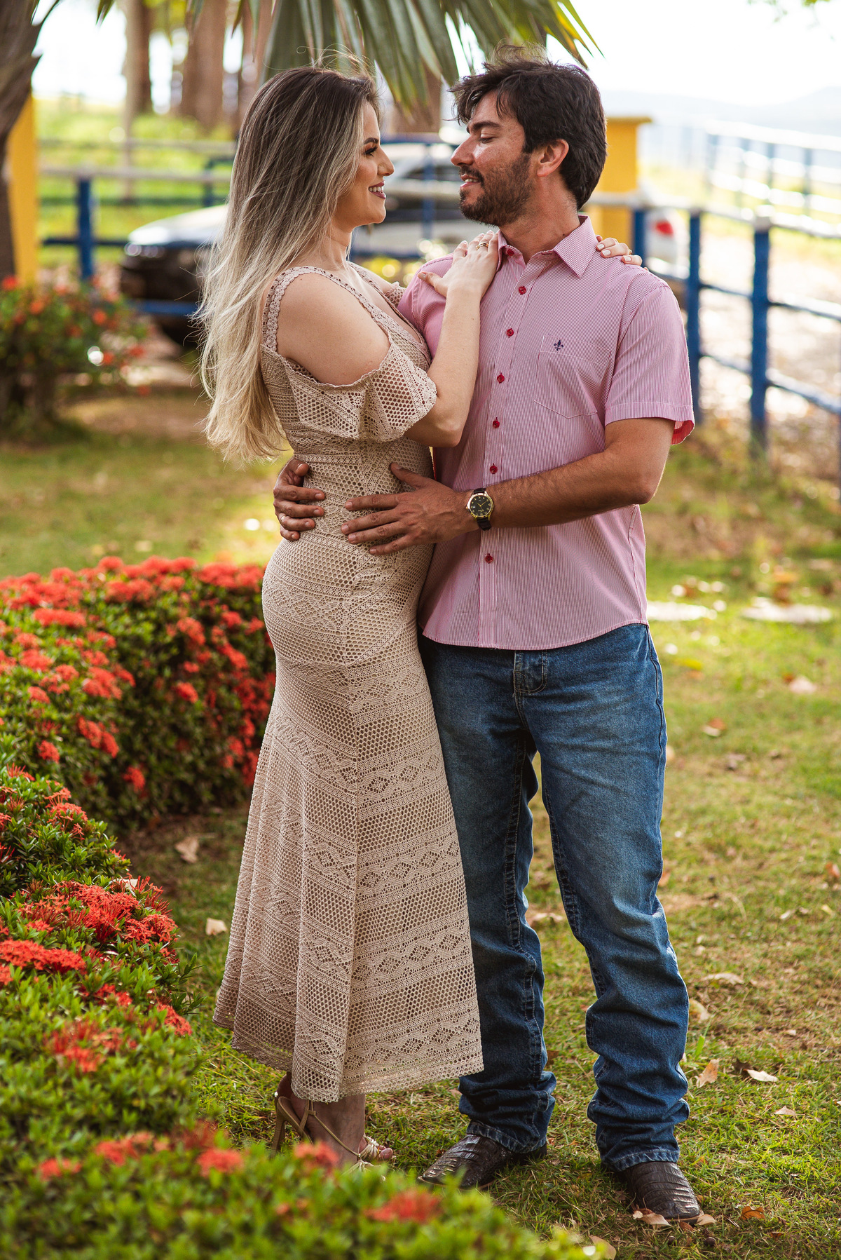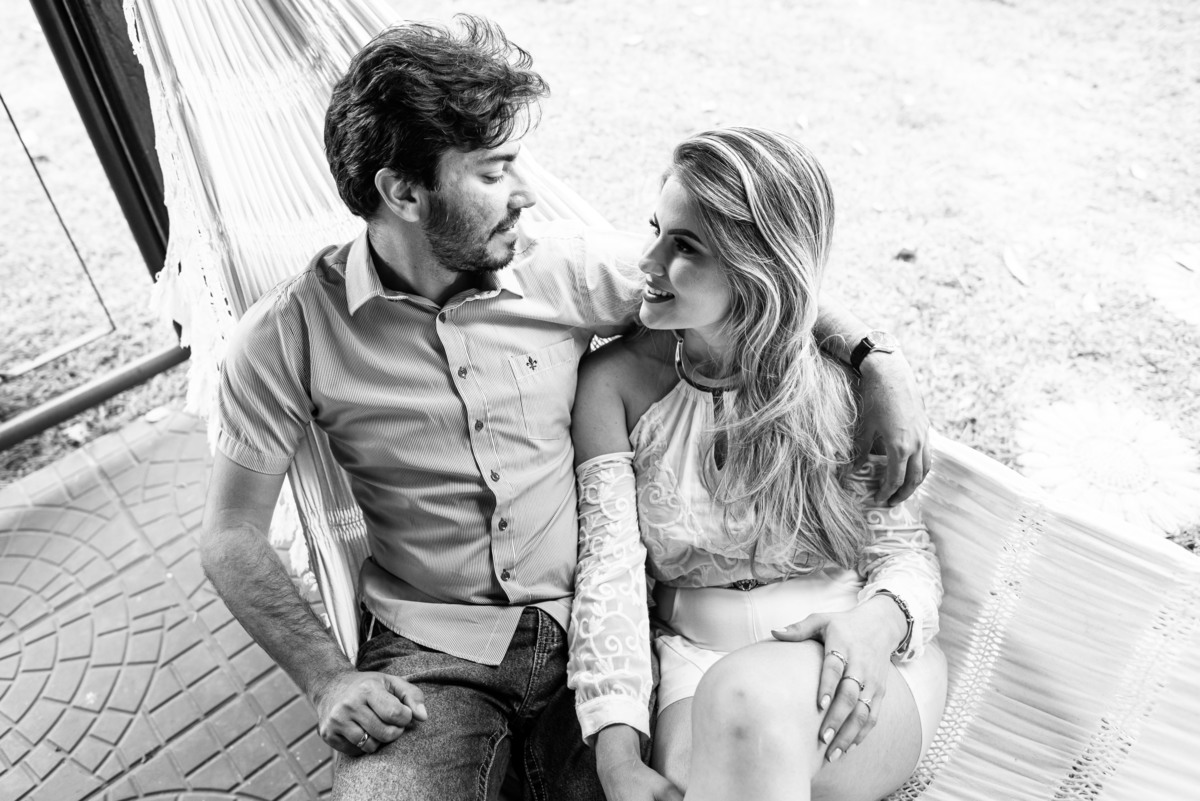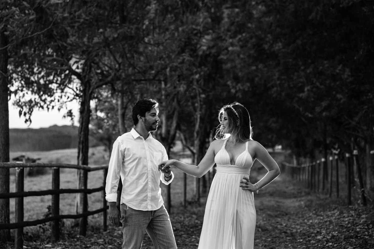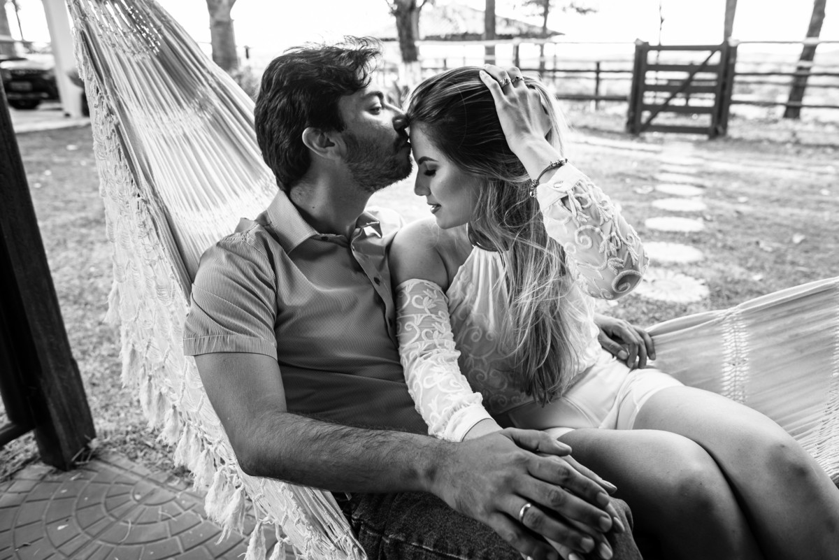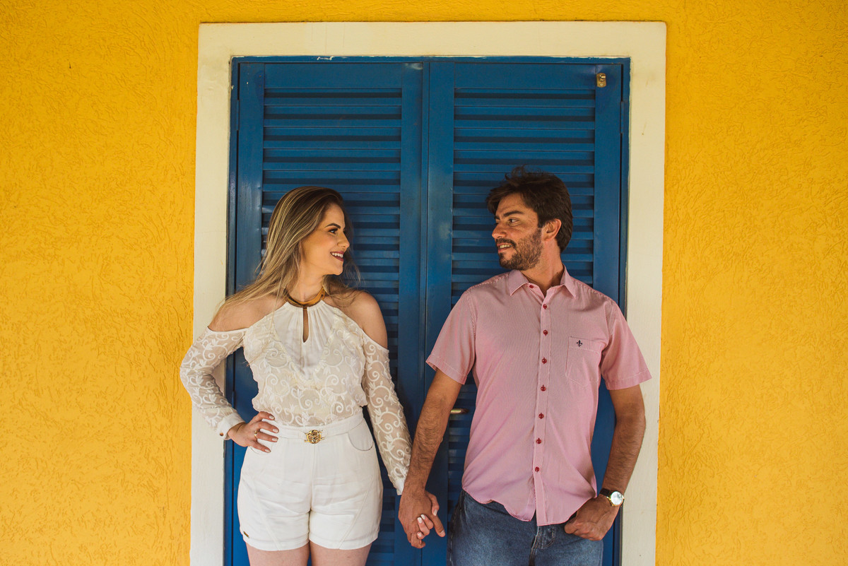 A chegada da fazenda já mostrava o quão lindo ela era. O dono escolheu as cores azul e amarelo e por onde passávamos, tudo estava parecendo que havia acabado de ser pintado. O jardim estava lindo e cada cantinho ali remetia a memória dos dois. Passeamos e fotografamos em cada lugar dentro da propriedade. Chegamos também no pequeno quiosque onde os dois se encontraram pela primeira vez. Além disso, ali onde o o primeiro beijo aconteceu. Eu, que não sou bobo nem nada, já pedi pra eles repetirem a cena e registrei tudo. Léo tem um cachorro lindo que o acompanha sempre nas viagens pra fazenda. E claro que ele não deixaria seu companheiro de fora do ensaio. Teve latido, corrida, lambeijo e tudo mais. Foi incrível!