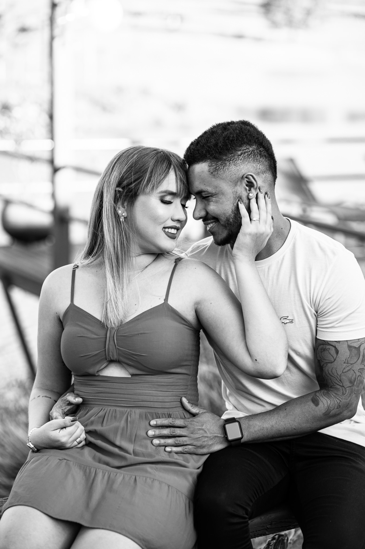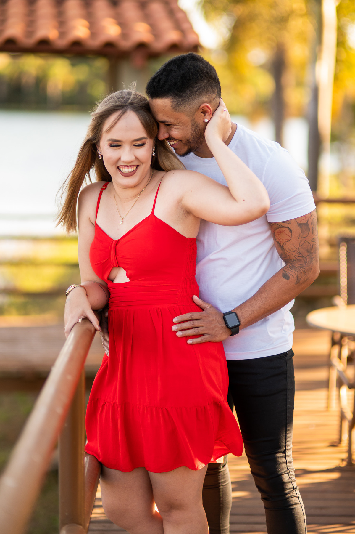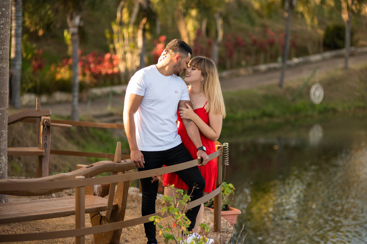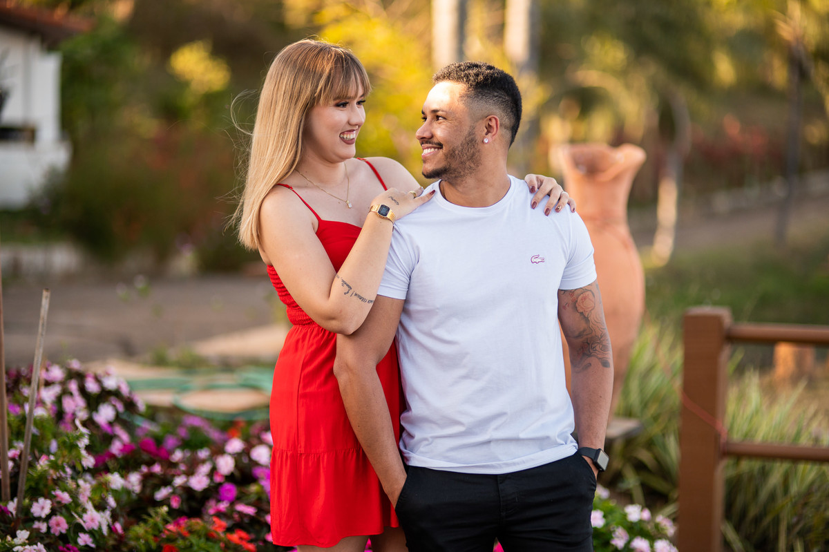 Percorremos todos os espaços do lugar, visitamos cada pedacinho fazendo um belo ensaio de noivos. Os dois estavam muito felizes e trocaram sorrisos o tempo todo. Enquanto eles se amavam e sorriam, eu registrava cada momento. Era só pedir um para olhar nos olhos do outro que o sorriso vinha naturalmente. A gente nota o amor através dos pequenos gestos, pelo carinho como um abraça o outro, pelo brilho nos olhos quando se olham... É lindo ver isso! E as fotos mostram bem.