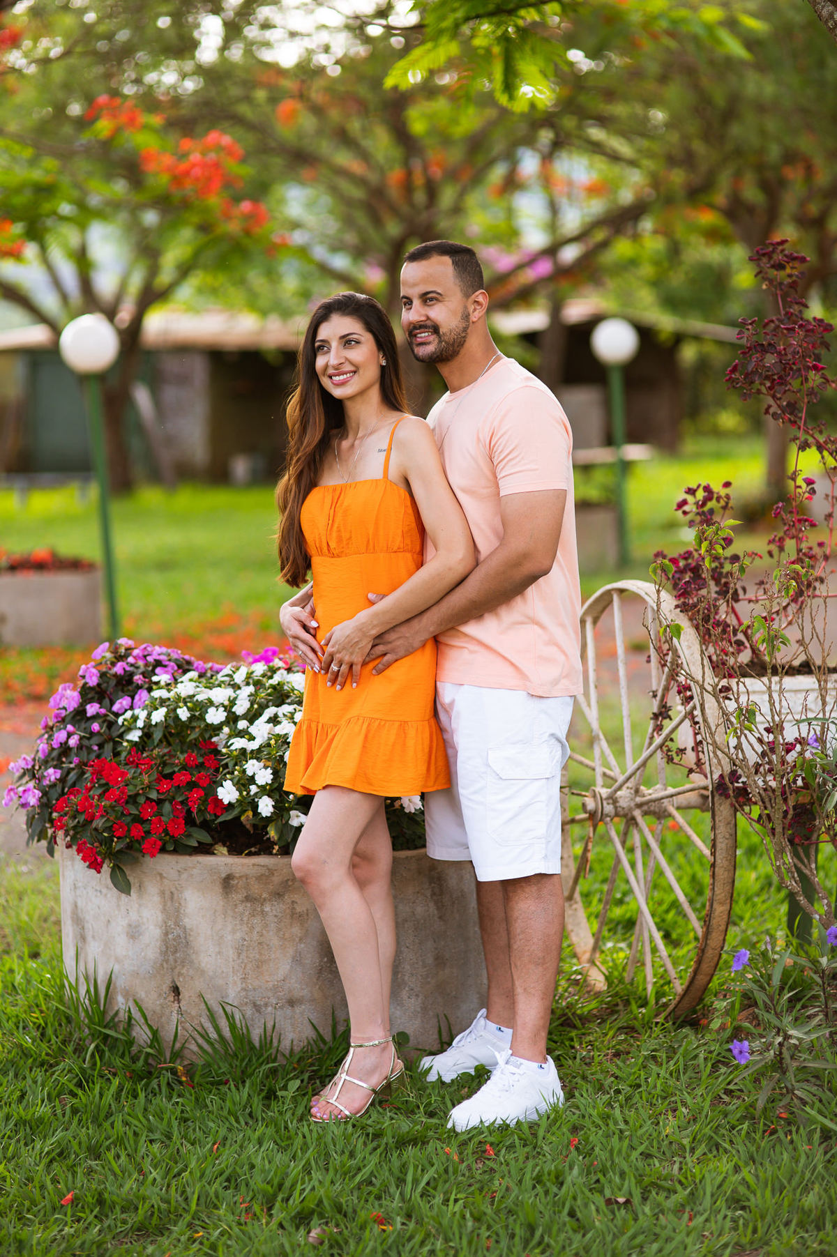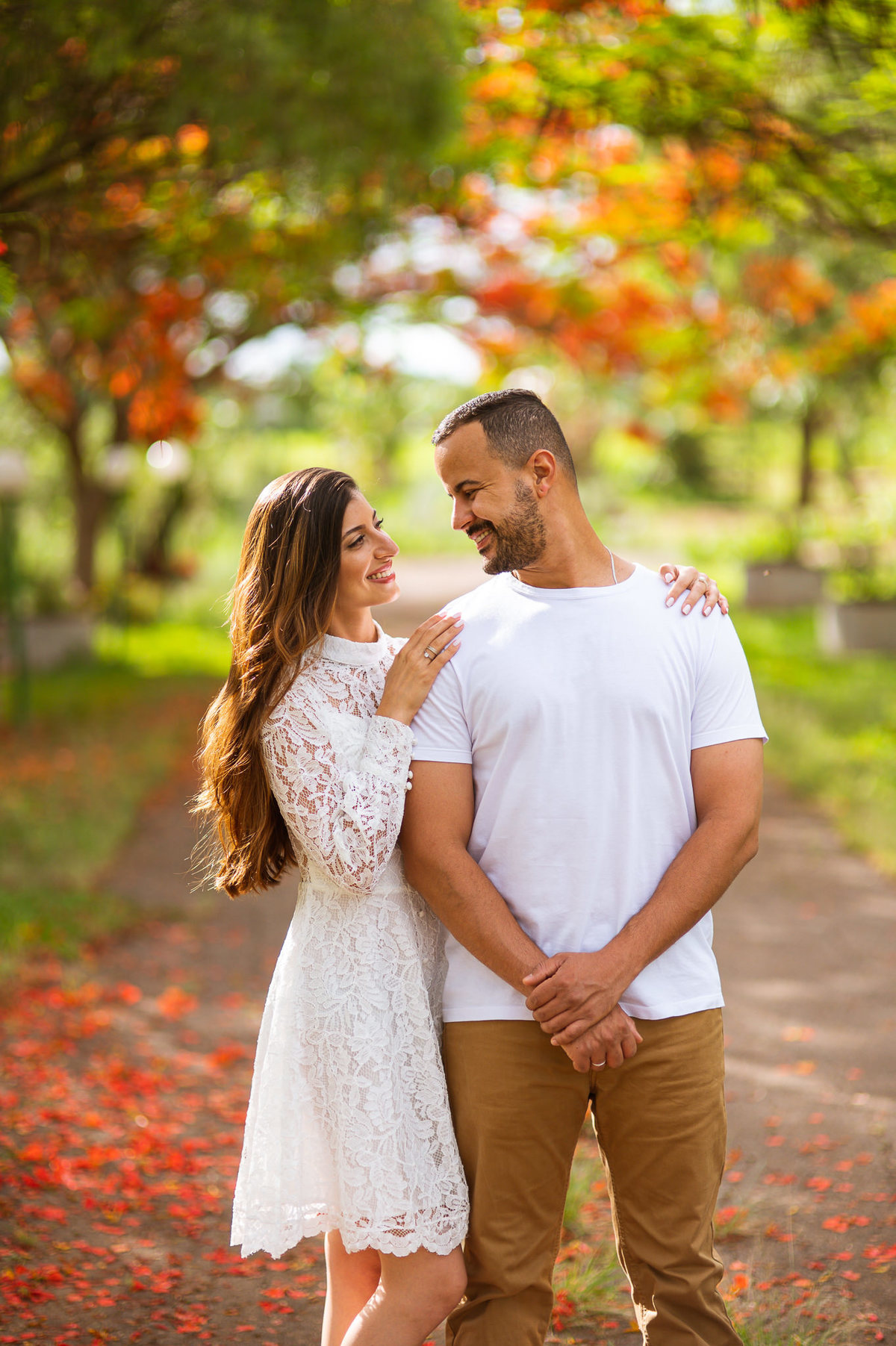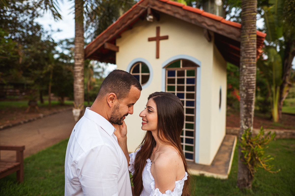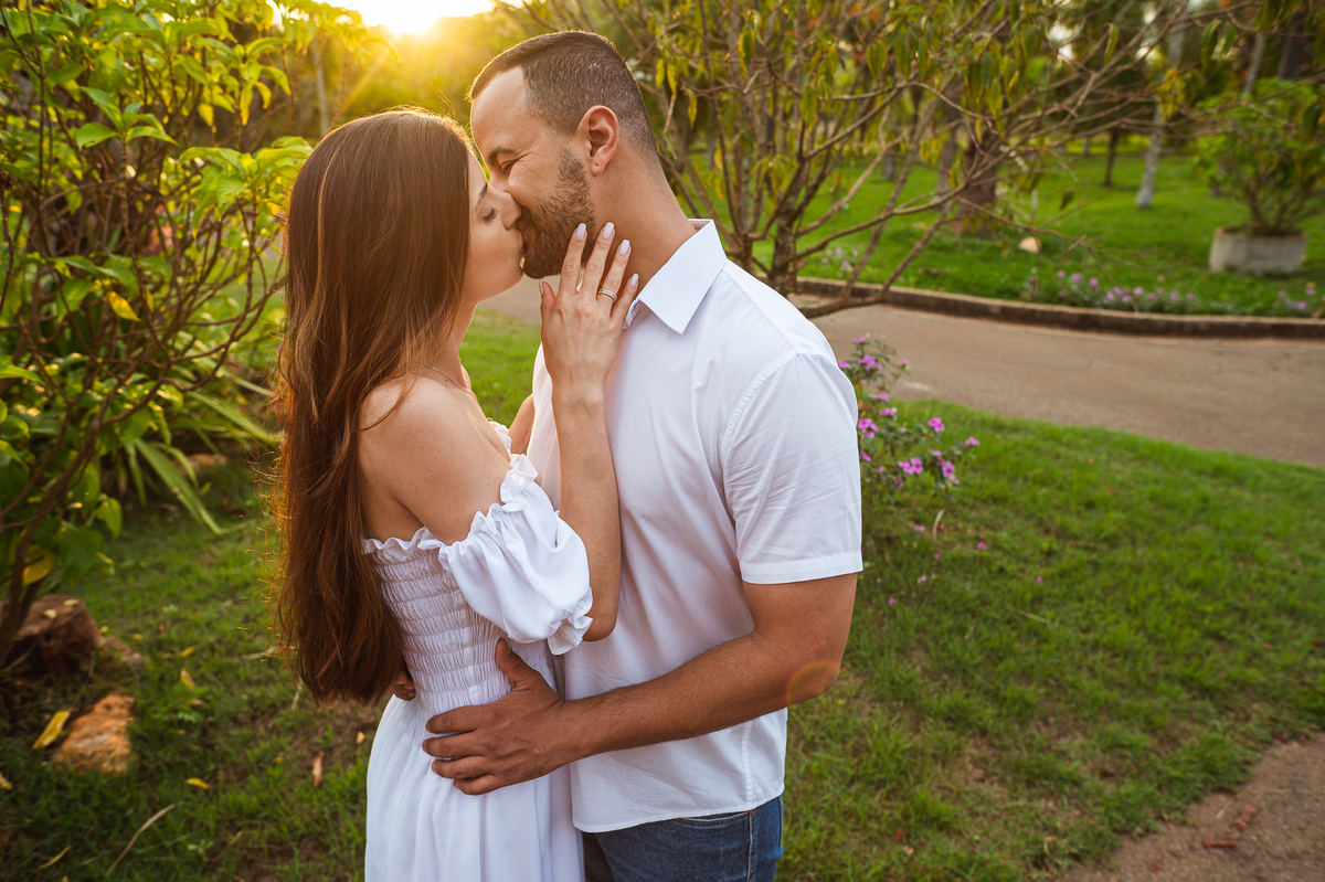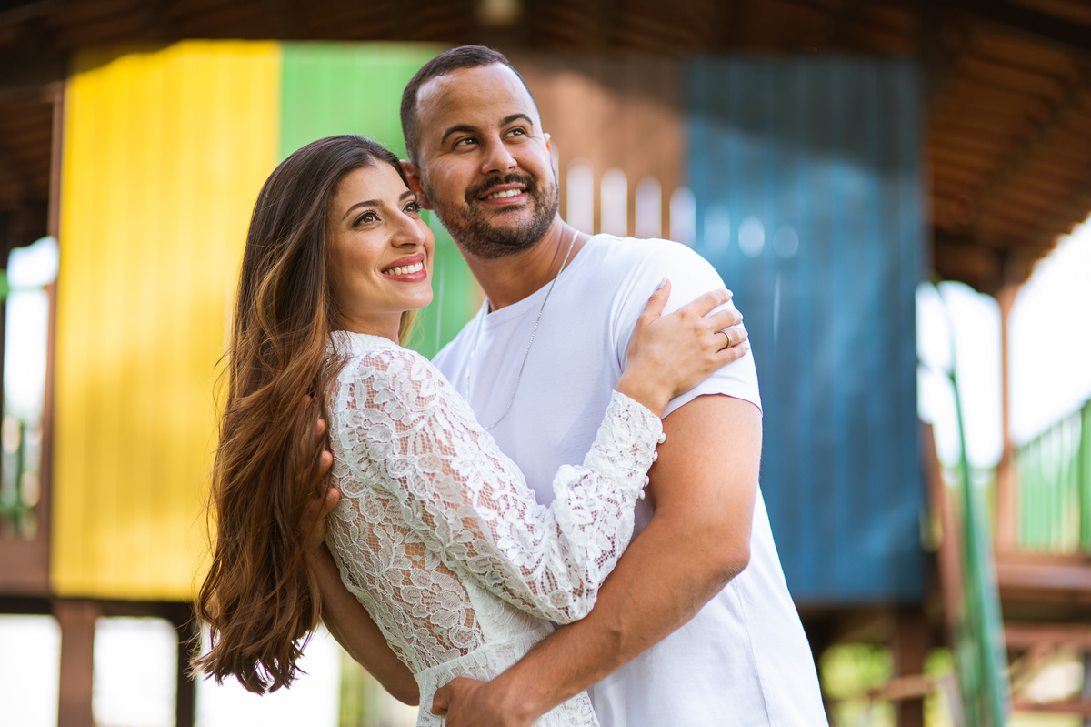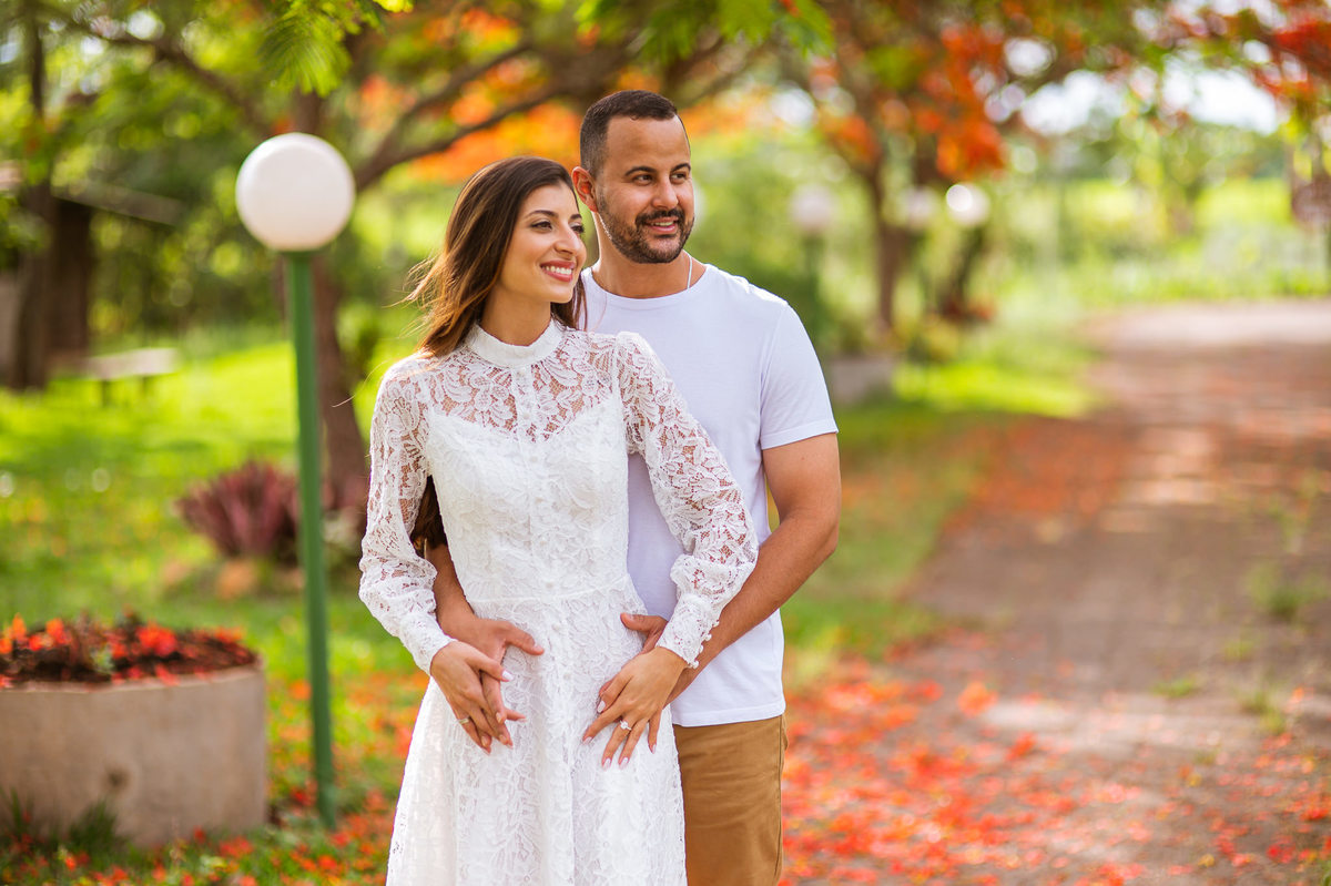 Os noivos estavam super conectados e muito felizes com tudo. Aproveitamos todos os cenários que o local nos oferecia e clicamos bastante. Com o passar dos minutos, o sol resolveu aparecer e nos agraciar com um tom quente ao final da tarde. Emoldurando os noivos, o sol brilhou e realçou ainda mais a beleza do ensaio. A cada clique, eu me surpreendia com as cores e a beleza da cena. Isabella e Luiz foram ficando cada vez mais à vontade e ao final tínhamos fotos para postar até o ano que vem.