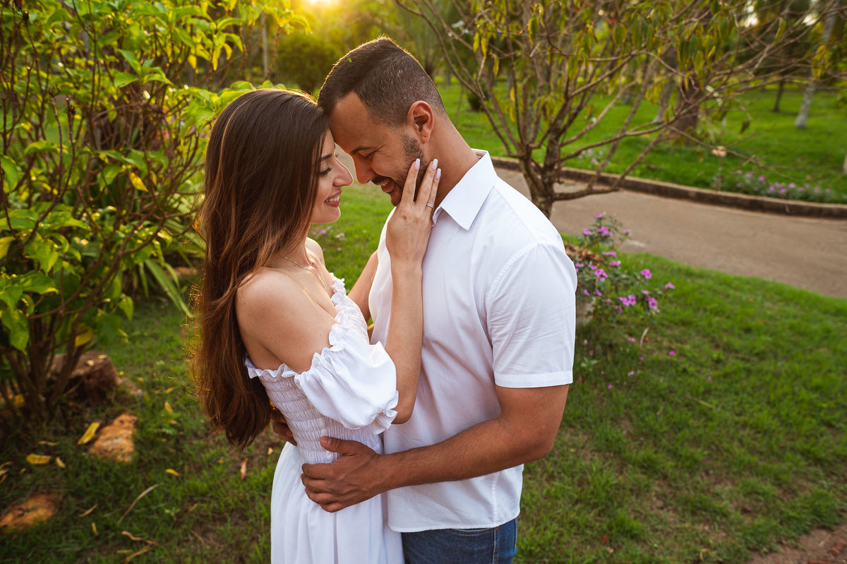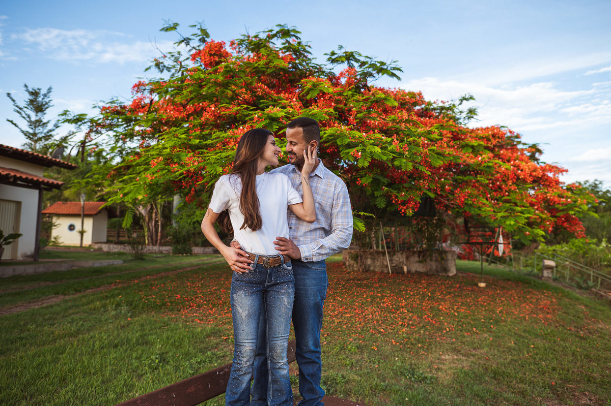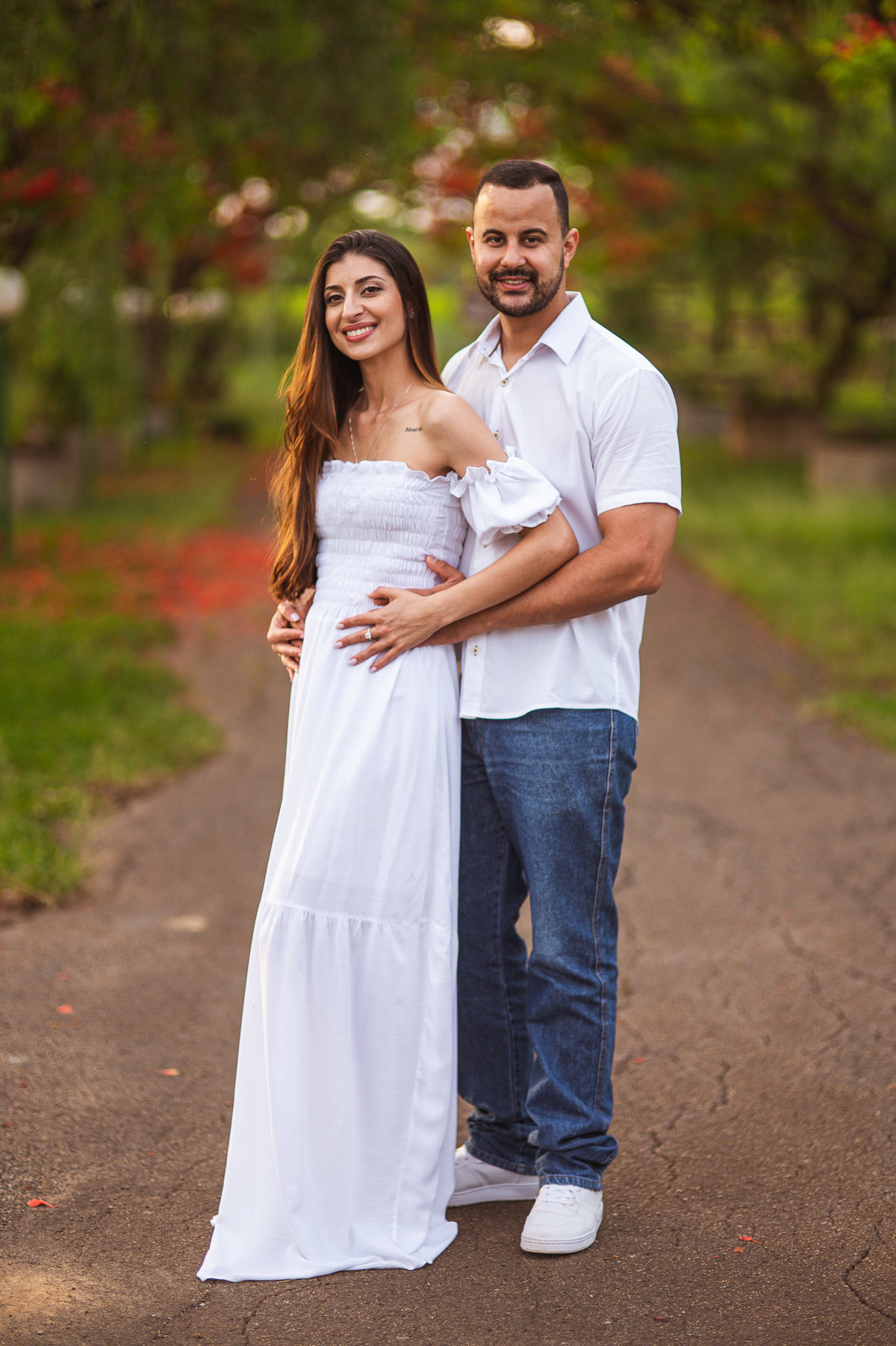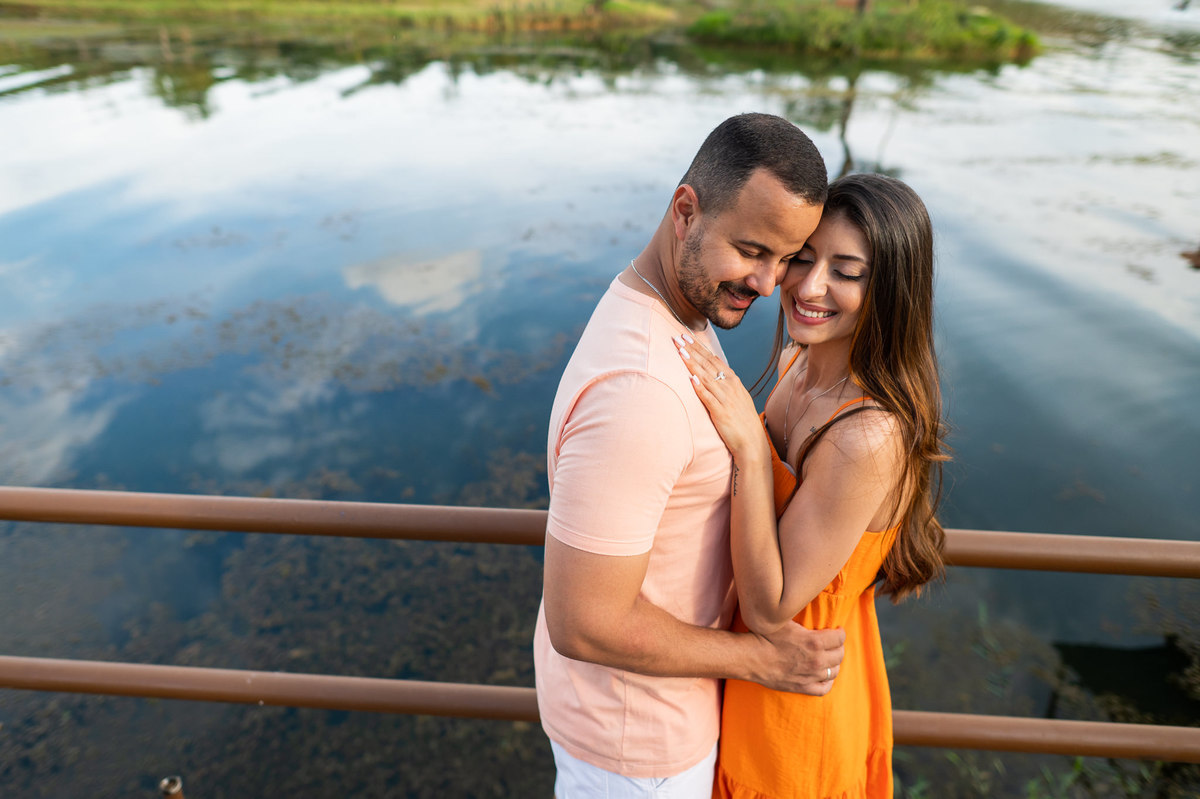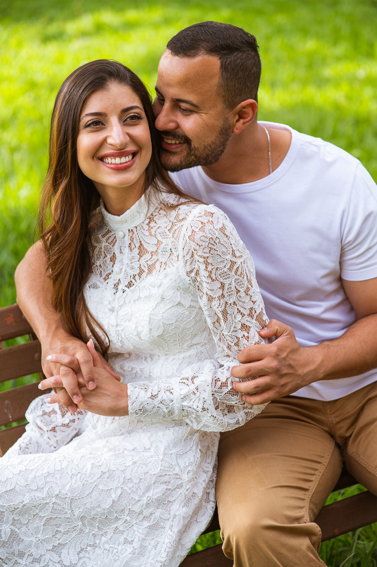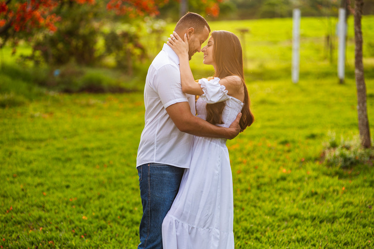 Os noivos estavam super conectados e muito felizes com tudo. Aproveitamos todos os cenários que o local nos oferecia e clicamos bastante. Com o passar dos minutos, o sol resolveu aparecer e nos agraciar com um tom quente ao final da tarde. Emoldurando os noivos, o sol brilhou e realçou ainda mais a beleza do ensaio. A cada clique, eu me surpreendia com as cores e a beleza da cena. Isabella e Luiz foram ficando cada vez mais à vontade e ao final tínhamos fotos para postar até o ano que vem.
