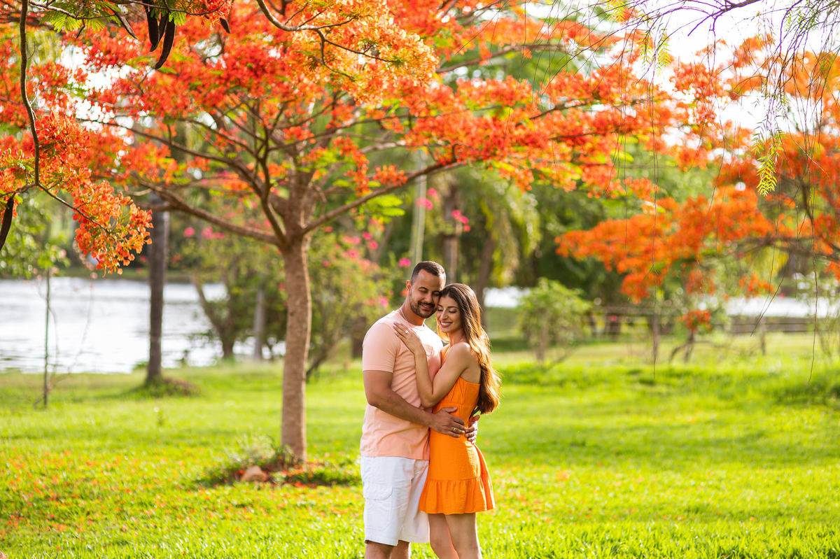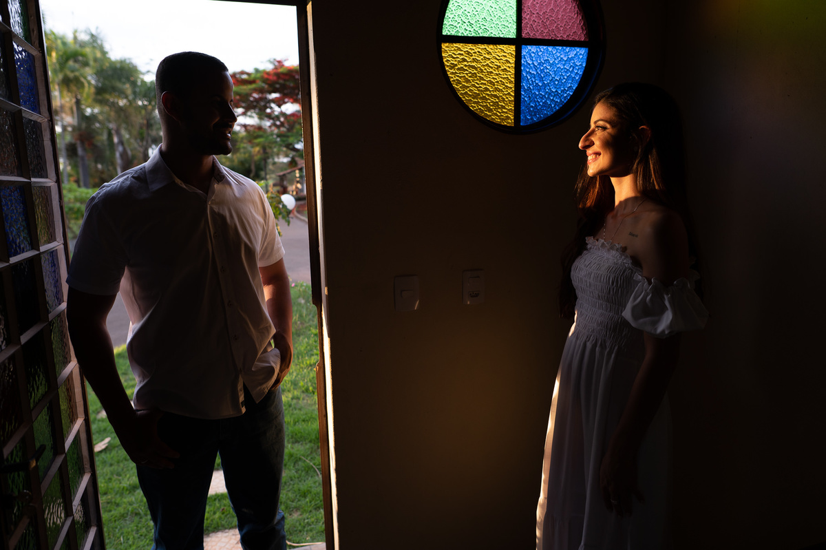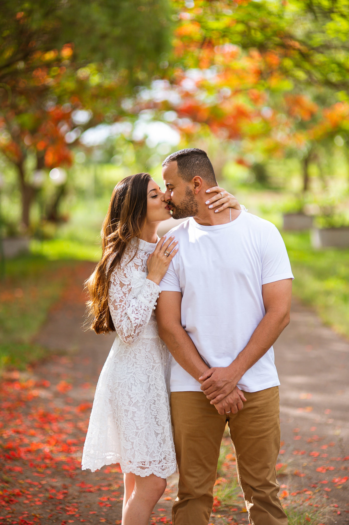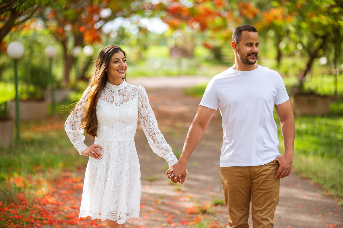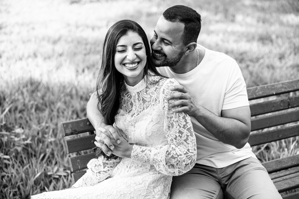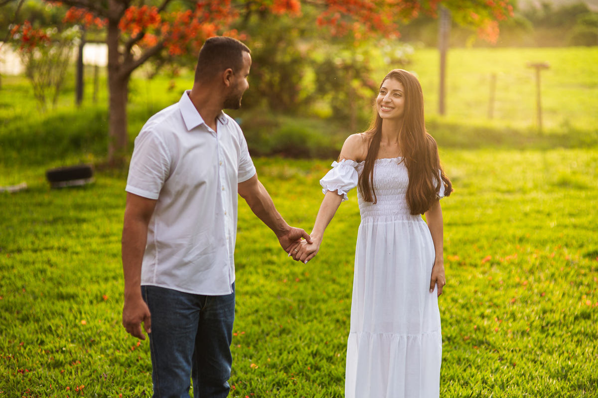 Os noivos estavam super conectados e muito felizes com tudo. Aproveitamos todos os cenários que o local nos oferecia e clicamos bastante. Com o passar dos minutos, o sol resolveu aparecer e nos agraciar com um tom quente ao final da tarde. Emoldurando os noivos, o sol brilhou e realçou ainda mais a beleza do ensaio. A cada clique, eu me surpreendia com as cores e a beleza da cena. Isabella e Luiz foram ficando cada vez mais à vontade e ao final tínhamos fotos para postar até o ano que vem.