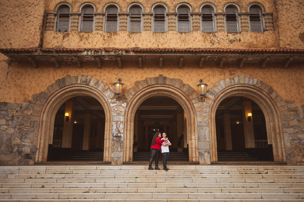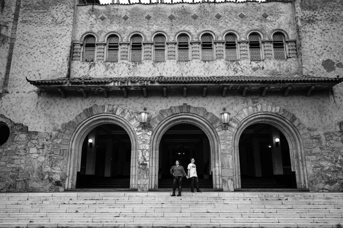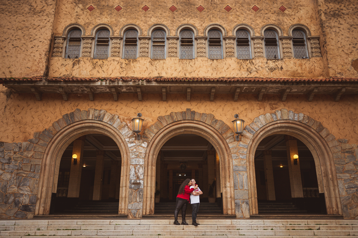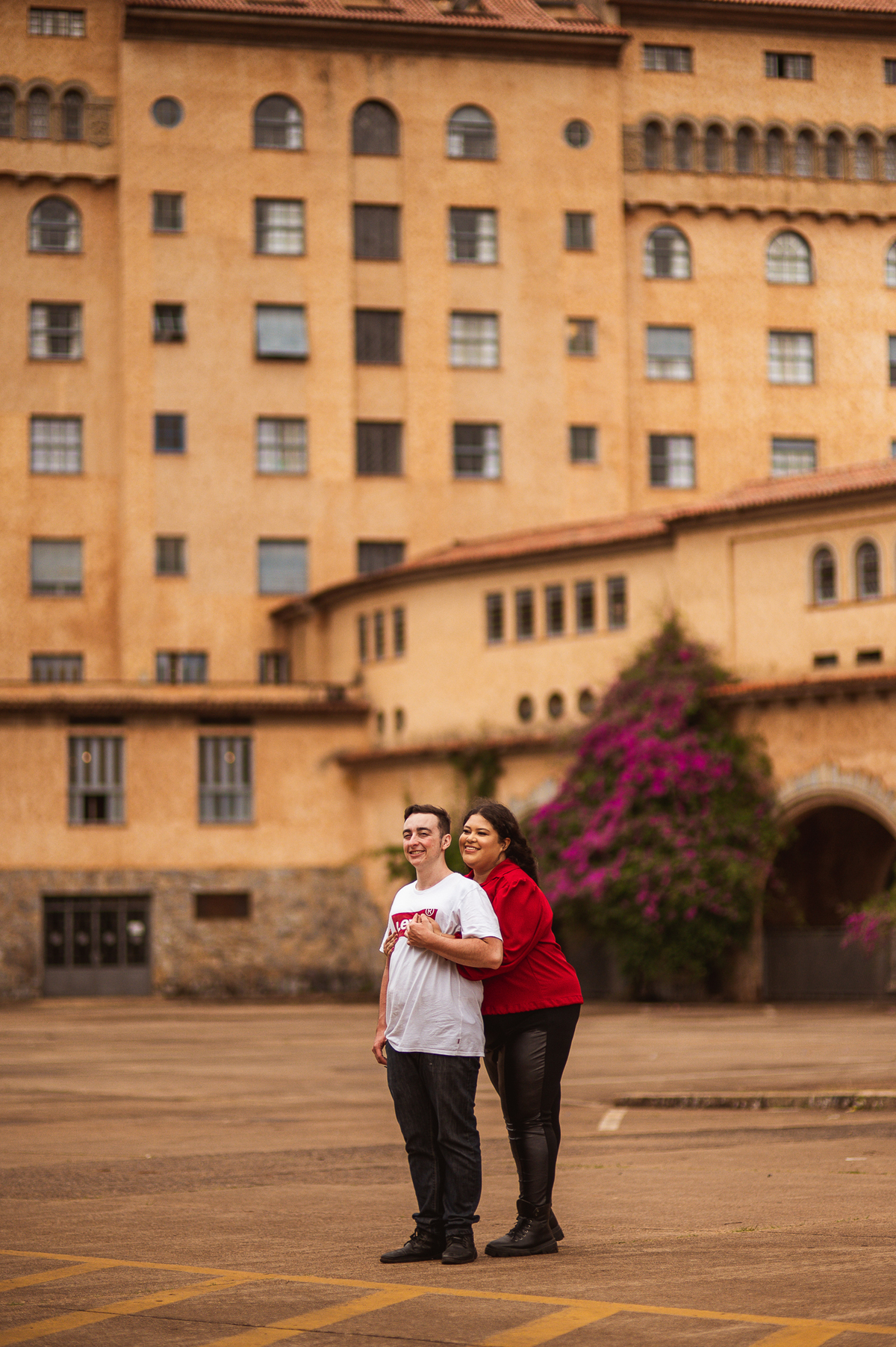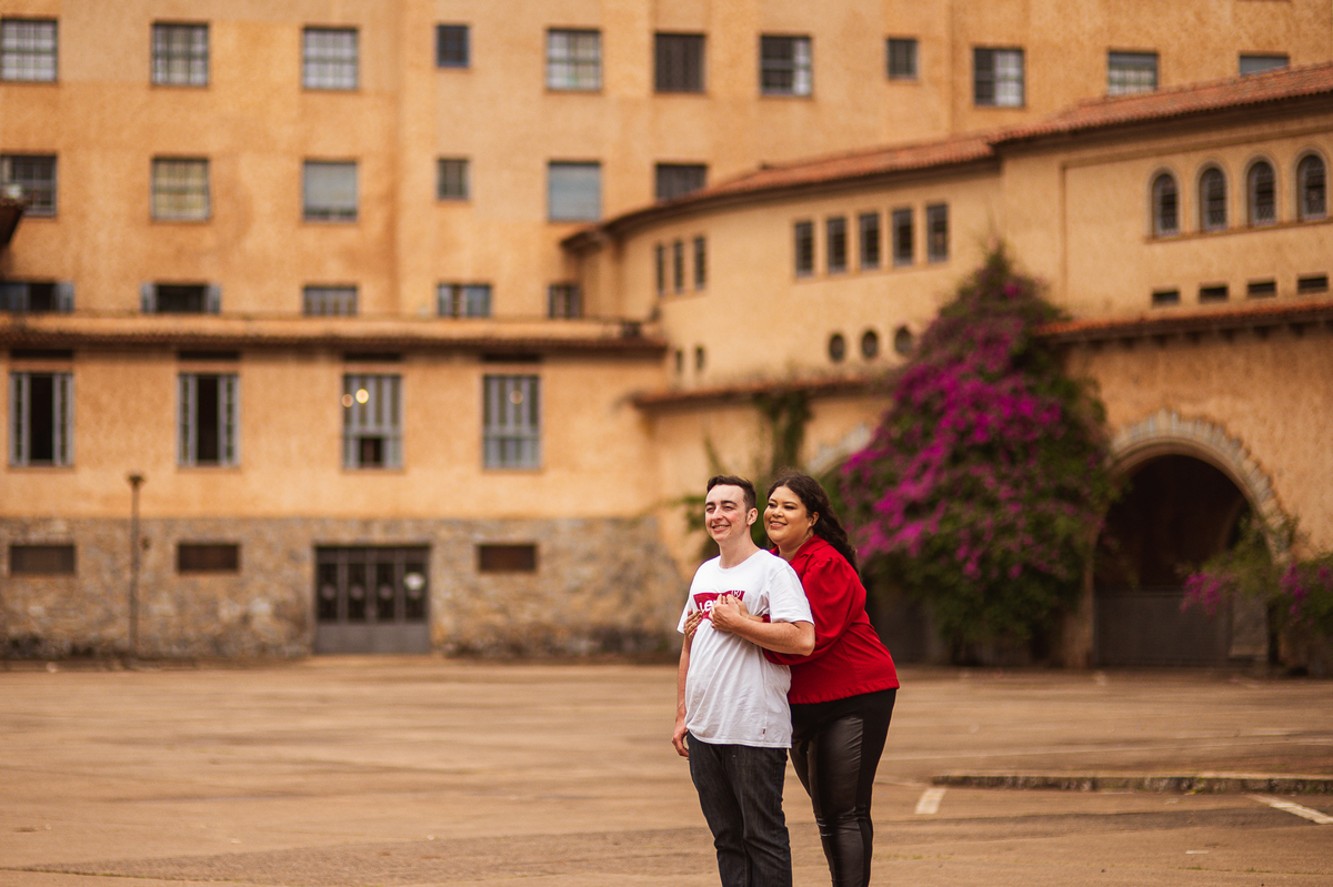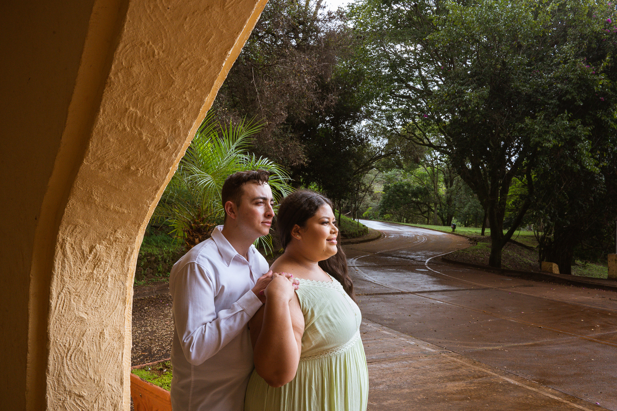 Demos a volta pelo parque e fotos aproveitando os locais por onde passávamos que eram lindos. Chegamos enfim no entorno do Hotel. A estrutura imensa ficou de fundo em várias fotos que vocês verão logo abaixo. Passamos por lá e fizemos boas fotos também. Por fim, encontramos uma igrejinha abandonada que está caindo aos pouquinhos. Enquanto estávamos lá, até o guarda nos avisou pra tomar cuidado que a estrutura estava bem precária. Nos cuidamos e encerramos ali o ensaio que já tinha ficado sensacional.