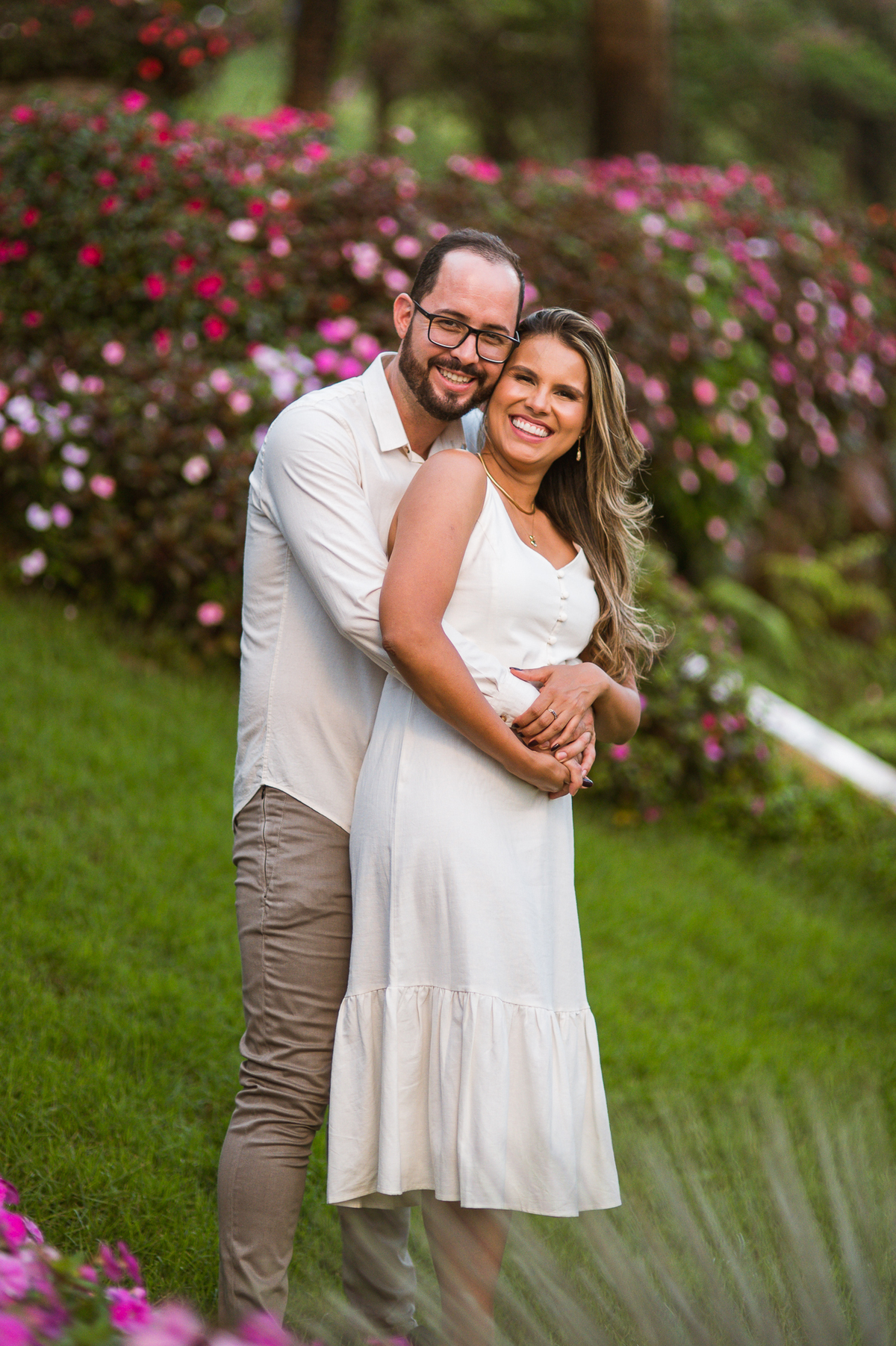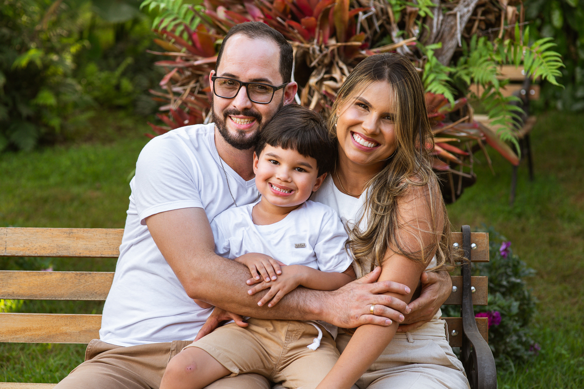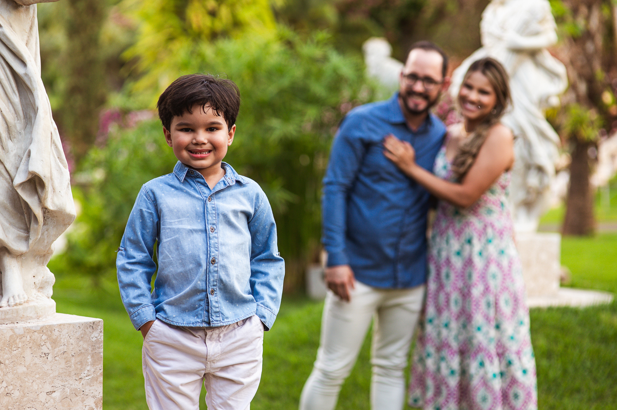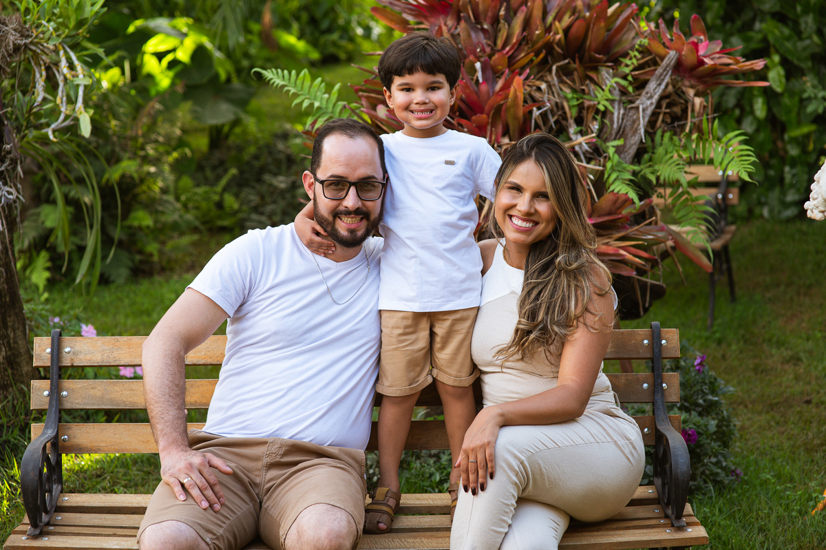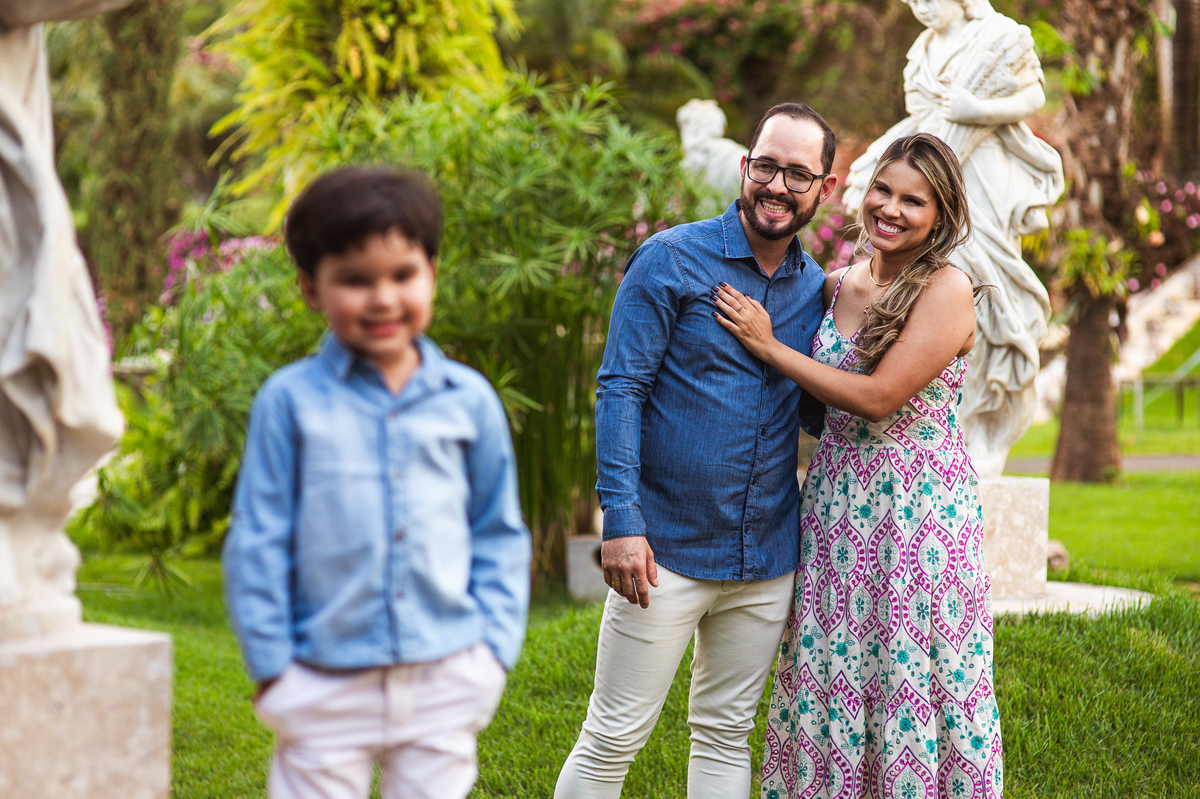 Eu tinha certeza de que o ensaio ficaria maravilhoso. Com a presença do Matteo ficou ainda melhor, muito mais divertido e leve. Nós fizemos o ensaio na locação mais bela da cidade: O Amorim Garden. Chegando lá os olhinhos dos noivos já brilharam com a beleza encantadora do local. Sempre muito bem cuidado, florido por todos os cantos e com inúmeras opções de fotografar. Começamos a fazer as fotos já no banquinho novo que havia sido colocado há poucos dias. Por lá, começamos as fotos e o Matteo já demonstrou a que veio. Sorriu em TODAS as fotos, fez pose, brincou e se divertiu com os dois.
