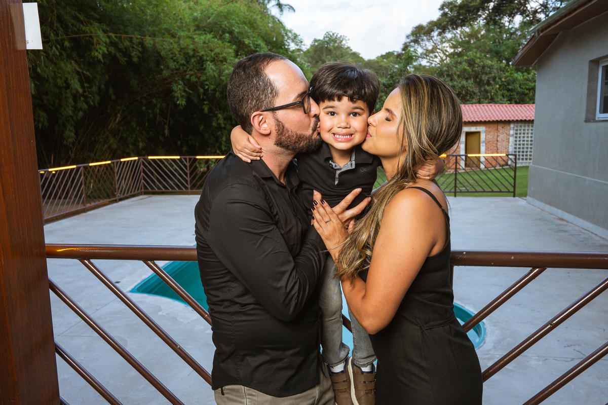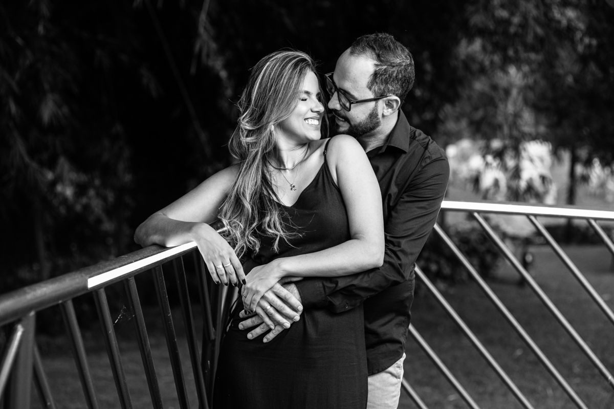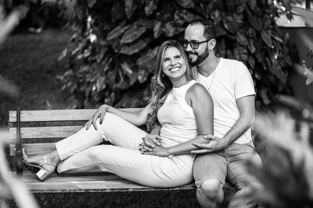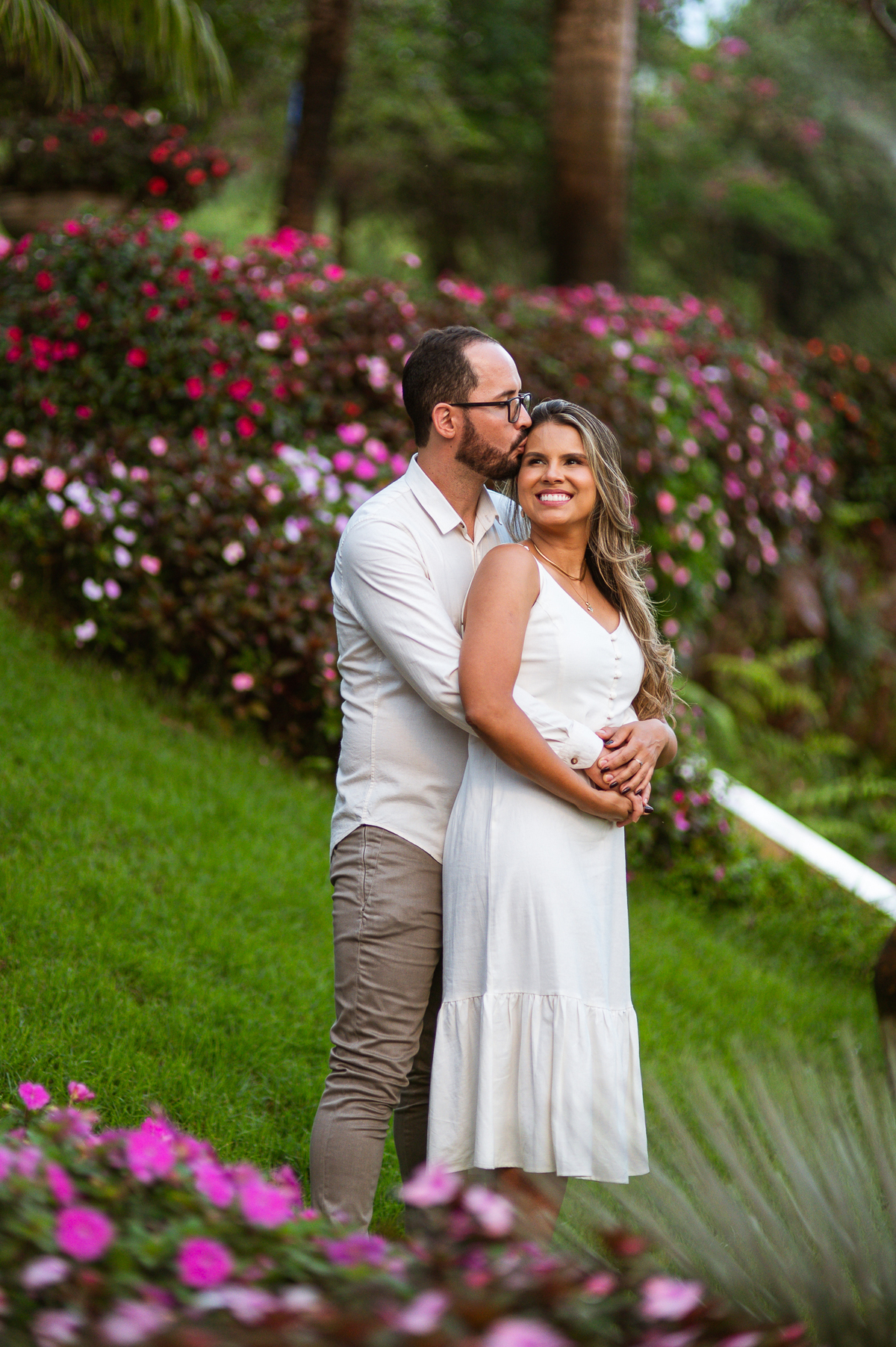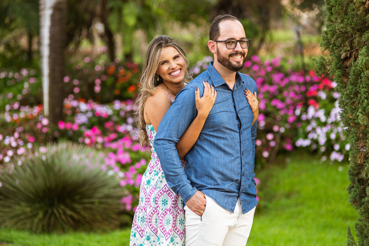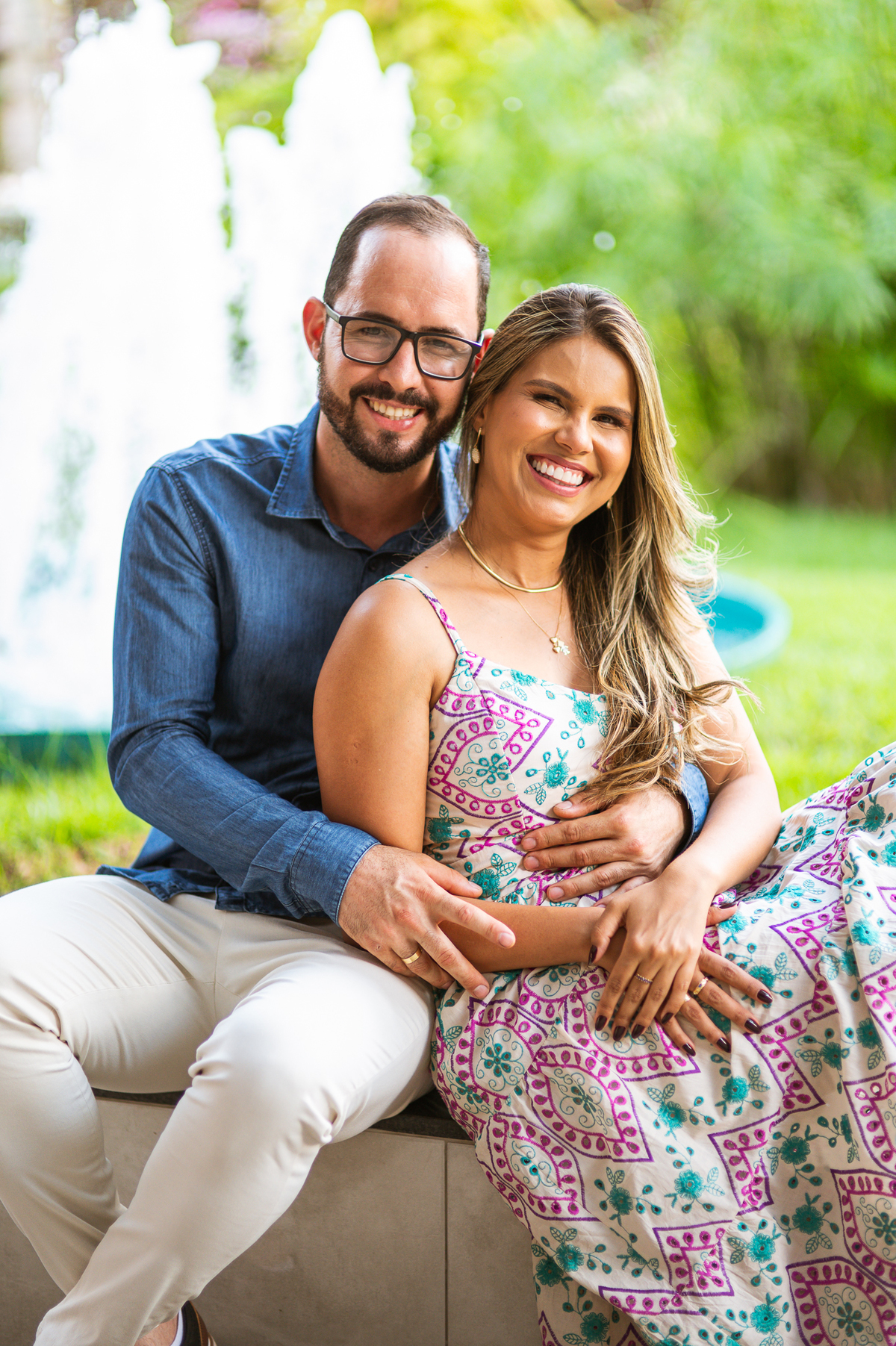 Eu tinha certeza de que o ensaio ficaria maravilhoso. Com a presença do Matteo ficou ainda melhor, muito mais divertido e leve. Nós fizemos o ensaio na locação mais bela da cidade: O Amorim Garden. Chegando lá os olhinhos dos noivos já brilharam com a beleza encantadora do local. Sempre muito bem cuidado, florido por todos os cantos e com inúmeras opções de fotografar. Começamos a fazer as fotos já no banquinho novo que havia sido colocado há poucos dias. Por lá, começamos as fotos e o Matteo já demonstrou a que veio. Sorriu em TODAS as fotos, fez pose, brincou e se divertiu com os dois.