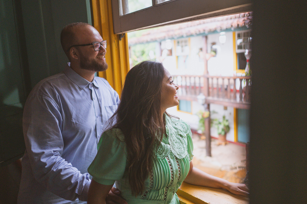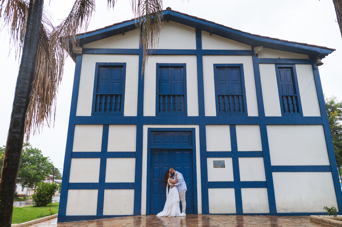 Chegamos em Paracatu para fazer o ensaio com um tempo muito nublado e com imensa probabilidade de chuva. Como eu sempre confio muito em Deus e sei que se ELE quiser mandar algo, é pra nos ajudar. E assim foi. Chegamos e a chuva insistia em cair por lá. Mas quando chegamos no sítio onde o ensaio começaria, o tempo estava limpo. Começamos rapidamente com medo de chover, e até um céu azul resolveu aparecer nesse momento. Passeamos por todo o sítio (Que também seria o cenário do casamento) e depois de fazer todas as fotografias, resolvemos ir para o centro histórico da cidade, que por sinal é maravilhoso. Mas chegando lá... Chuvinha de leve... Entramos para o centro cultural, que é um casarão antigo lindíssimo por fora. Quando adentramos, eu queria era morar lá. Pelas fotos, vocês verão um pouquinho do quanto a casa é linda.