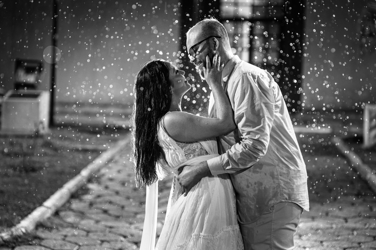 Percorremos os diversos cômodos de lá e fomos muito bem recepcionados pelos funcionários do local. Do lado de fora, meus amigos do céu, a chuva caía com força. Lembro bem que Carol me disse: "Lizandro, se tiver chovendo até mais tarde, faremos as fotos na chuva." Eu não podia acreditar que aquela fala teria algo sério, talvez fosse uma forma de me deixar mais alegre por causa da chuva, mas não. Era verdade! Encerramos lá e eles me disseram que queriam muito fazer essas fotos na chuva mesmo, em alguns locais específicos de lá. Percorremos os locais e fizemos muitas fotos maravilhosas.