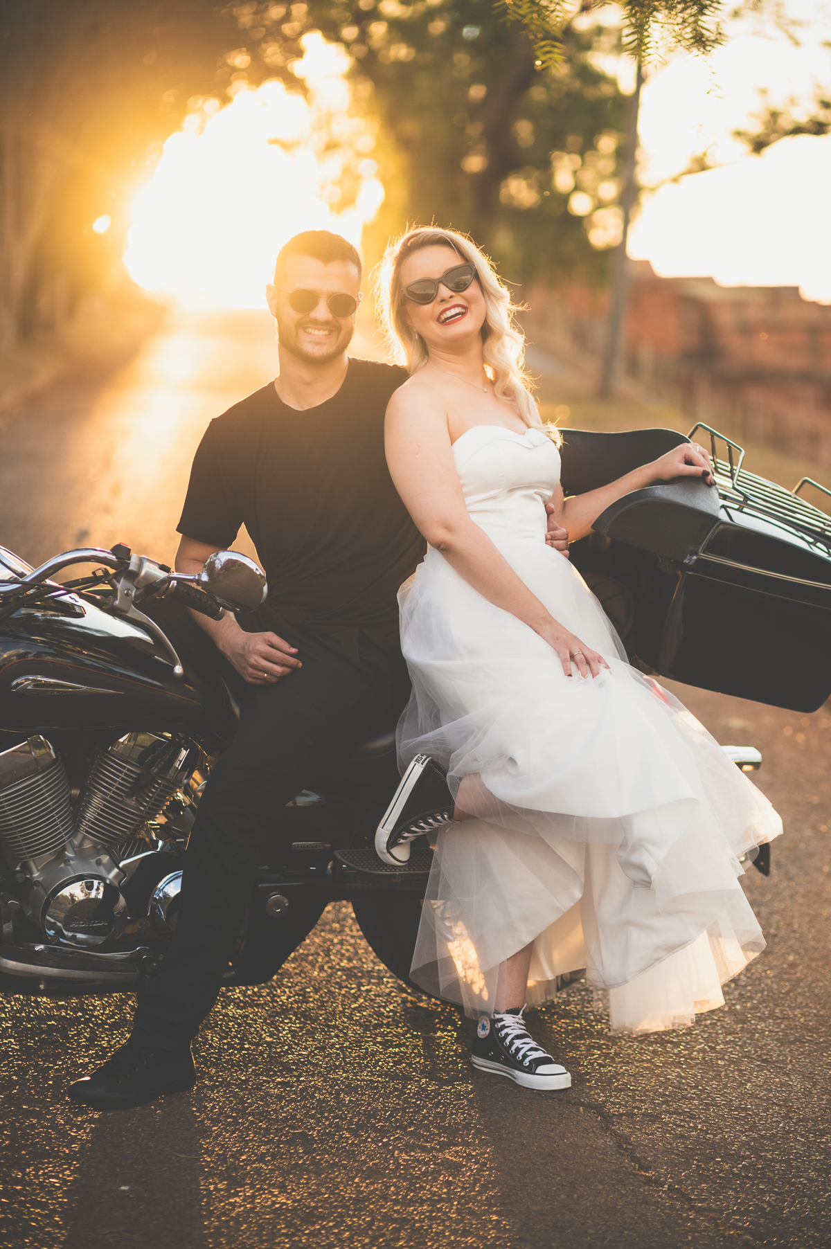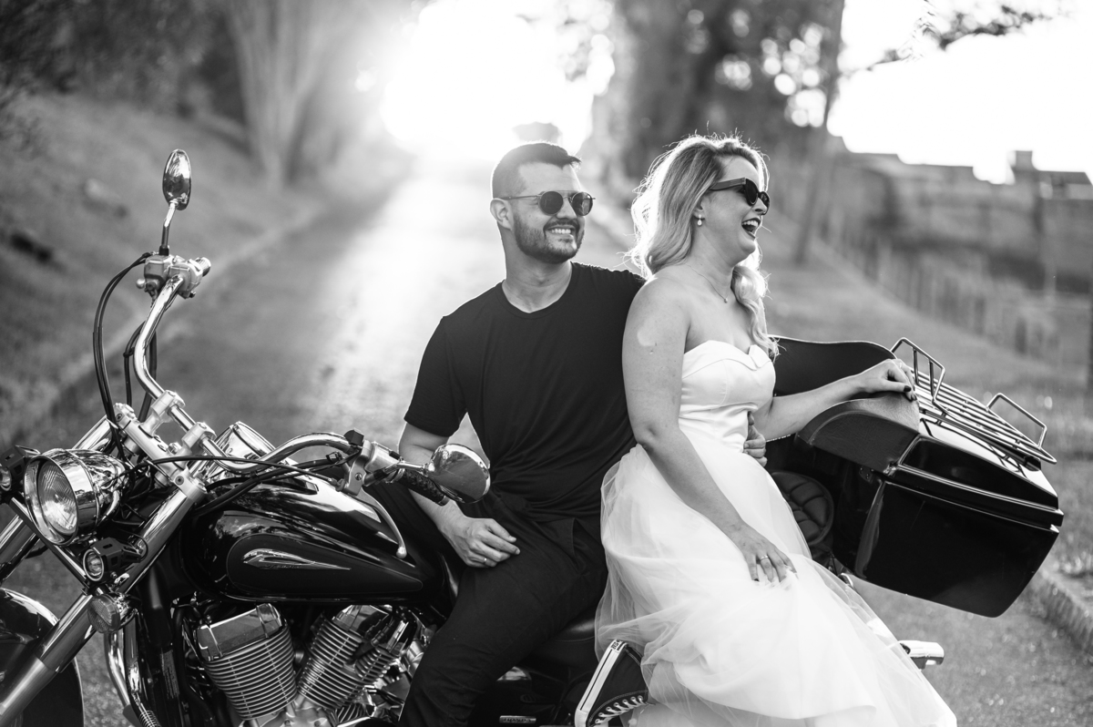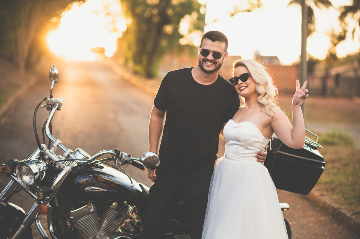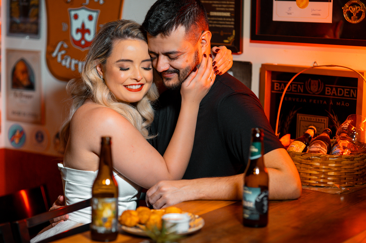 Fizemos algumas fotografias utilizando o cenário que tinha o pôr-do-sol de fundo e a motocicleta à frente. O casal vestiu seus trajes e construímos uma cena muito bacana. Posteriormente, já à noitinha, fomos para a Casa Grande Cervejaria. Por lá, Pedro tratou de pedir uma boa cerveja para os dois e um petisco DELICIOSO. Montamos a iluminação especial e fizemos mais uma série de foto dos dois, do jeitinho que eles amam! E o resultado desse dia incrível de fotos você confere logo abaixo. Espero que gostem tanto quanto nós que fizemos!