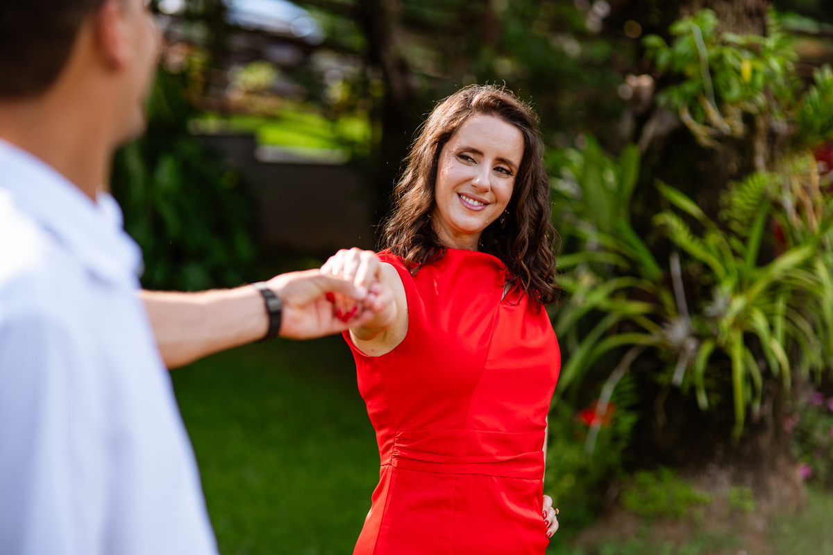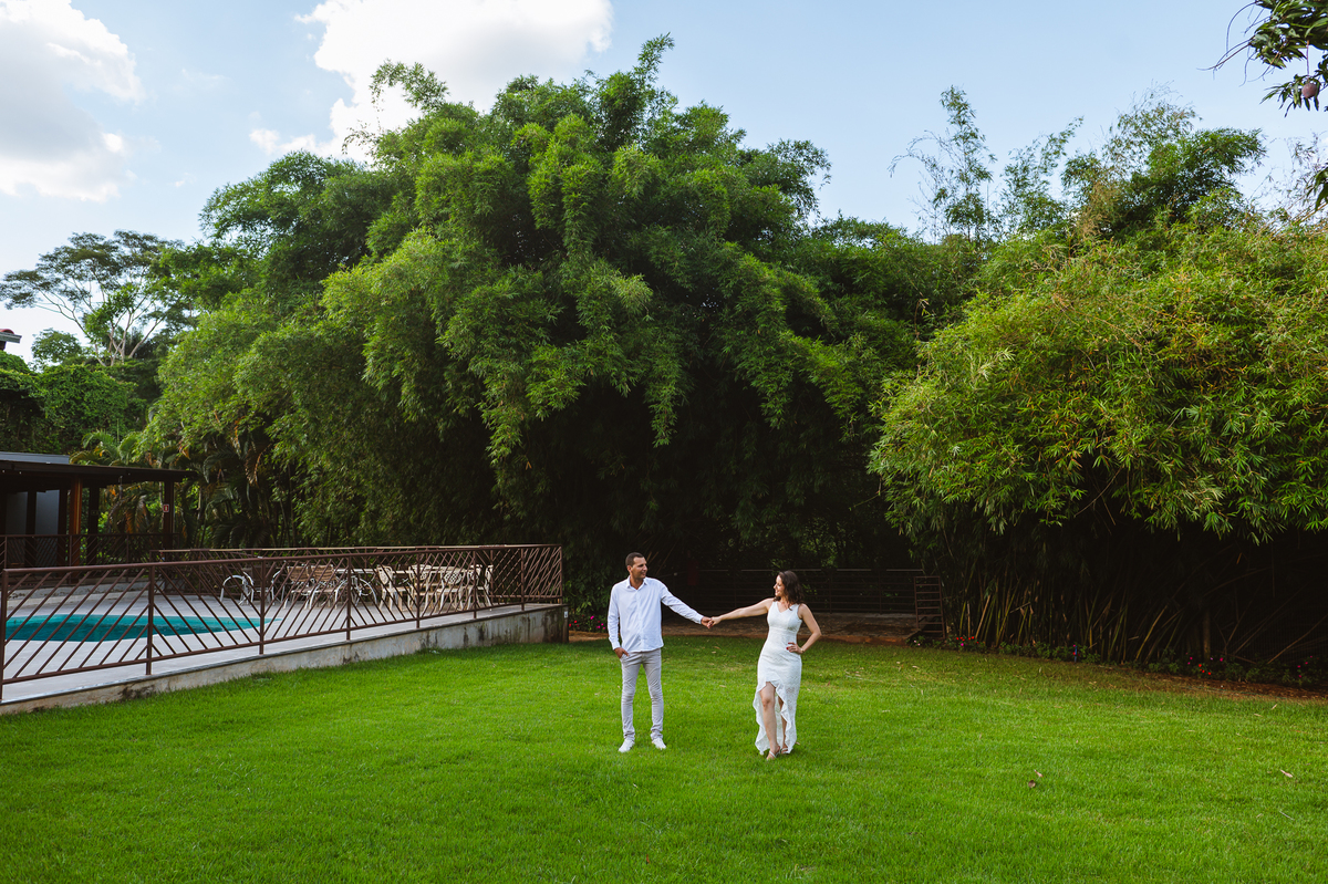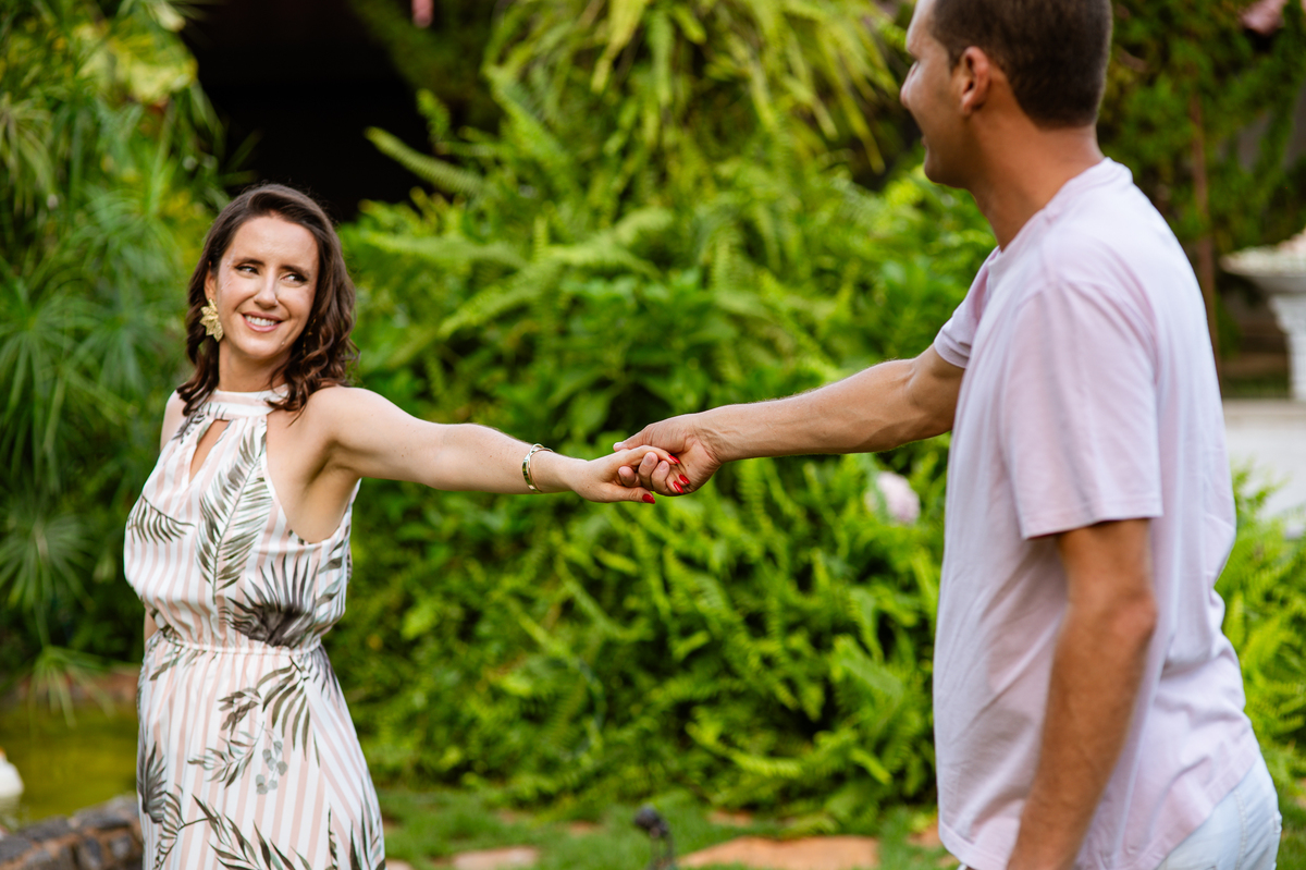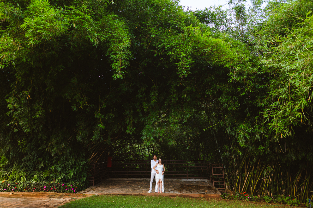 Fomos ao lindíssimo Amorim Garden, e o dia estava maravilhosamente lindo. Estávamos receosos quanto à chuva, que nos dias anteriores caiu fortemente sobre a cidade. Mas Deus sempre me ajuda até nisso, e nos presenteou com um dia inesquecível. Os noivinhos prepararam os looks, separamos os que iríamos começar e já iniciamos o trabalho. Posiciona daqui, faz eles rirem dali, faz um ar mais romântico e pronto. Fomos passeando por todos os cantinhos do lugar e sempre rende fotos incríveis. O casal estava em sintonia, e isso facilita muito. Por mais que eles sejam tímidos, o ensaio flui com uma facilidade imensa quando os dois estão na mesma vibe e pensamento.